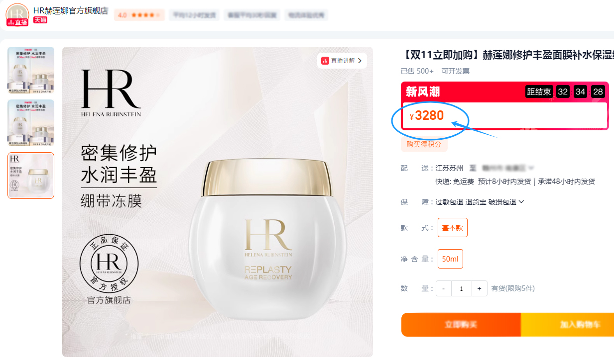 【10.18好物神价】赫莲娜修护丰盈面膜15ml(限26年4月盒子有轻微挤压)