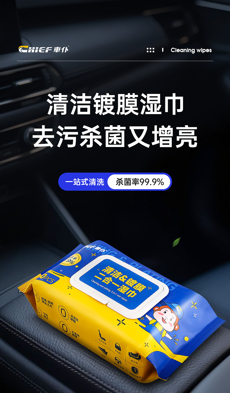 车仆官方旗舰店清洁湿巾杀菌强力去污上光镀膜塑料件翻新打蜡养护