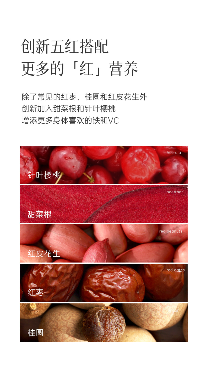 均衡小站 巴西莓五红方糕 甜菜根针叶樱桃红皮花生创新搭配 酸甜健康小零食