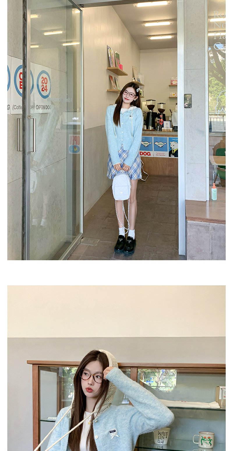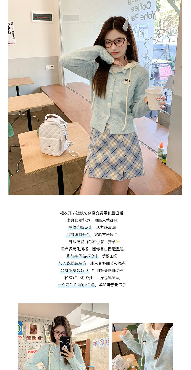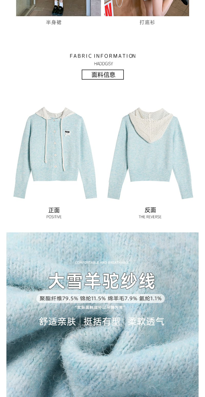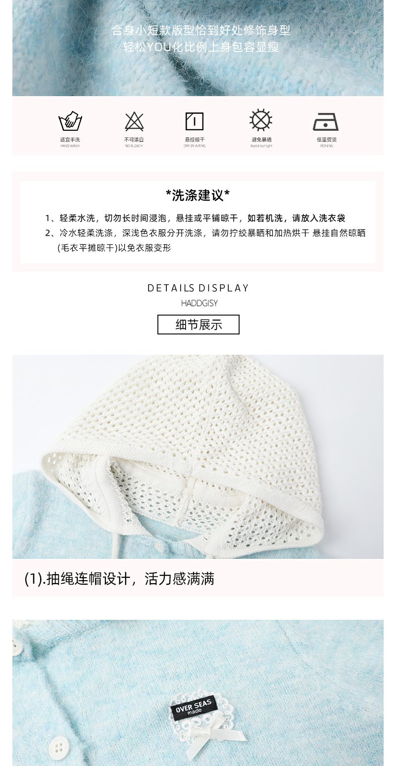 <曾小咸推荐>气质甜美baby蓝连帽短款毛衣开衫