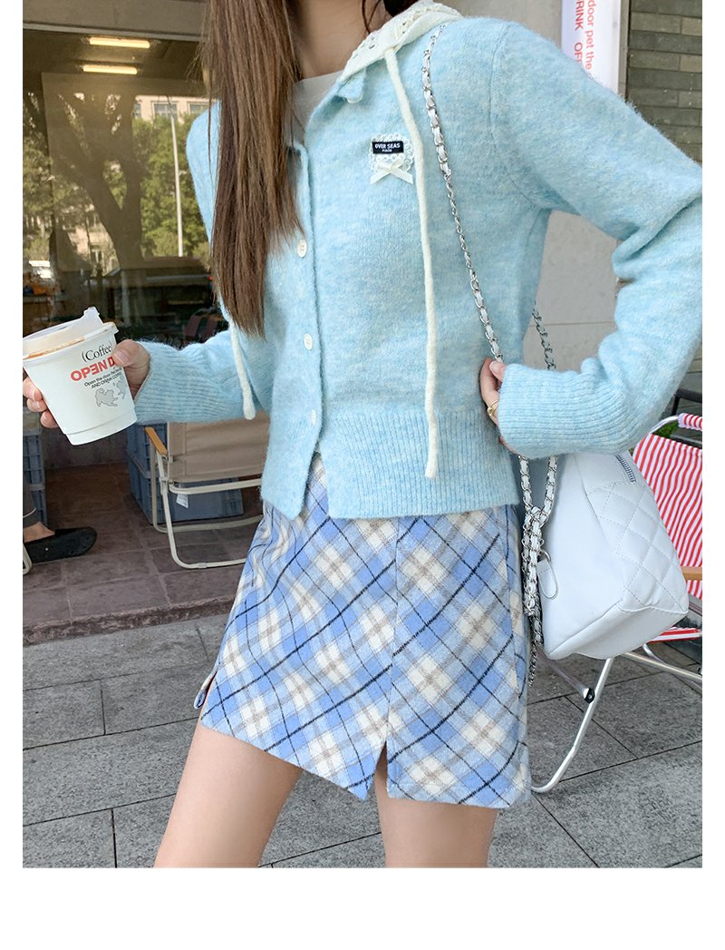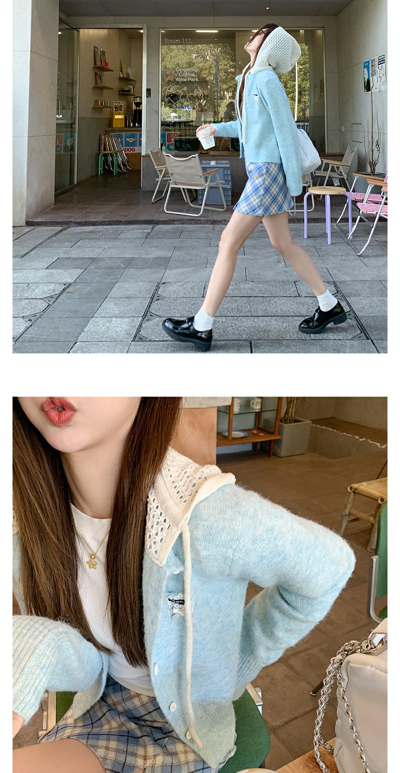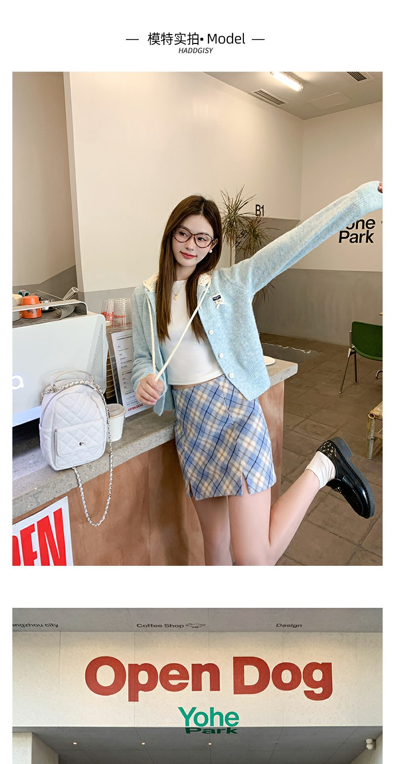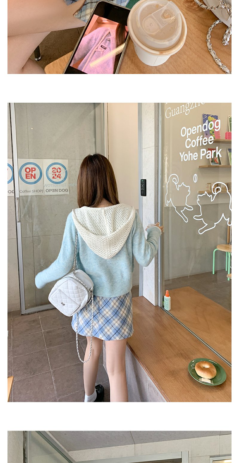 <曾小咸推荐>气质甜美baby蓝连帽短款毛衣开衫
