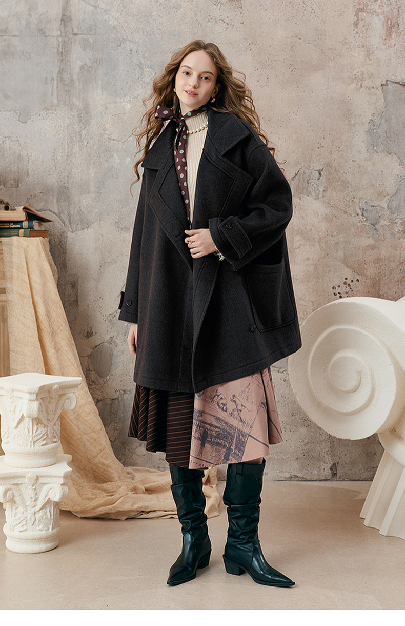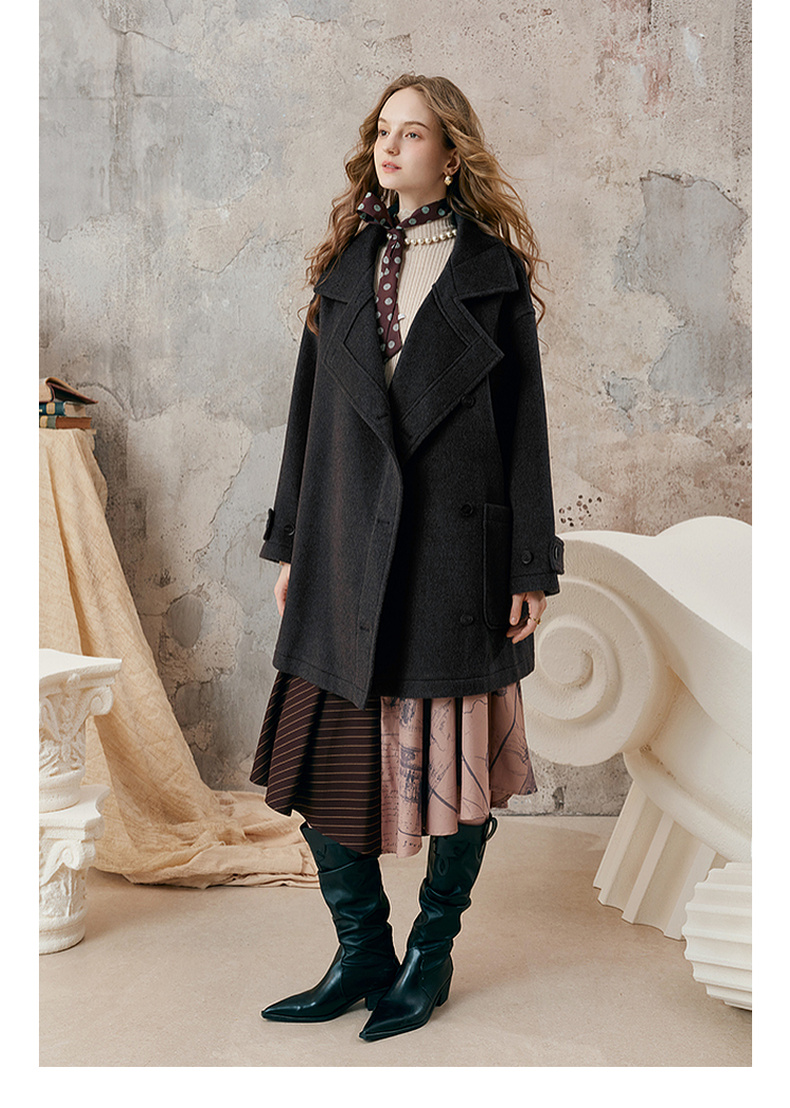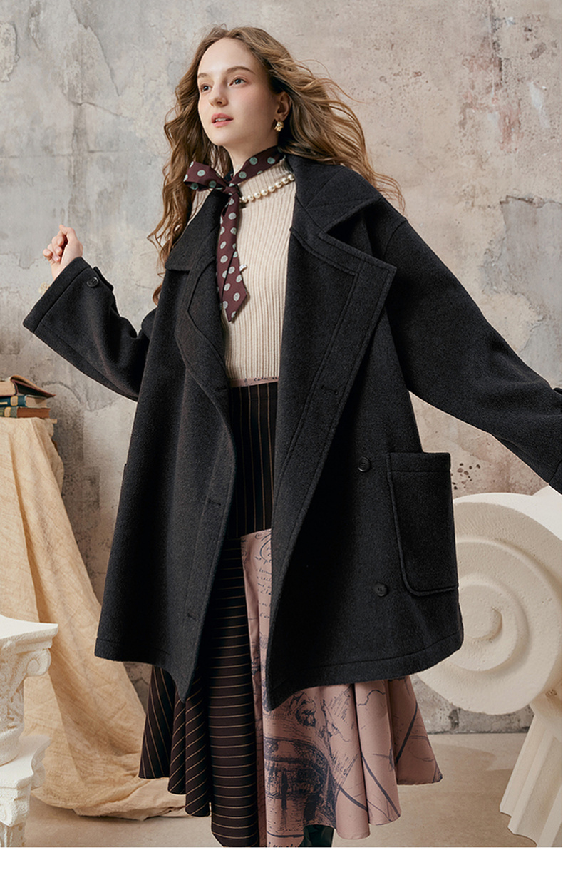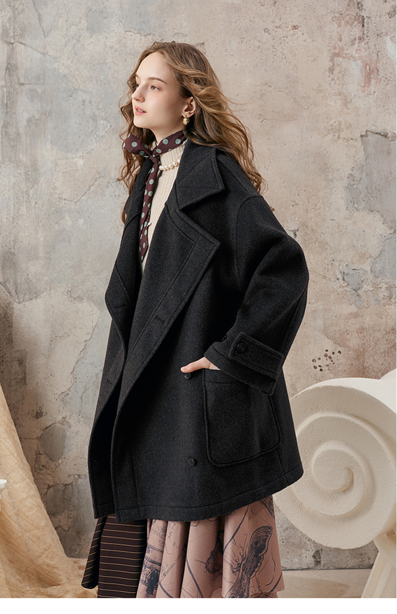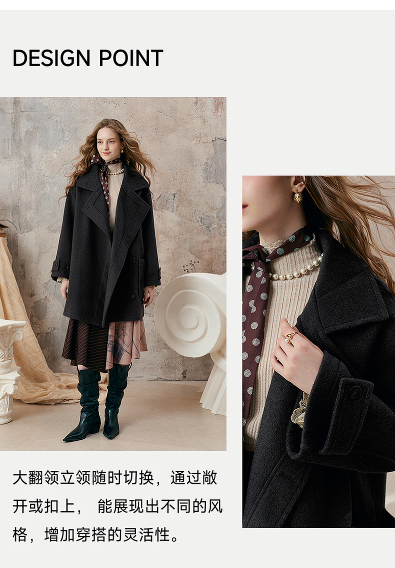 【暖冬内购】两三事 雾中风笛 2025冬季新款简约大翻领双面羊毛呢外套女中长款