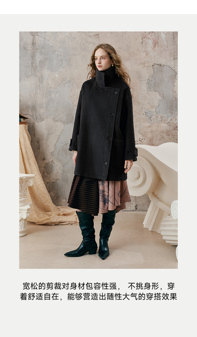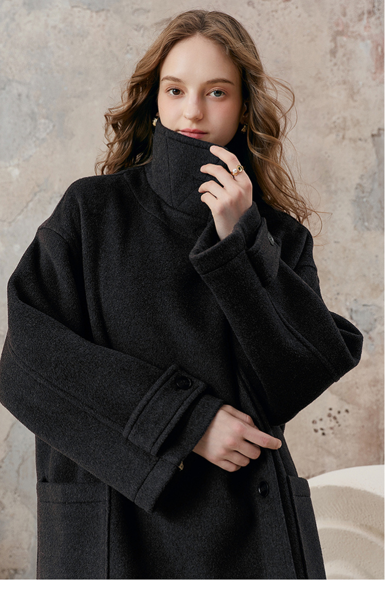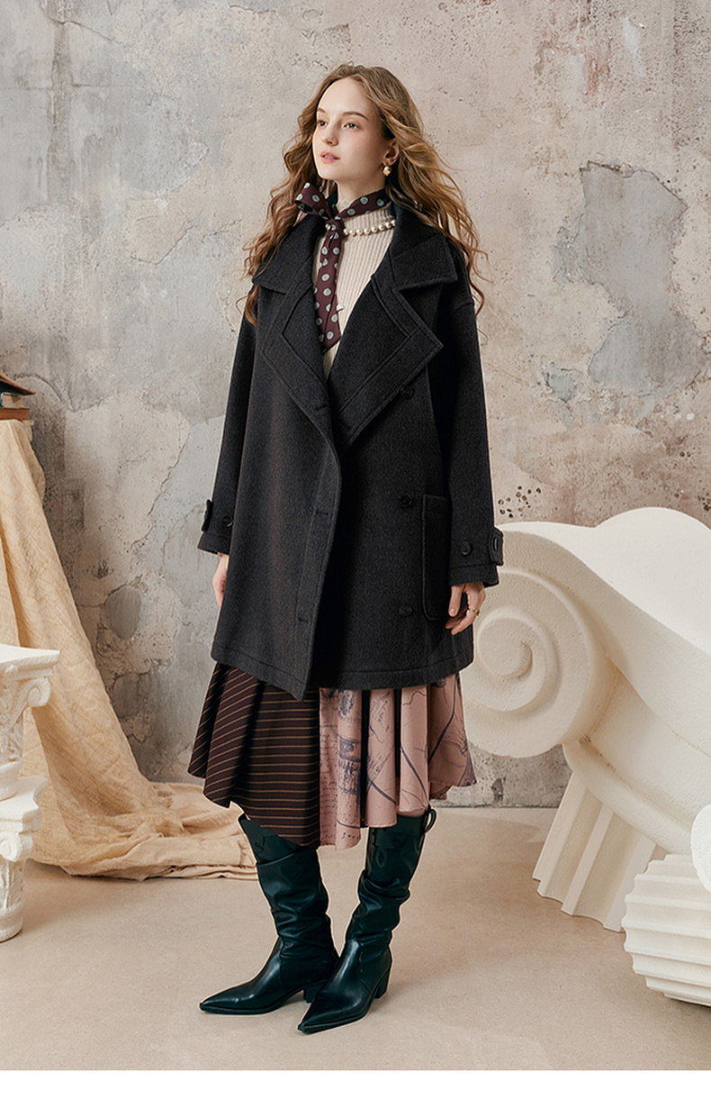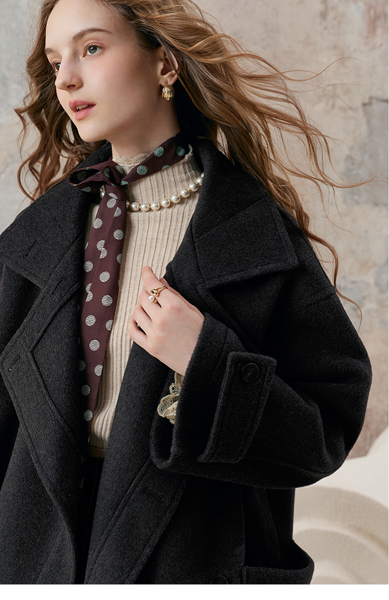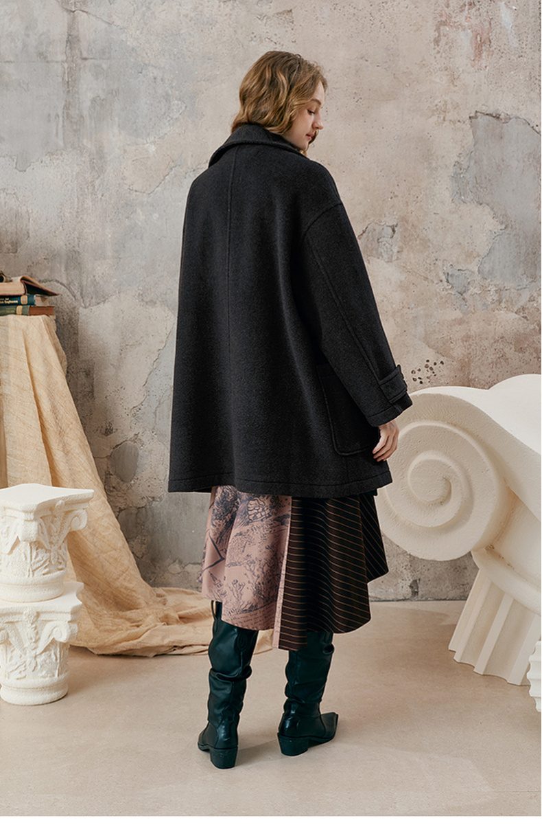 【暖冬内购】两三事 雾中风笛 2025冬季新款简约大翻领双面羊毛呢外套女中长款