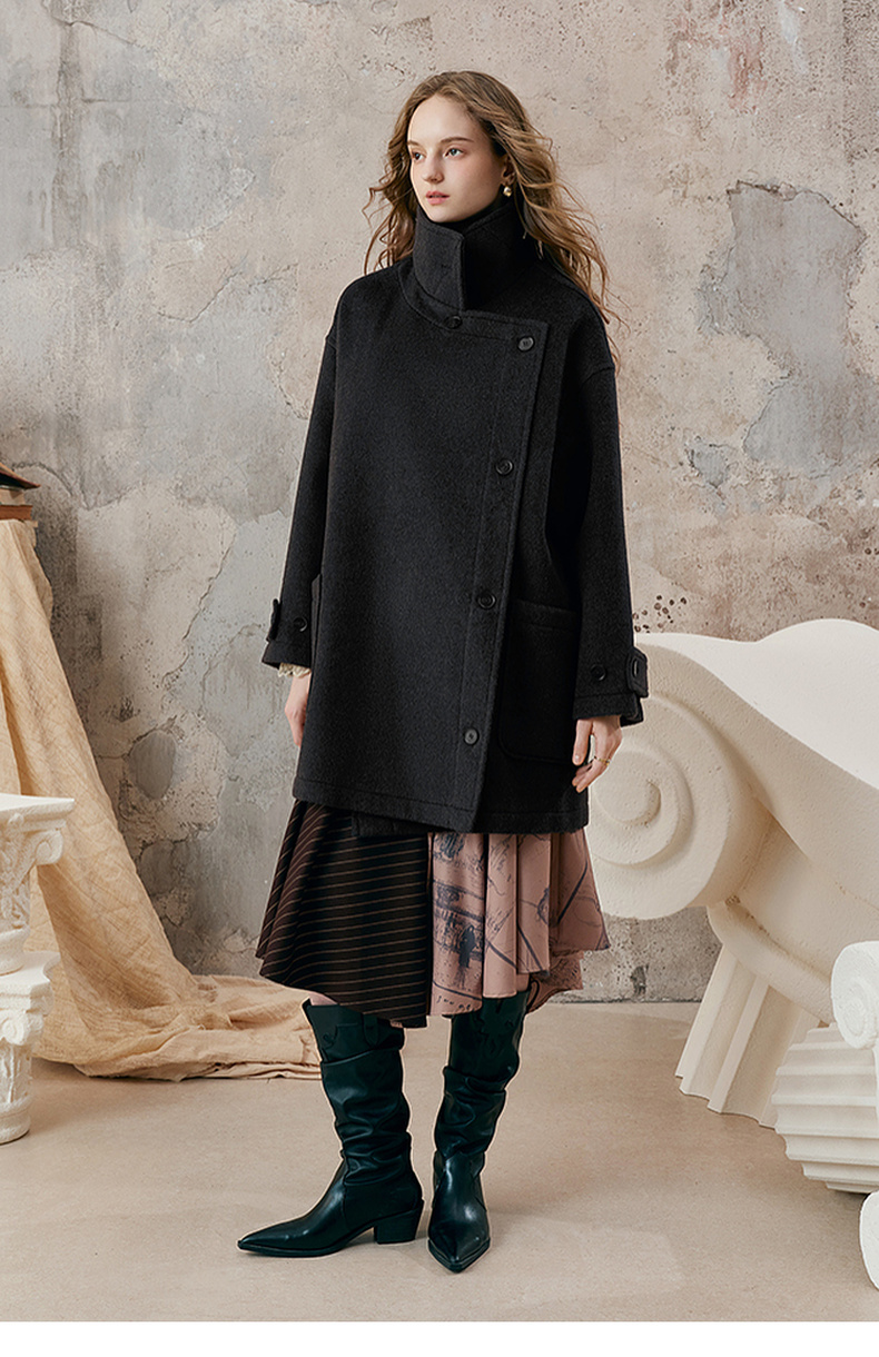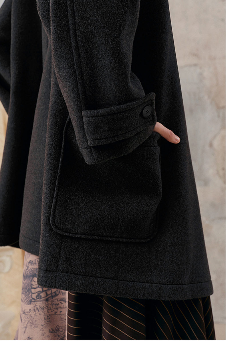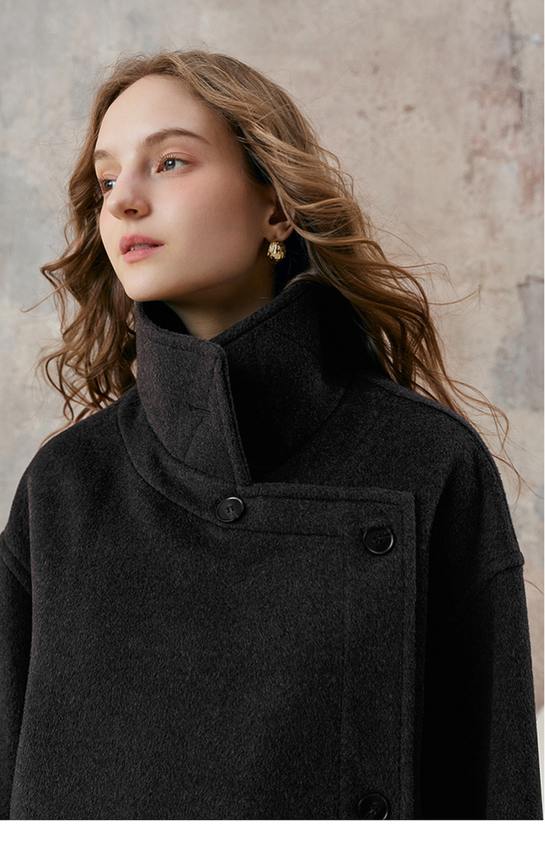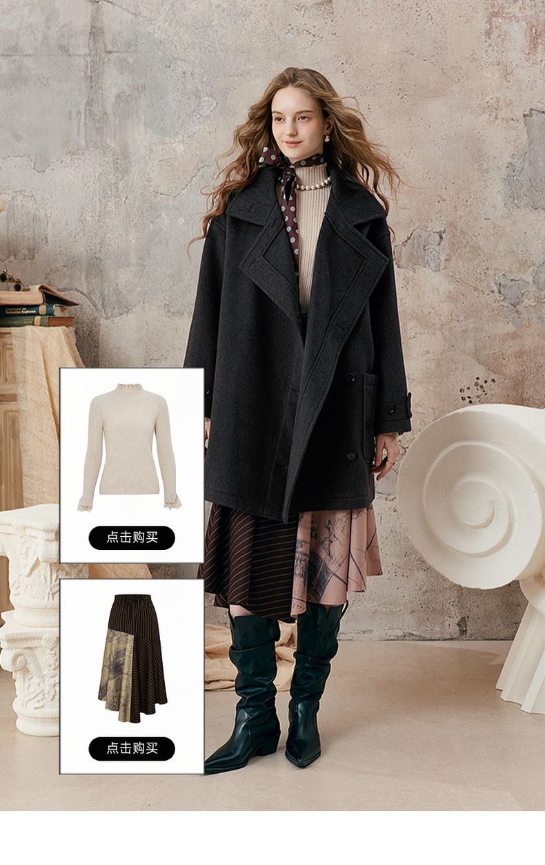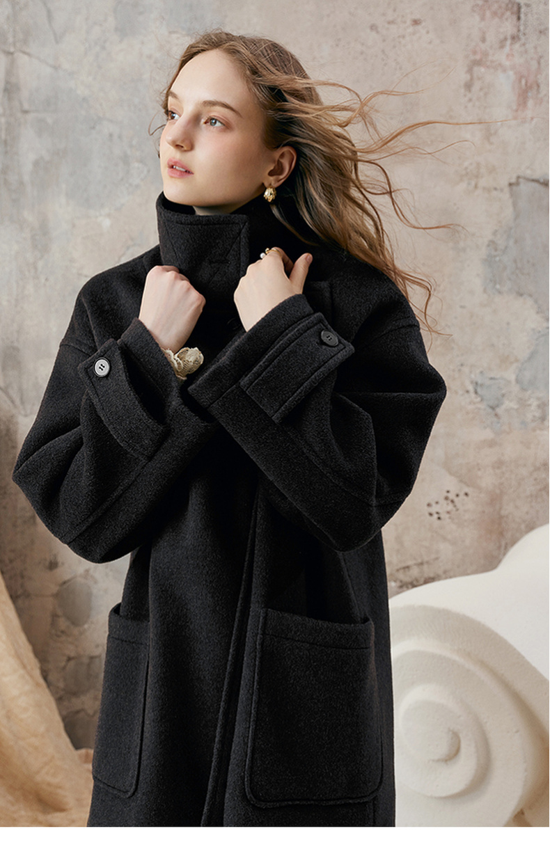 【暖冬内购】两三事 雾中风笛 2025冬季新款简约大翻领双面羊毛呢外套女中长款