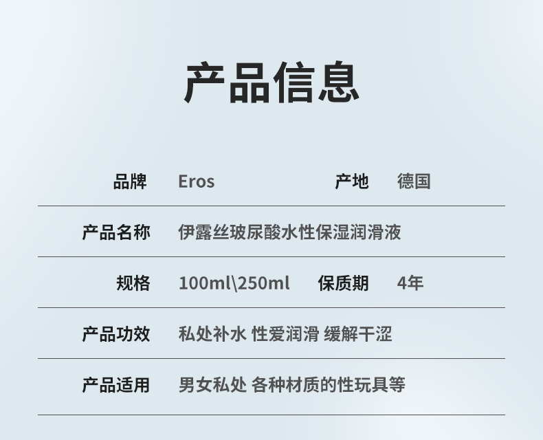 德国原装Eros 玻尿酸水性保湿润滑液100ml