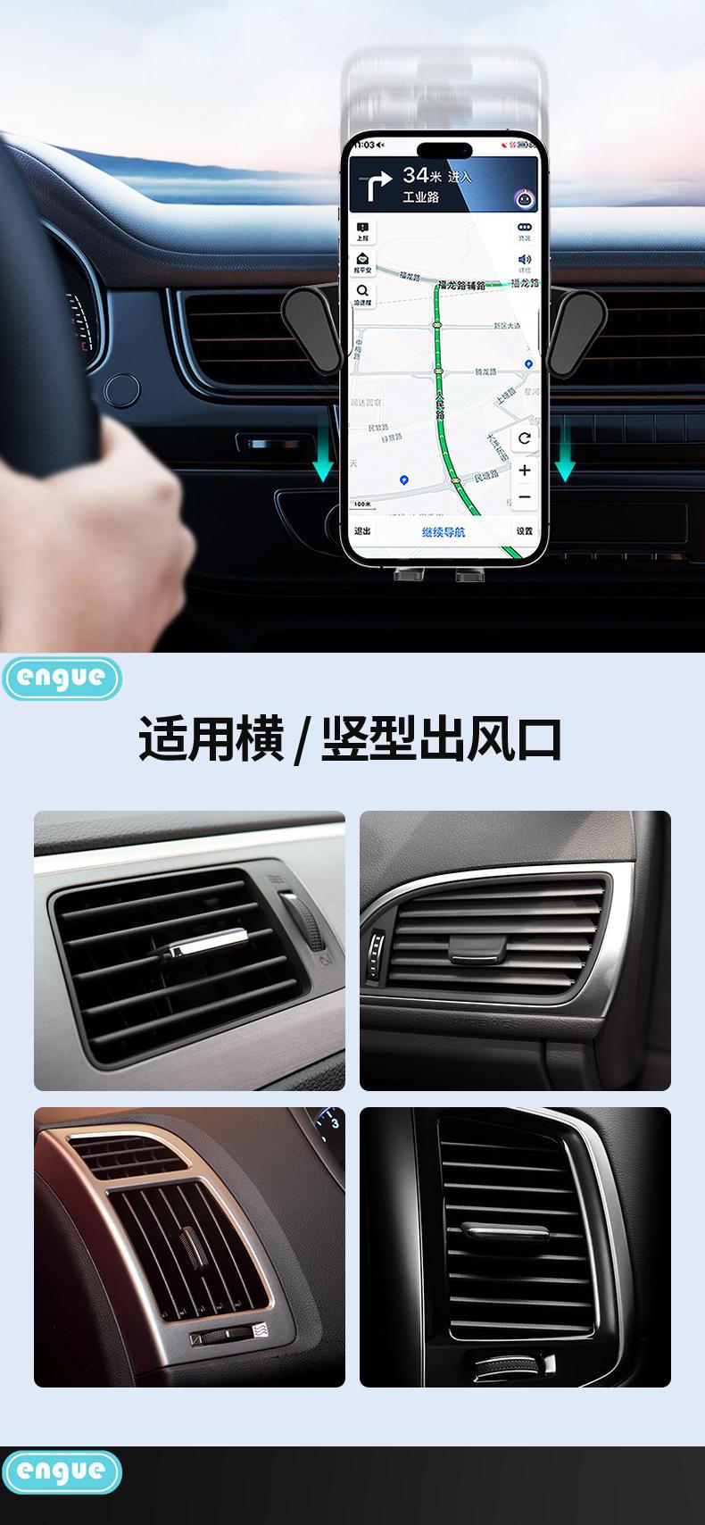 【自营】engue恩谷车载出风口重力手机支架EG-C03单手取放稳固夹紧不挡出风口