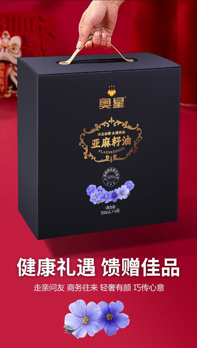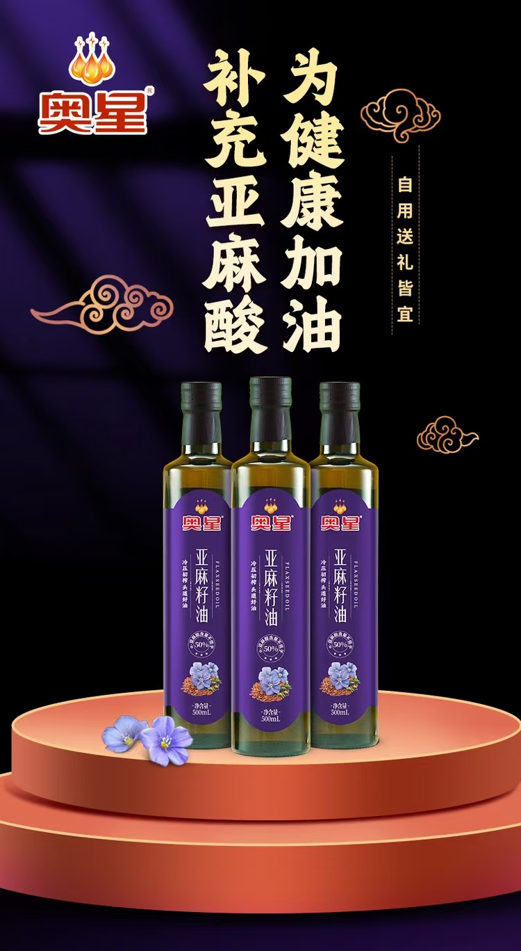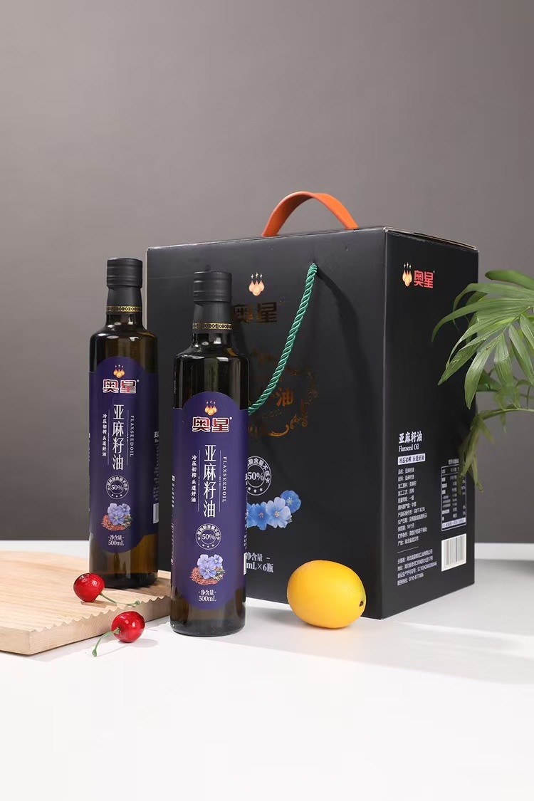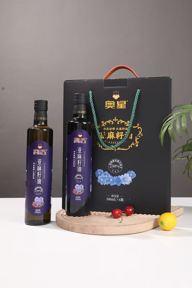 3-7天发货【自营】奥星 一级冷压初榨 亚麻籽油 500ml*6瓶/箱