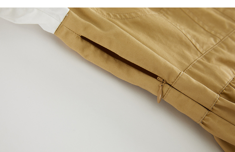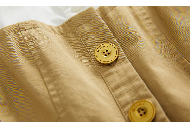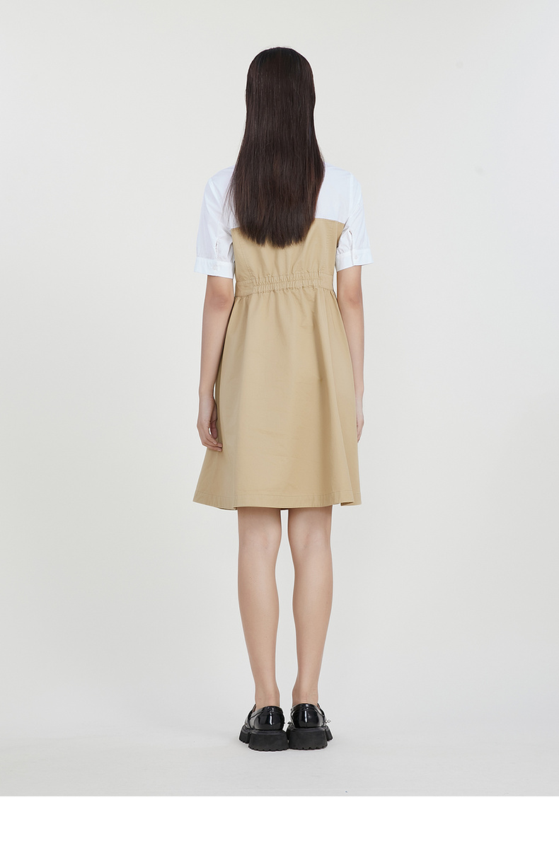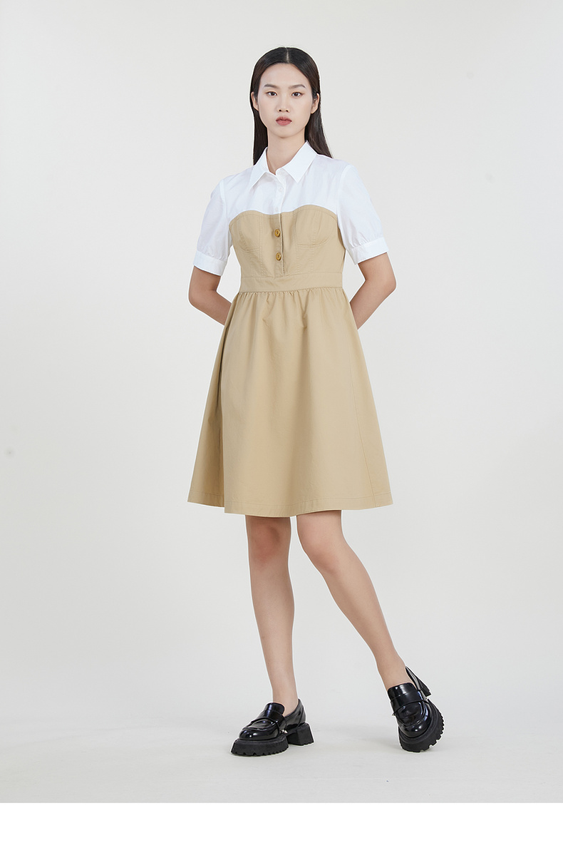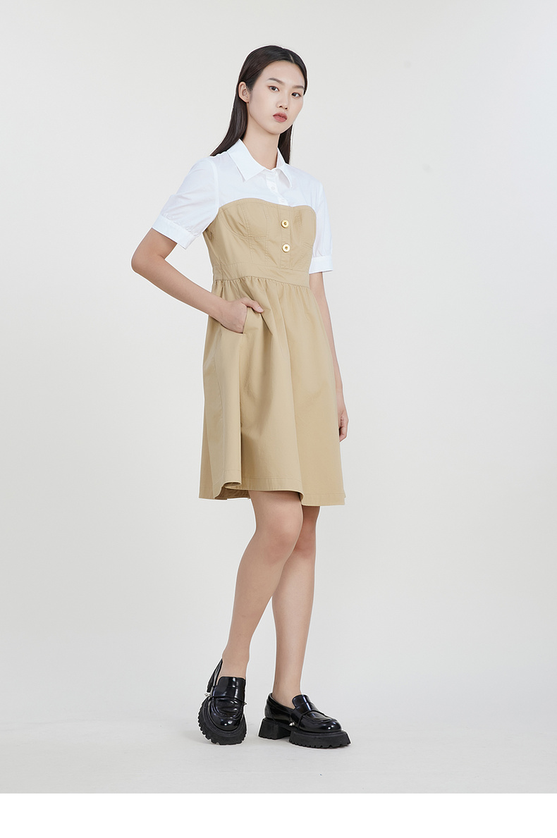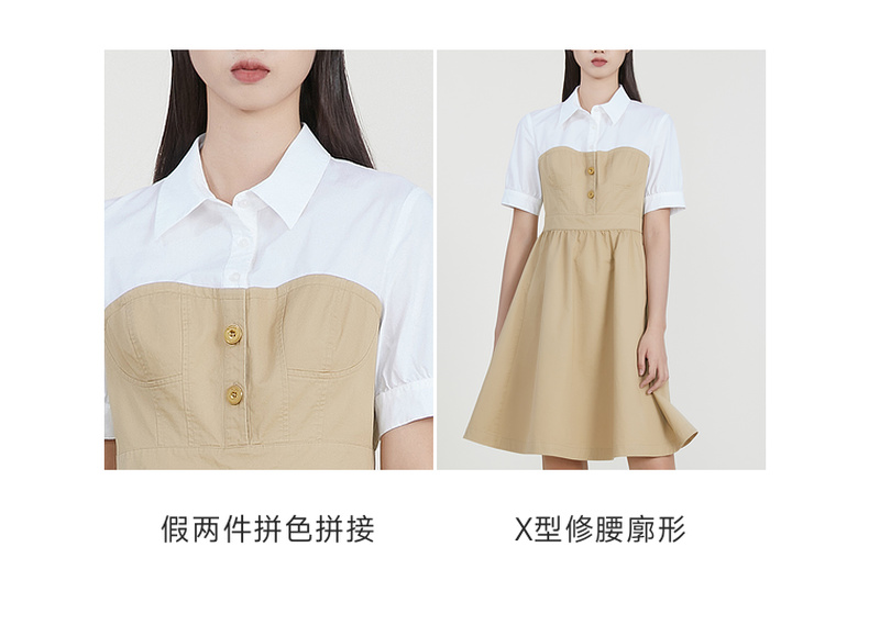 谜底拼接连衣裙2023春季新款翻领时尚纯棉中长裙短袖女231ML0117
