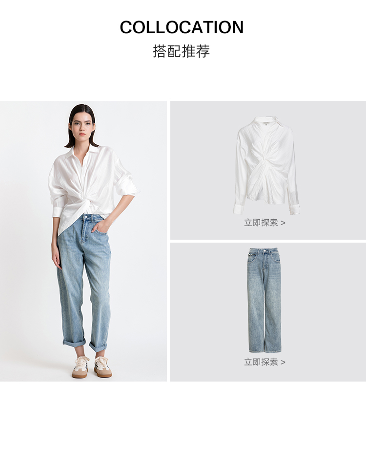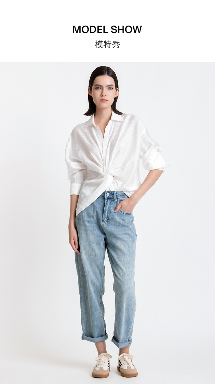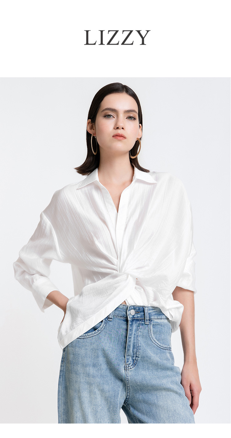 LIZZY春夏休闲时尚天丝V领扭结设计衬衫