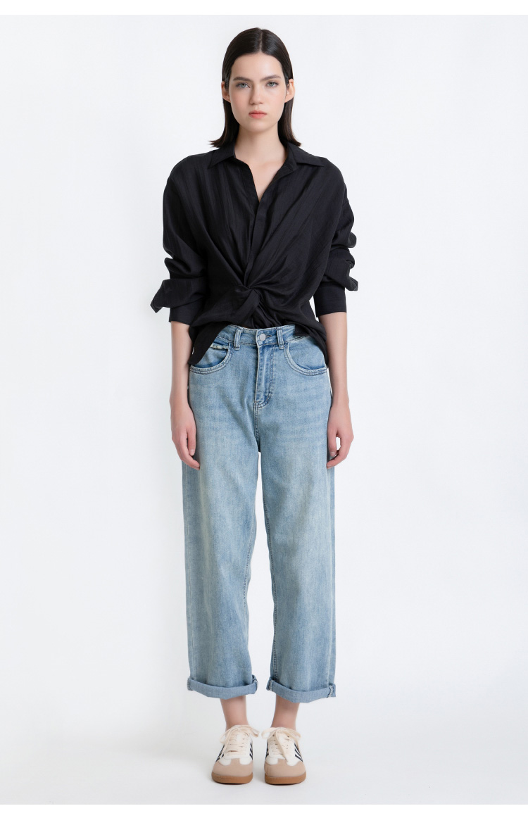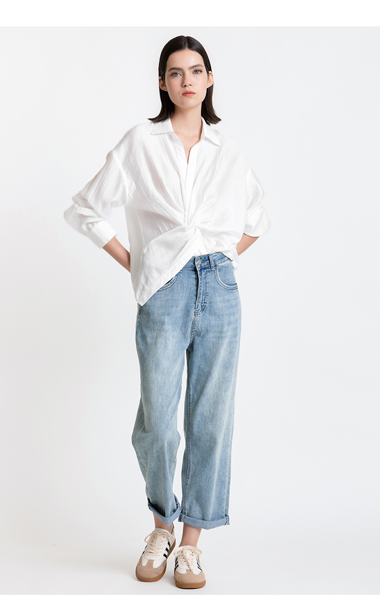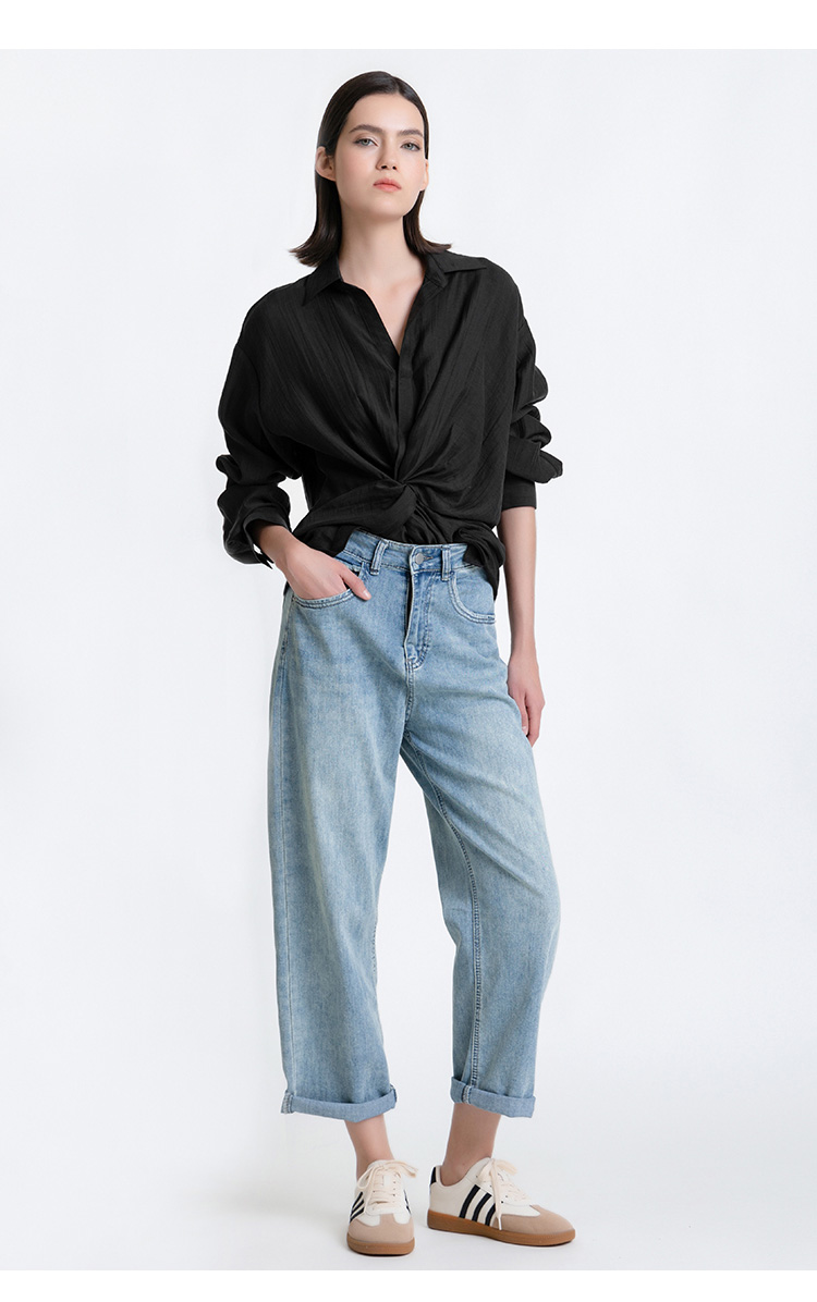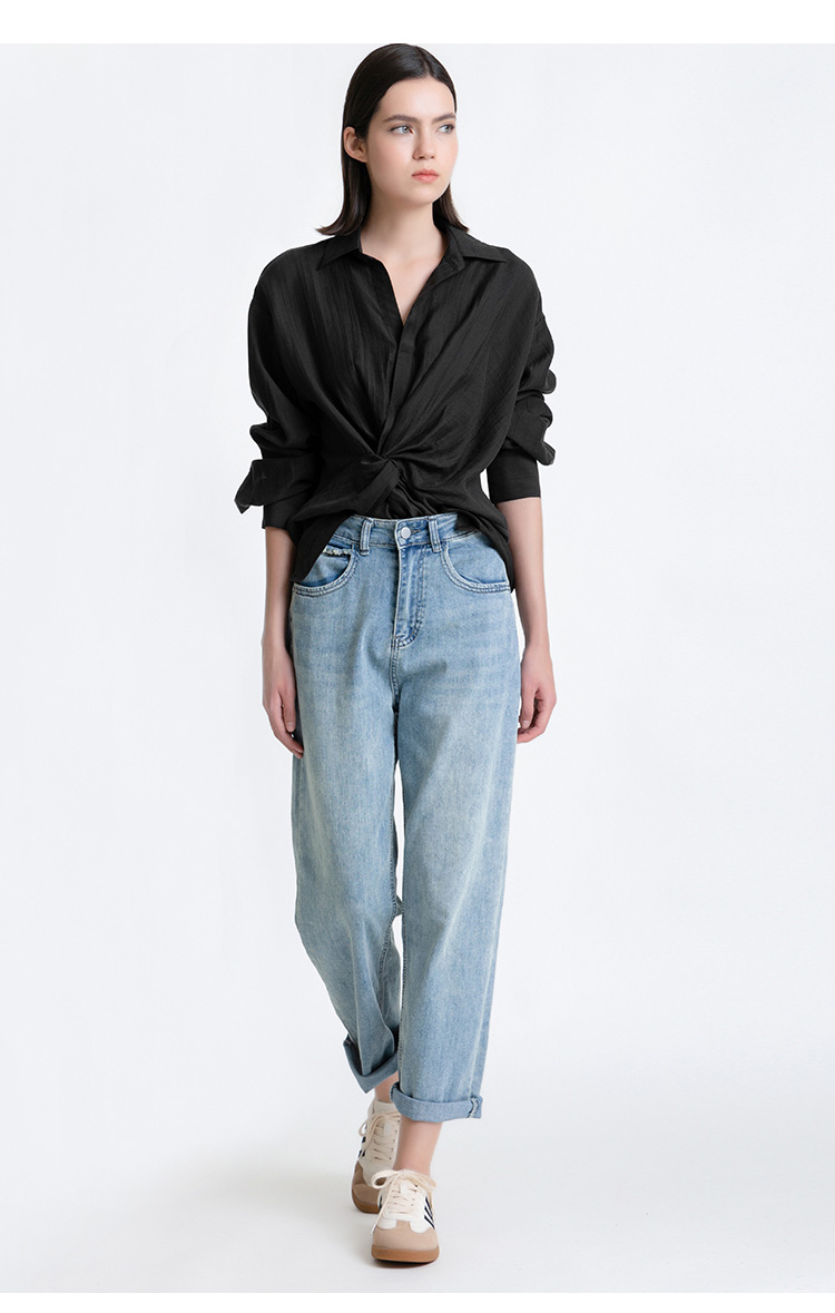 LIZZY春夏休闲时尚天丝V领扭结设计衬衫
