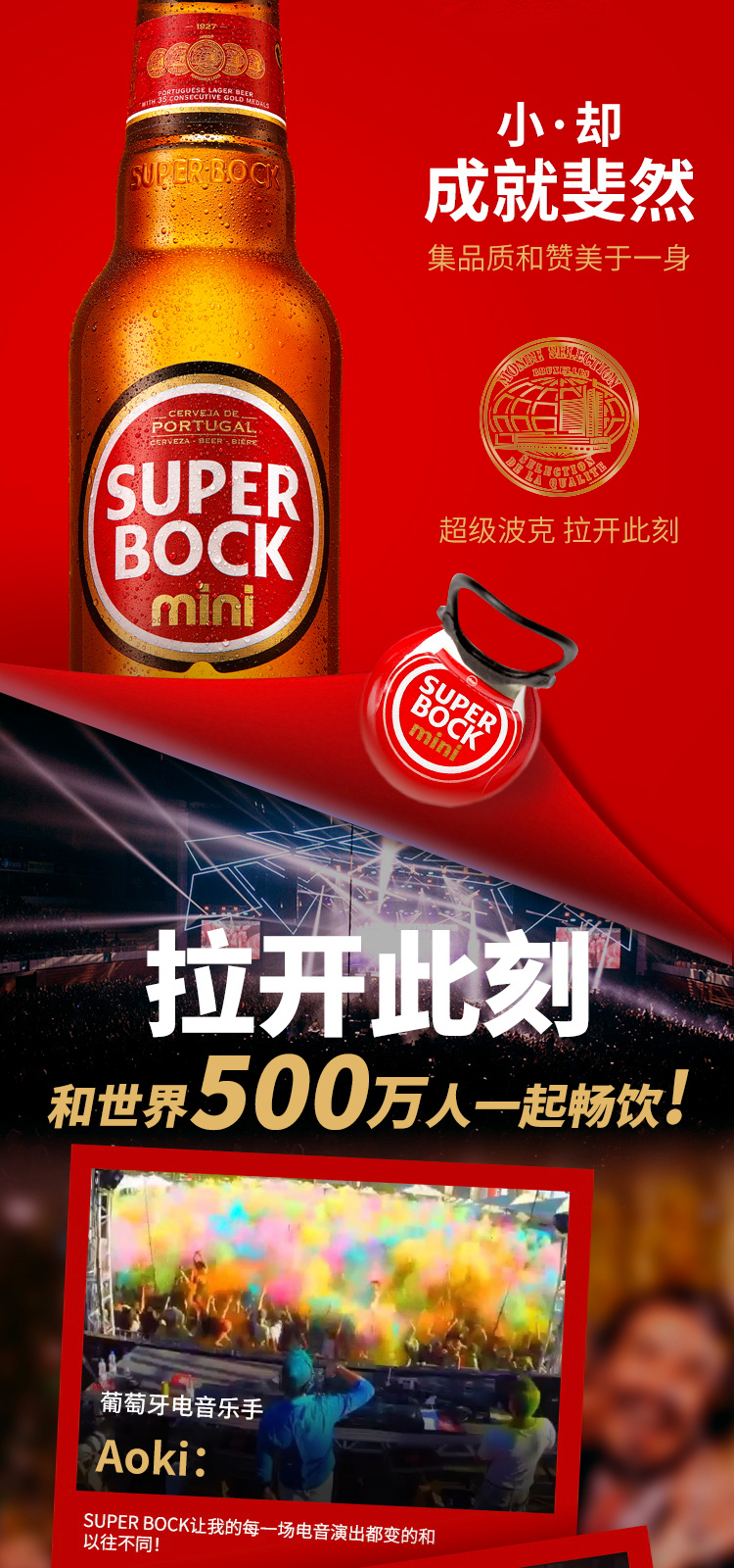 超级波克SuperBock葡萄牙进口啤酒15瓶摇滚版礼盒装200毫升,获得37枚世界品质评鉴大会金牌