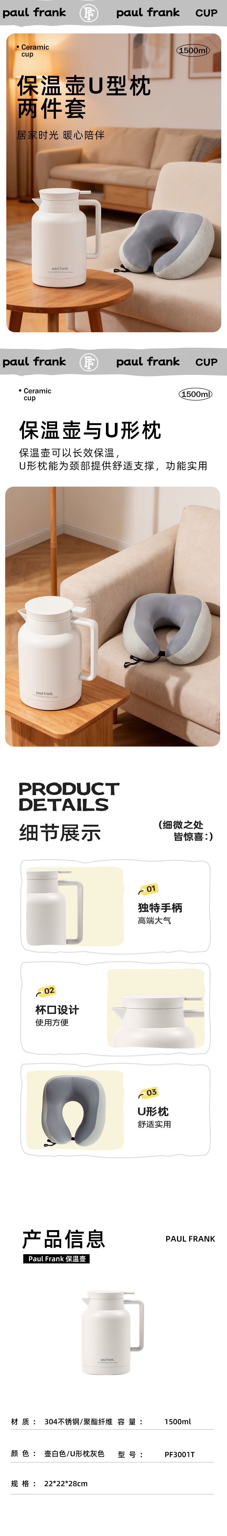 大嘴猴(Paul Frank)保温壶U型枕两件套PF3001T