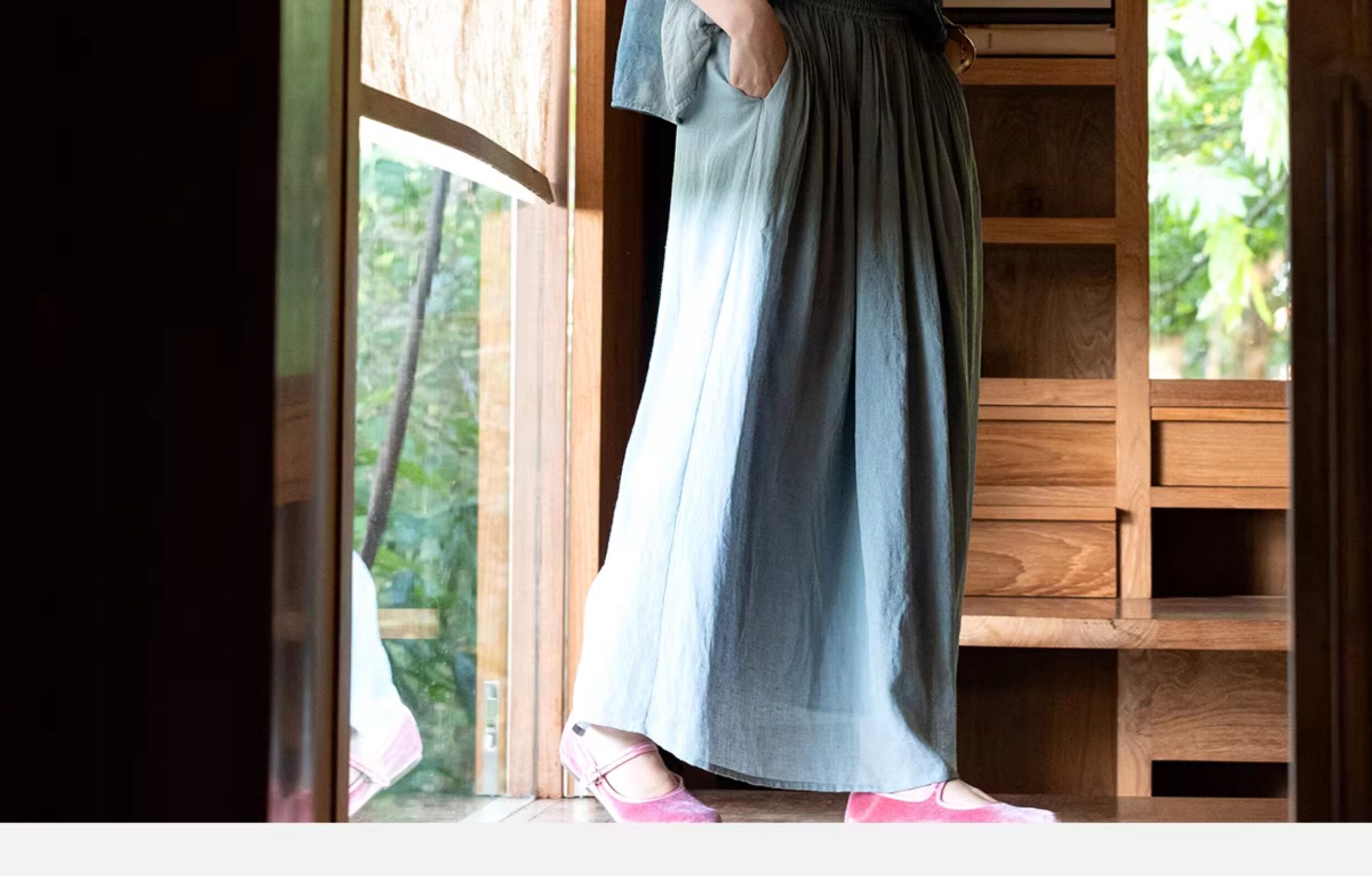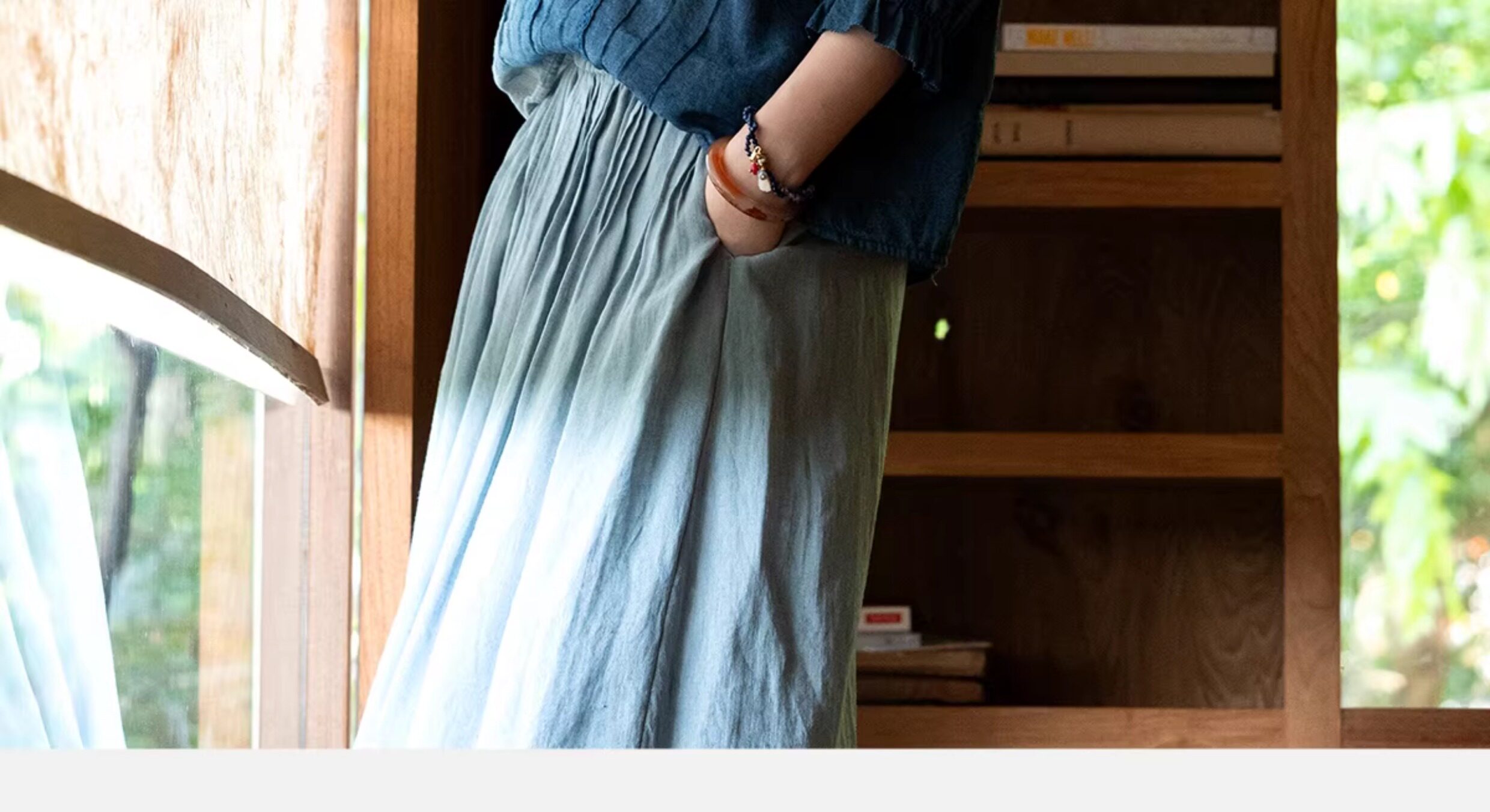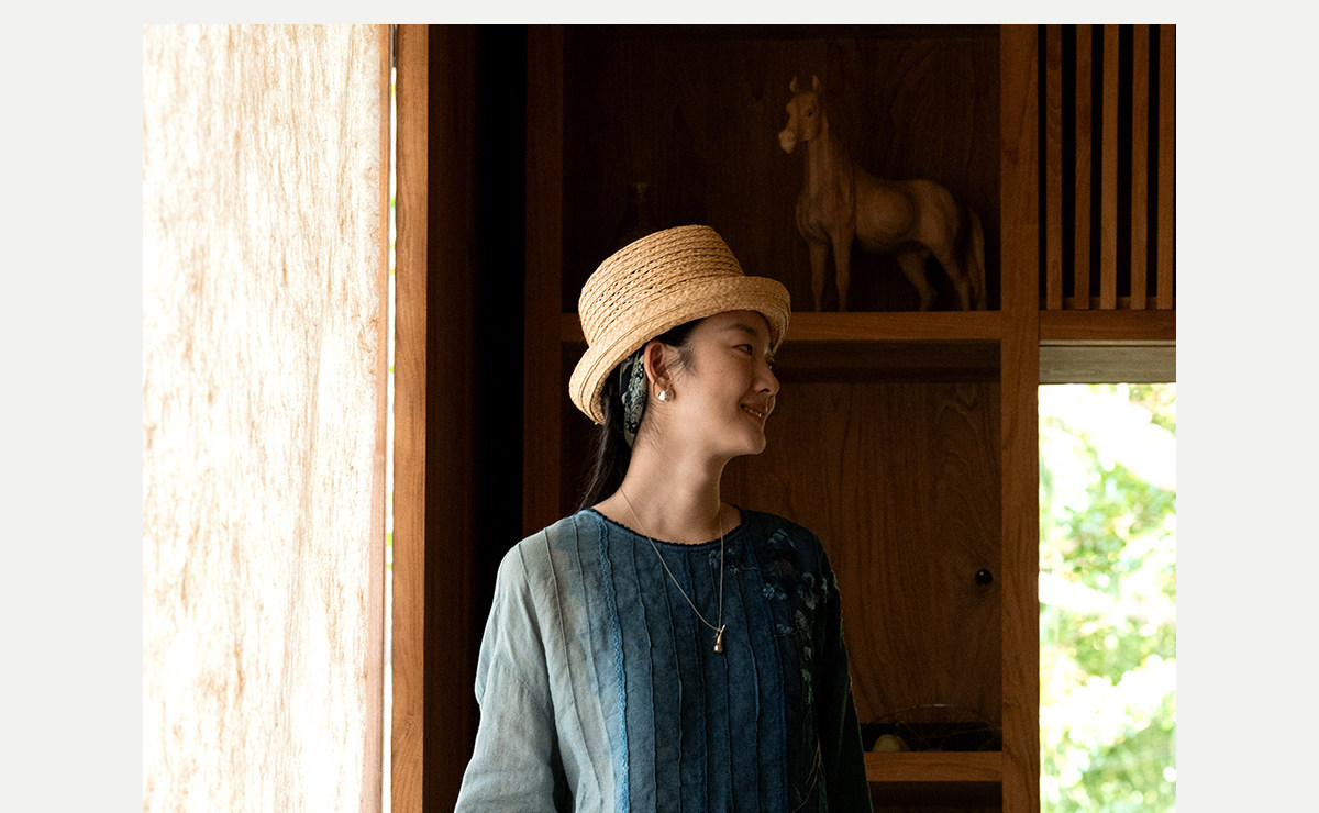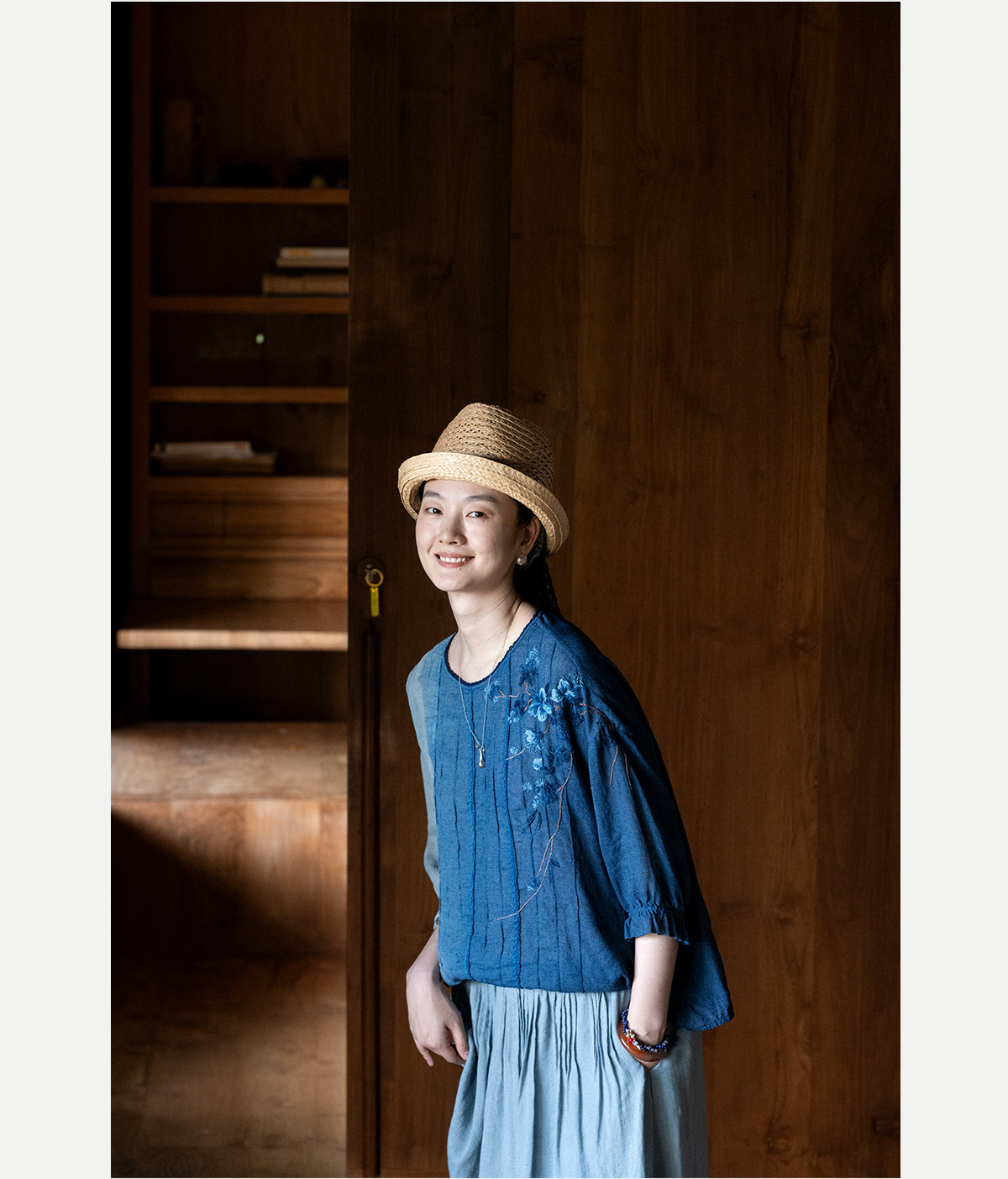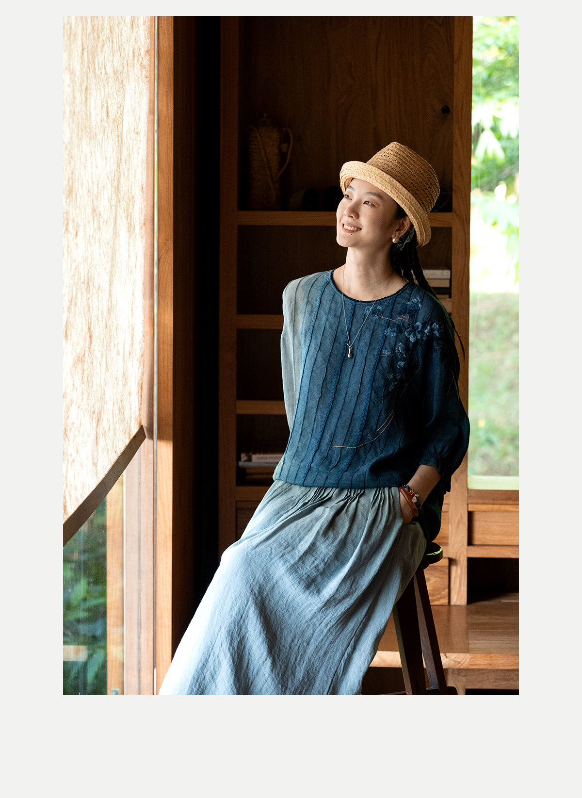 艺术家联名款 牧衣游原创吊蓝染亚麻混纺刺绣小衫文艺上衣 桃逸
