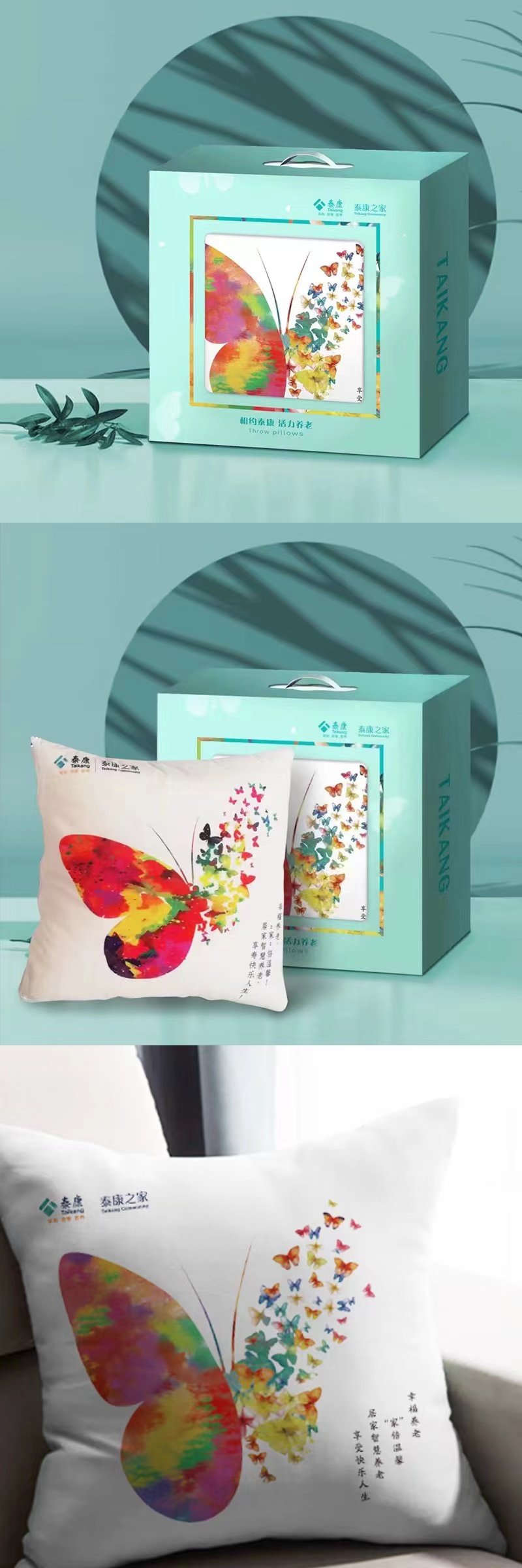 泰康定制蝴蝶礼盒抱枕(双面印,可拆卸)