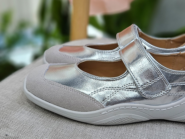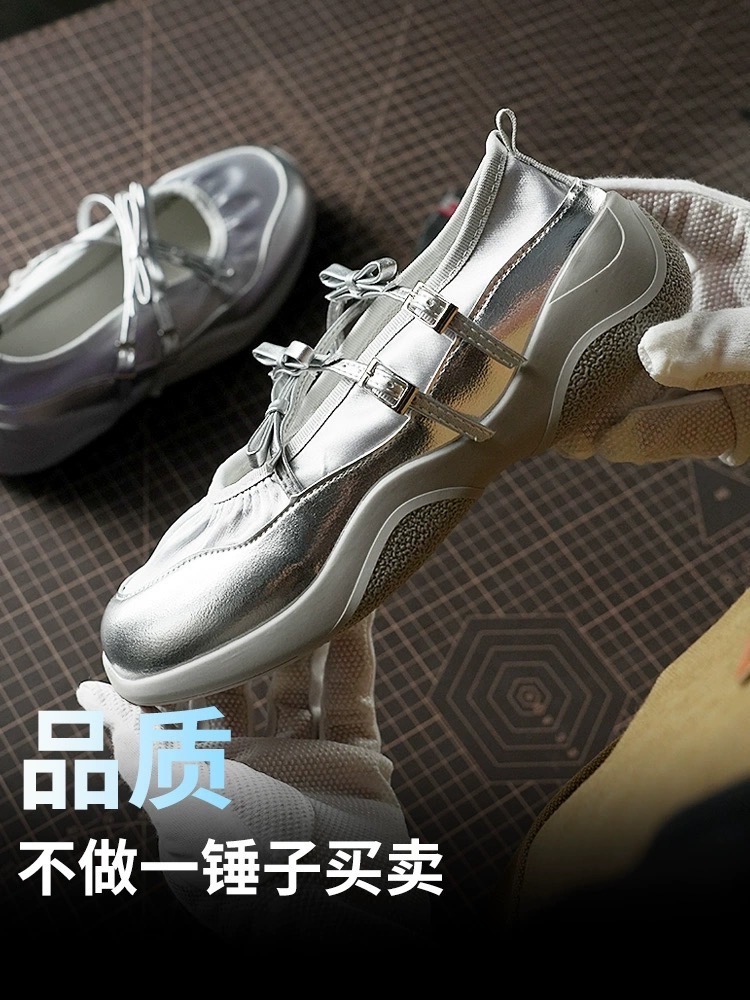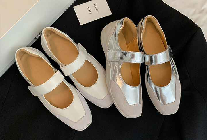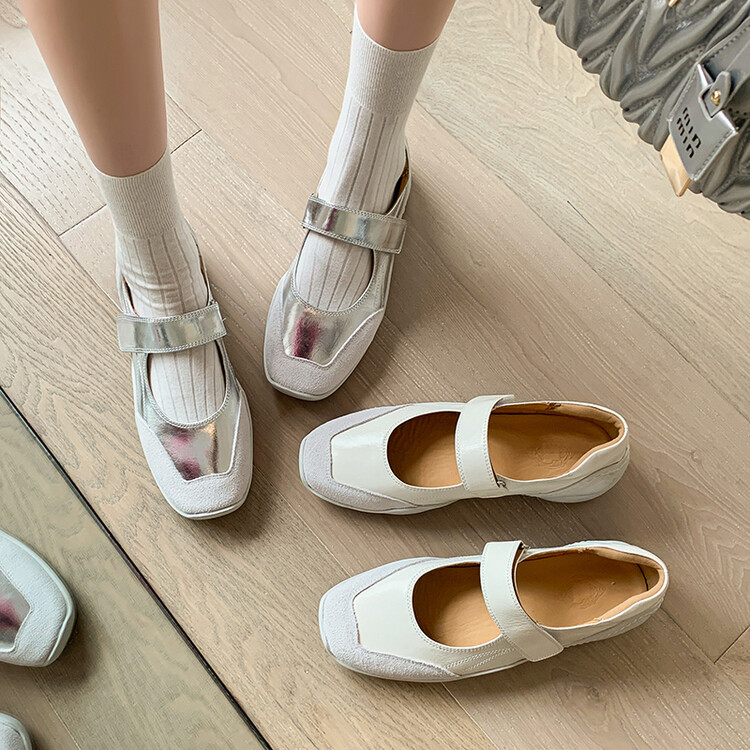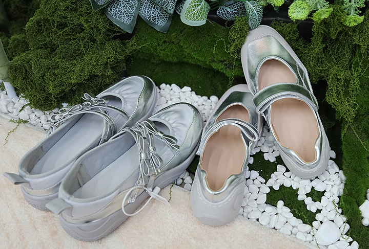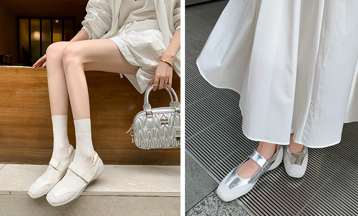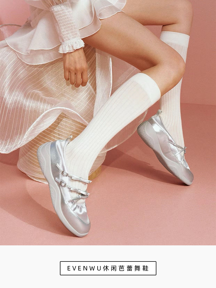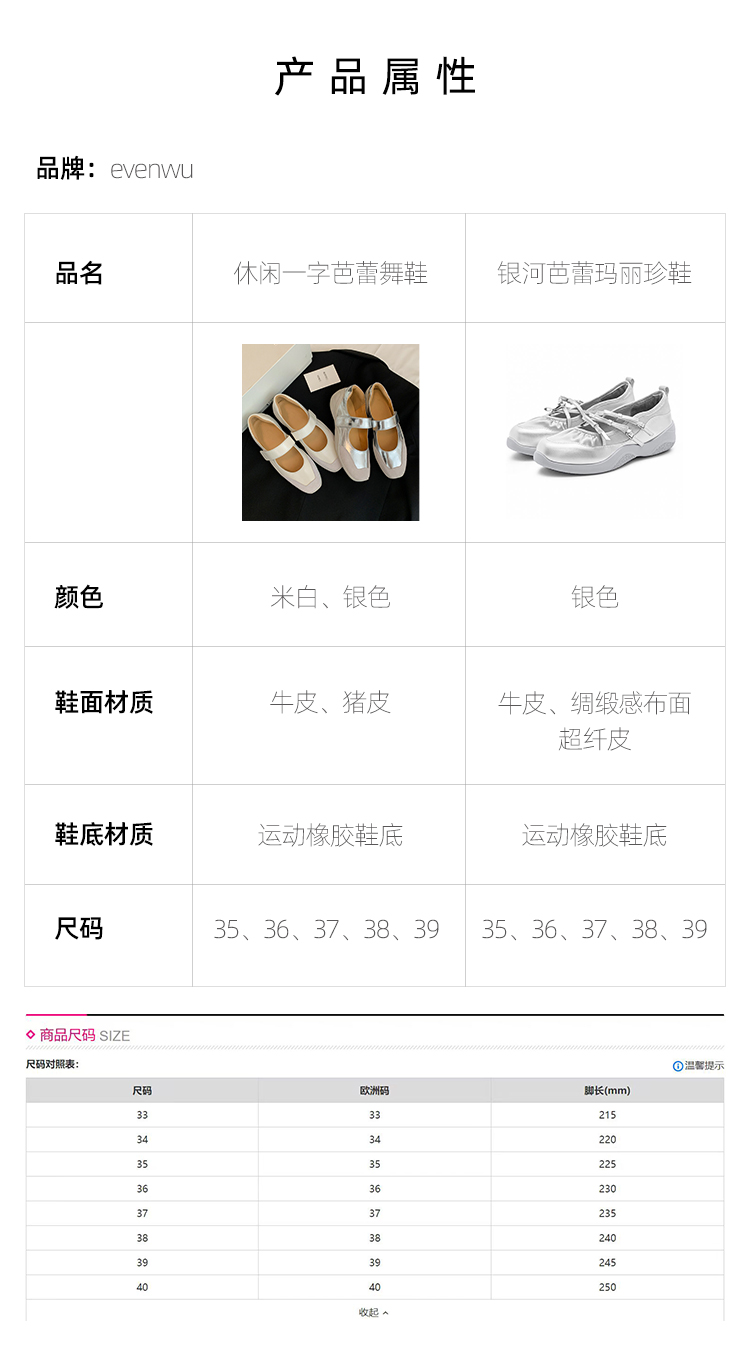 除此之外,还带来同系列不同款的—— evenwu休闲一字芭蕾舞鞋 ,有米白和银色两款。