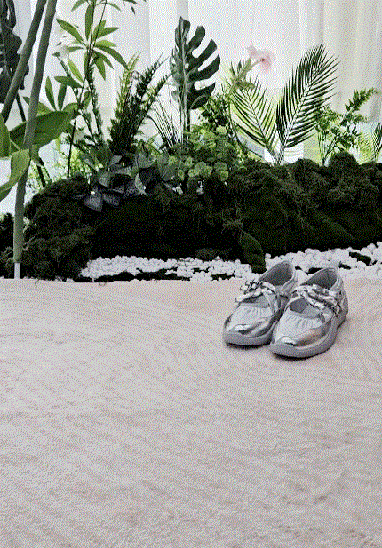 有别于市面上平底的芭蕾舞鞋,这双个性化将运动厚底鞋融入其中,鞋底线条更是以鸢尾花为灵感的曲线设计,穿上轻盈有动感。