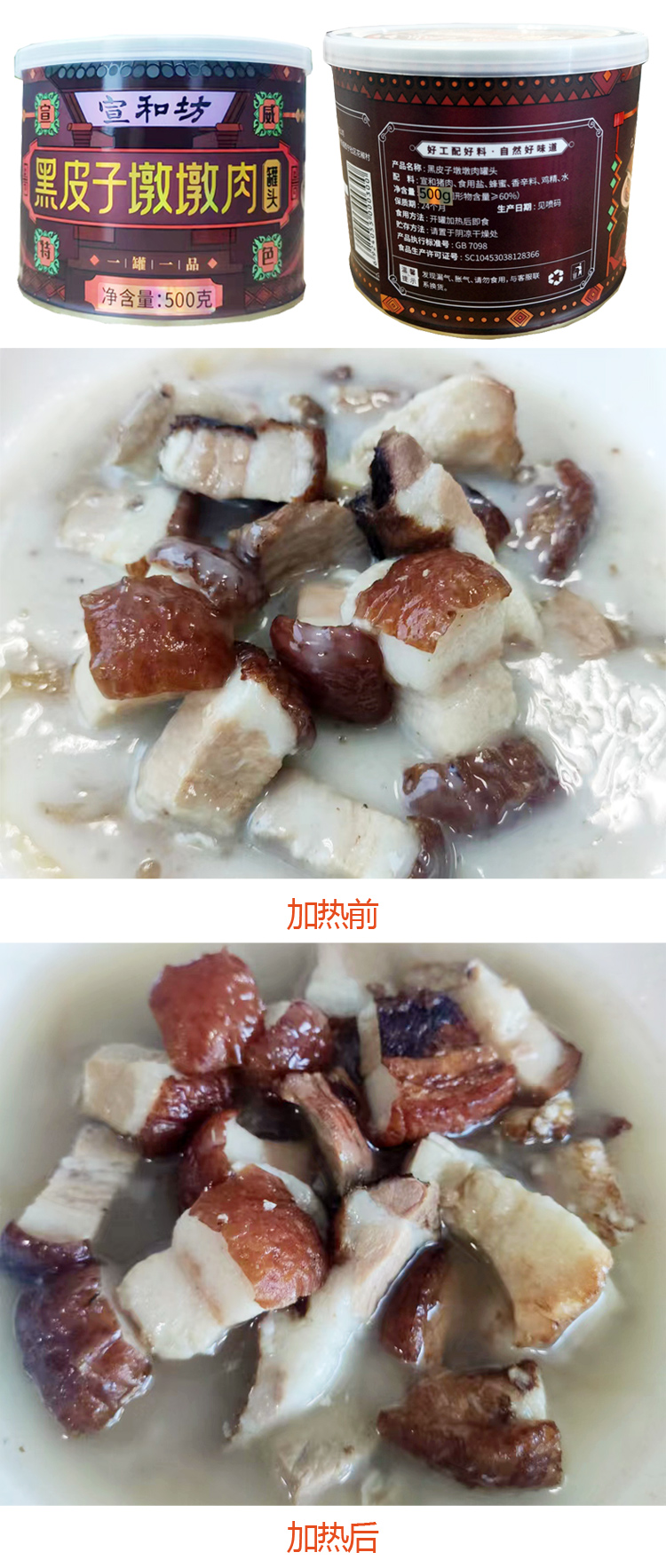 宣和坊牌黑皮子墩墩肉罐头500g/听