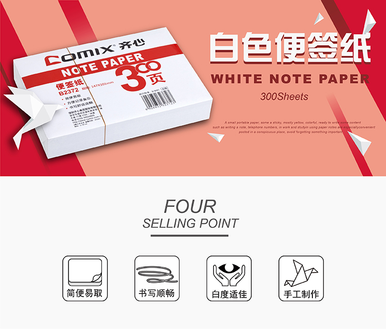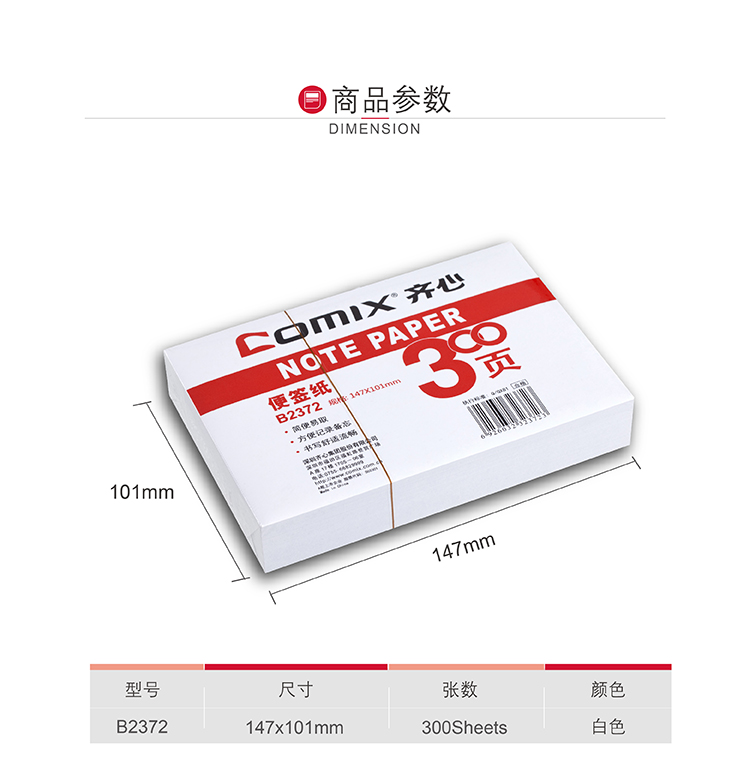齐心 B2372 便签纸 147*101mm白色纸条没有粘性随手记便笺电话记事