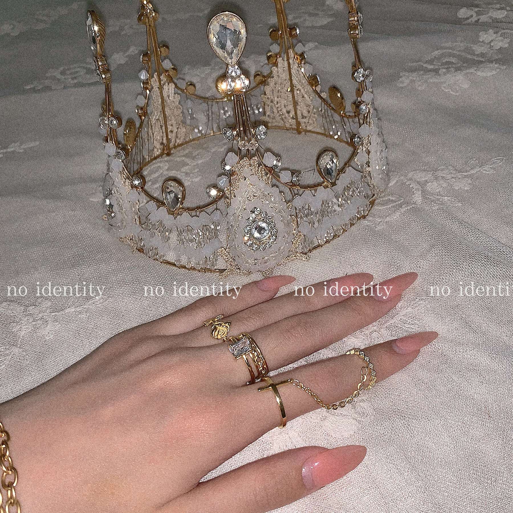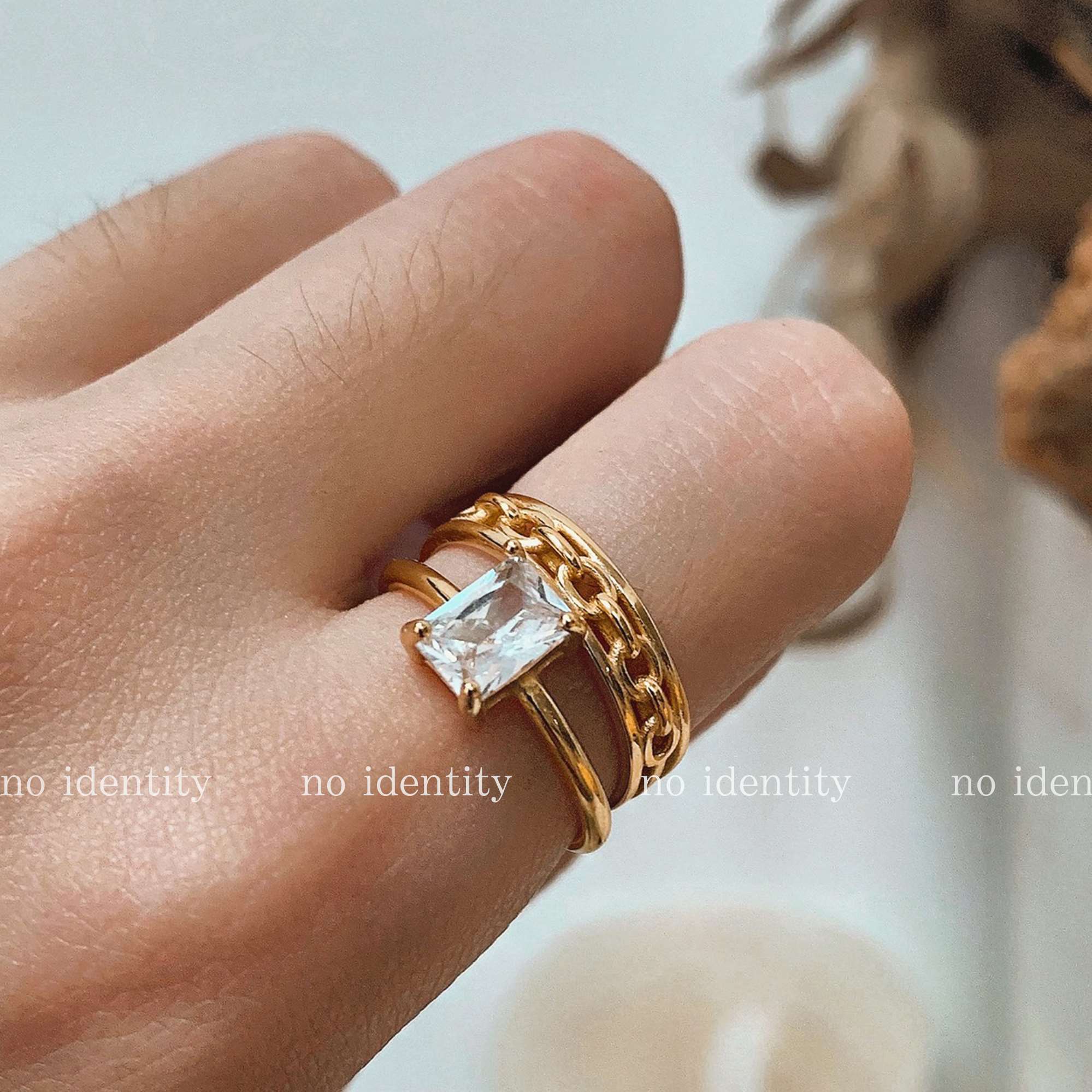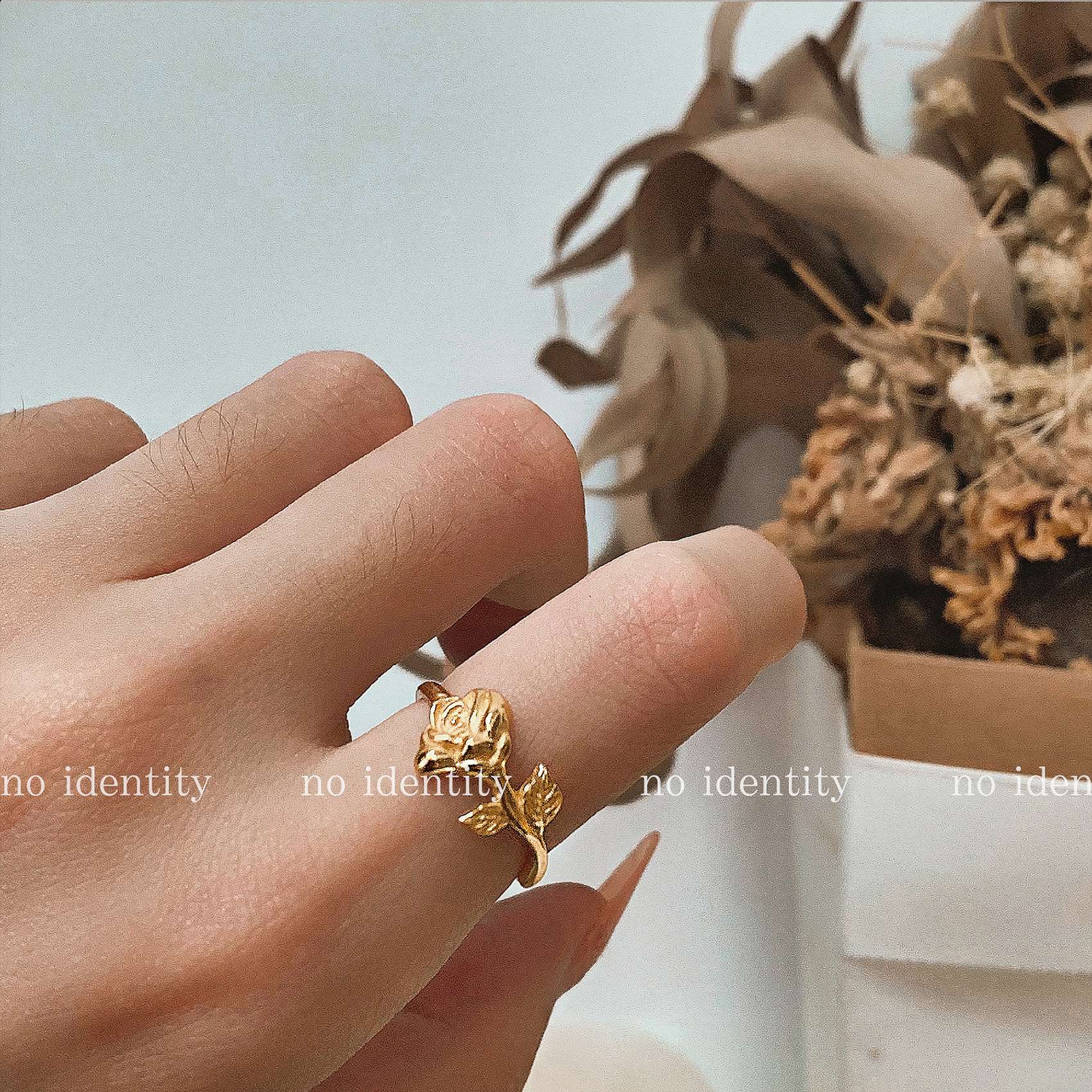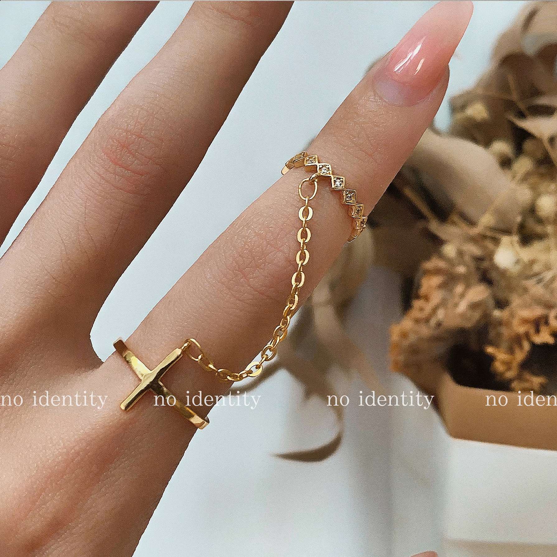 no identity 独立设计925银十字架玫瑰欧美度假风链条关节戒指