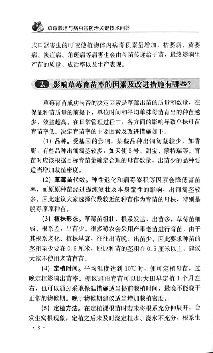 草莓栽培与病虫害防治关键技术问答【育苗、栽培、病虫害、采收】