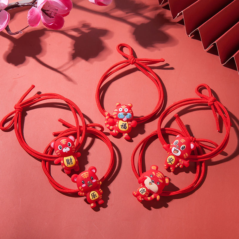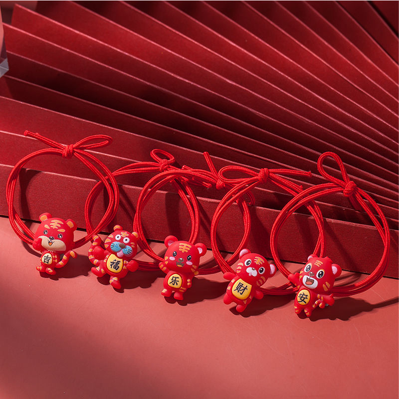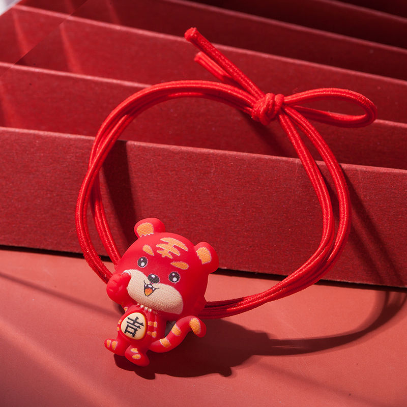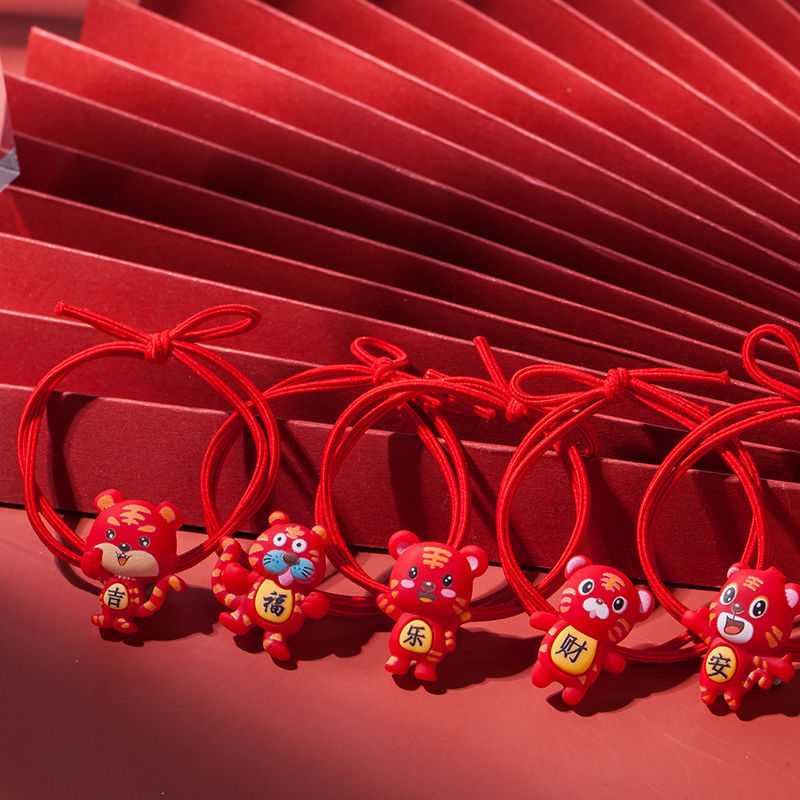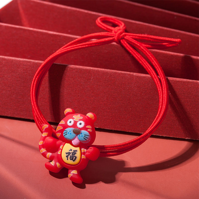 「一套5件 新年小老虎发绳」本命年发圈虎红绳手链小老虎头饰简约发饰时尚饰品