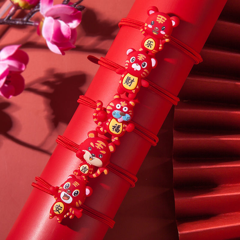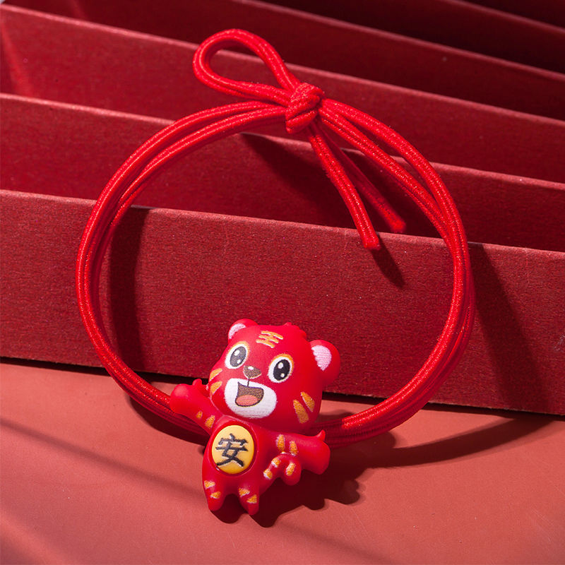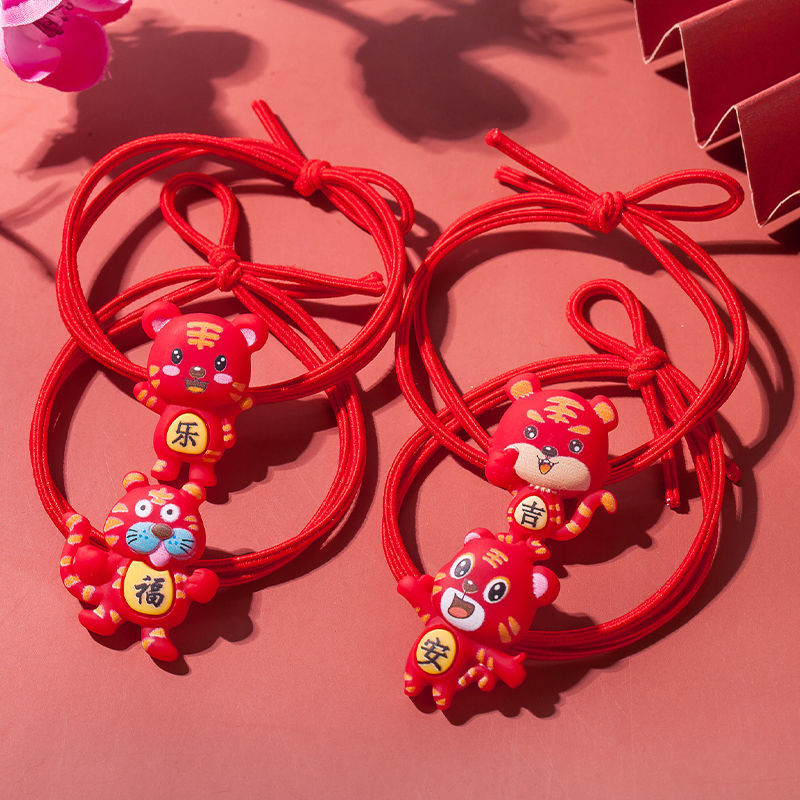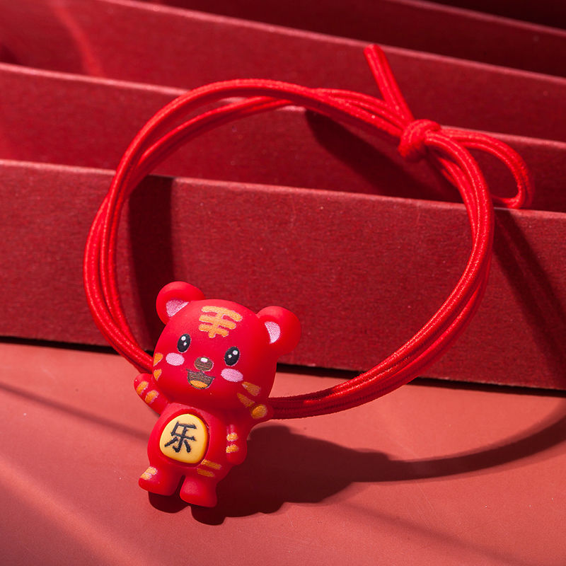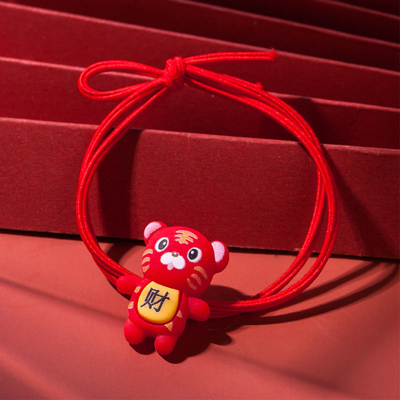 「一套5件 新年小老虎发绳」本命年发圈虎红绳手链小老虎头饰简约发饰时尚饰品