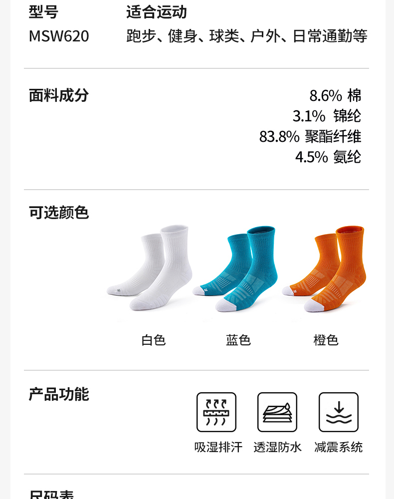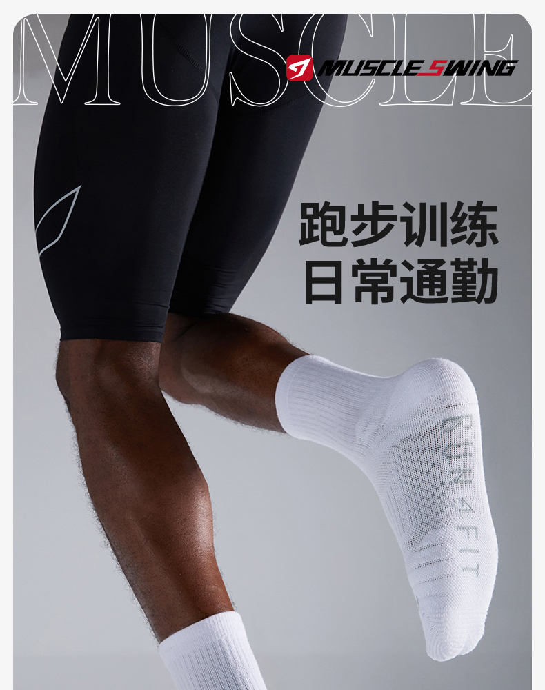 620肌动RUNFIT专业运动袜男马拉松跑步训练袜秋冬毛巾底纯色中筒袜