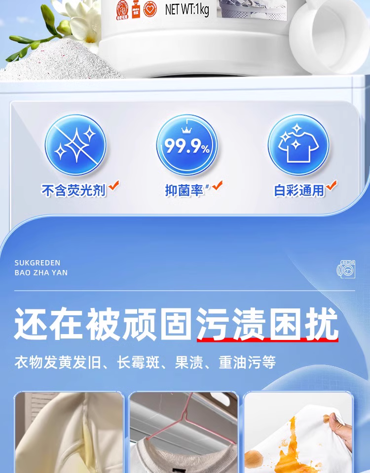【刮码发货】SukGarden蔬果园活氧颗粒爆炸盐-1kg