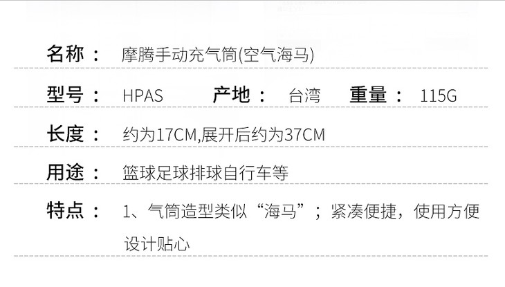 molten摩腾便携式打气筒篮球足球排球HPGDXSL双向气筒