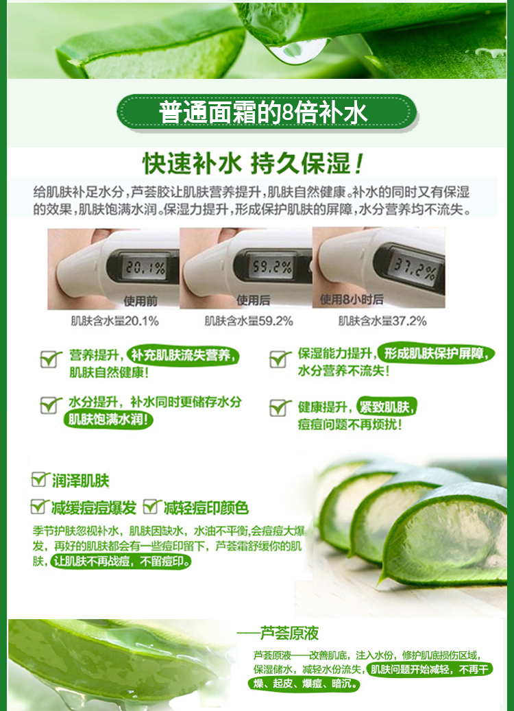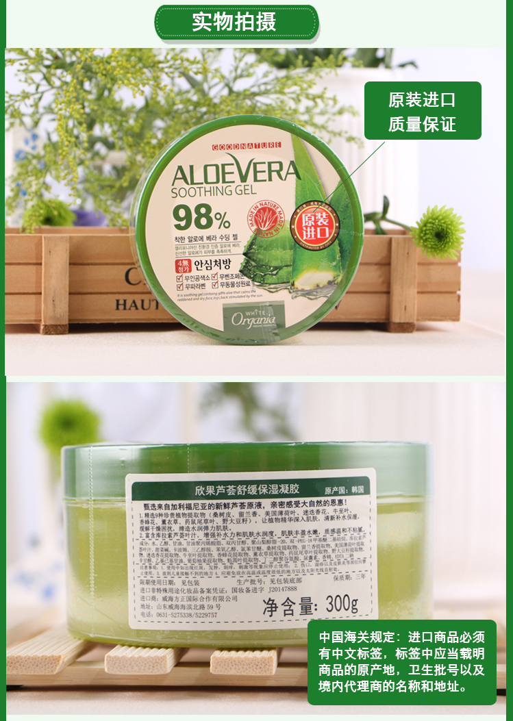 施姈芦荟保湿凝胶 98% 免洗祛痘淡印补水晒后修复300g*3罐