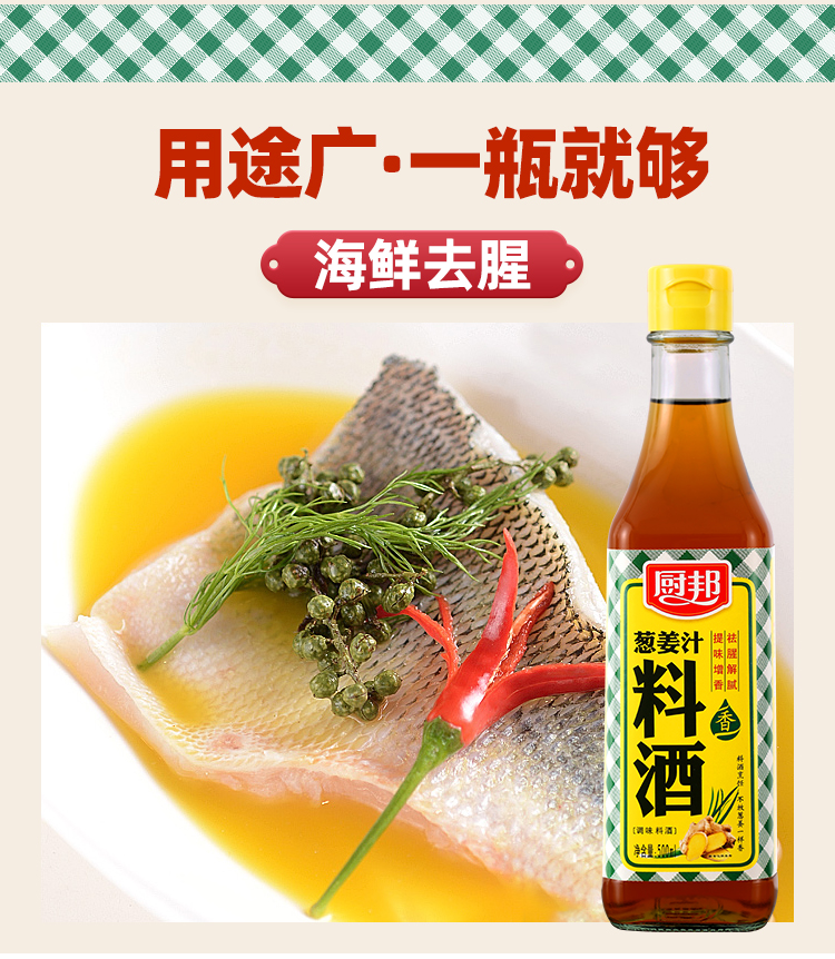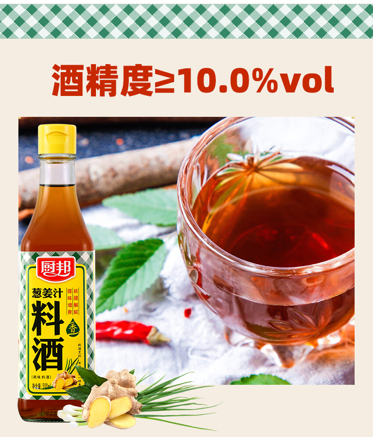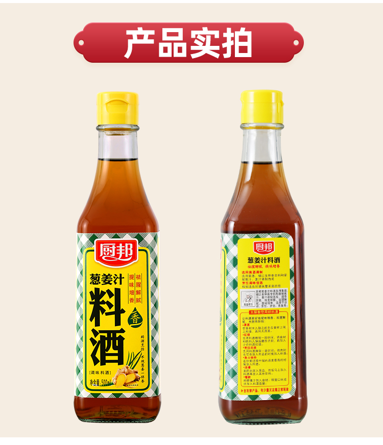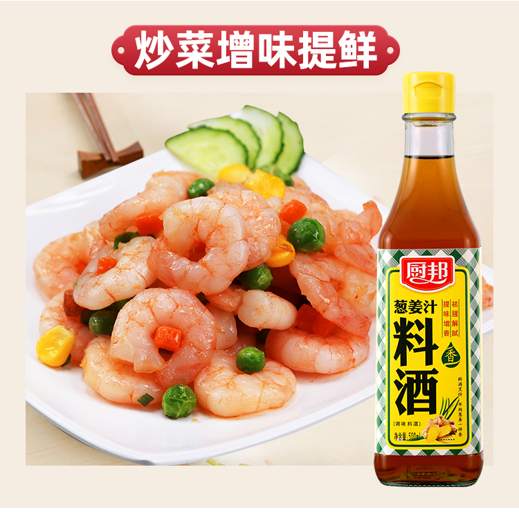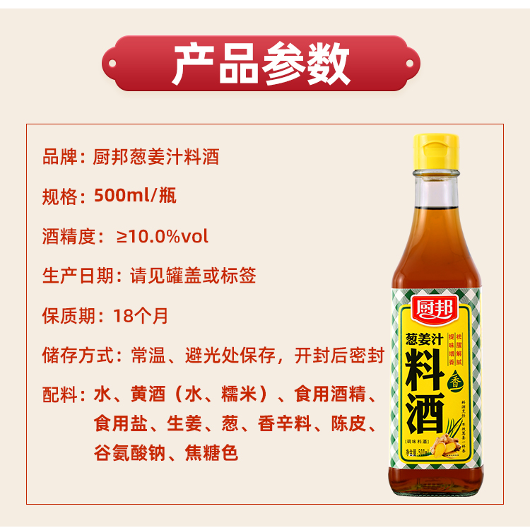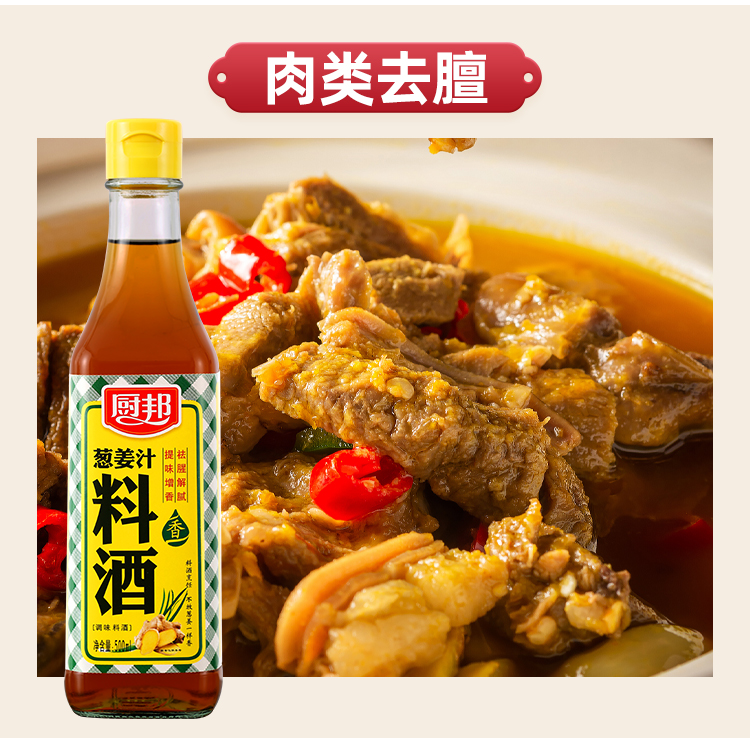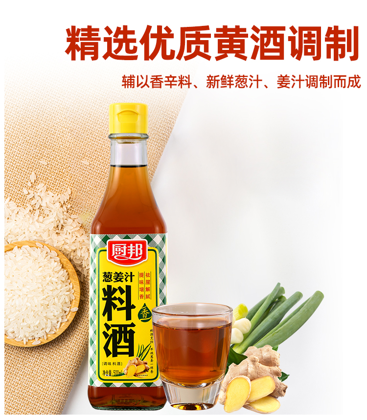 厨邦料酒葱姜汁料酒 传统黄酒酿造精制 去腥添香调味料 500mlLY