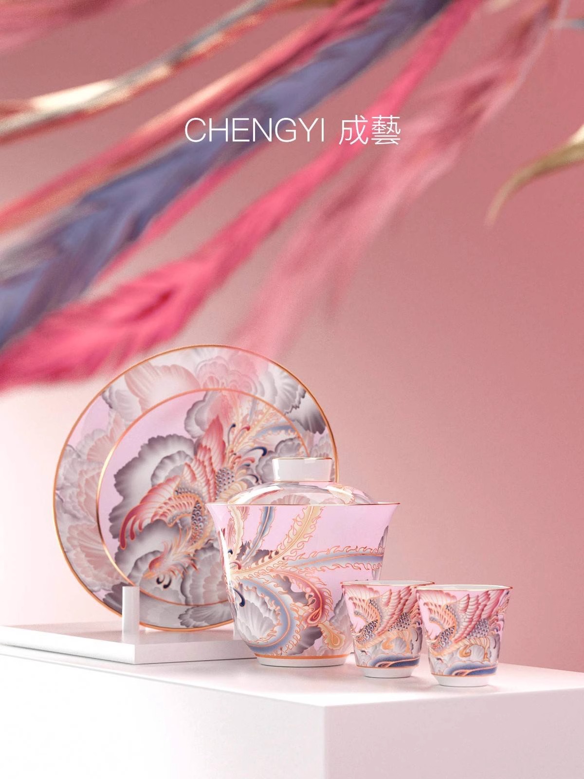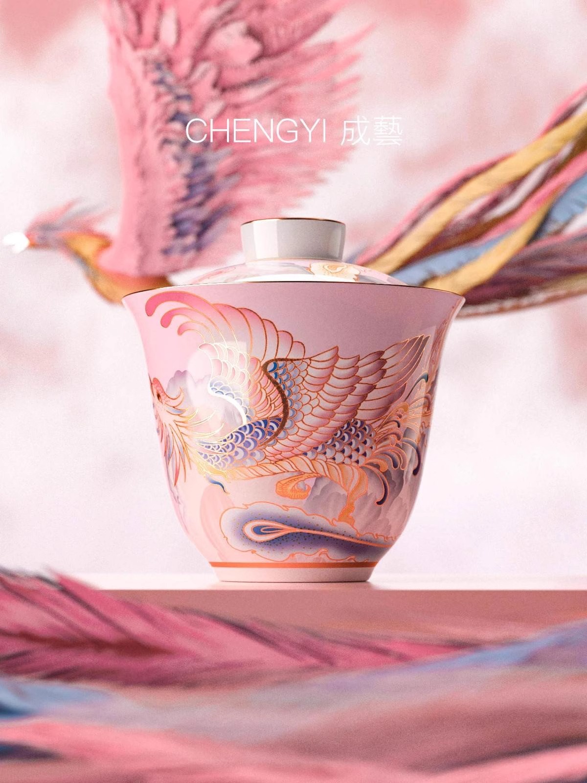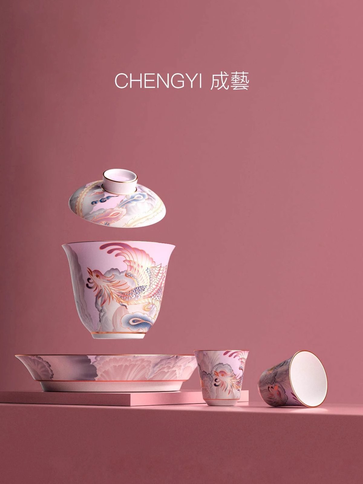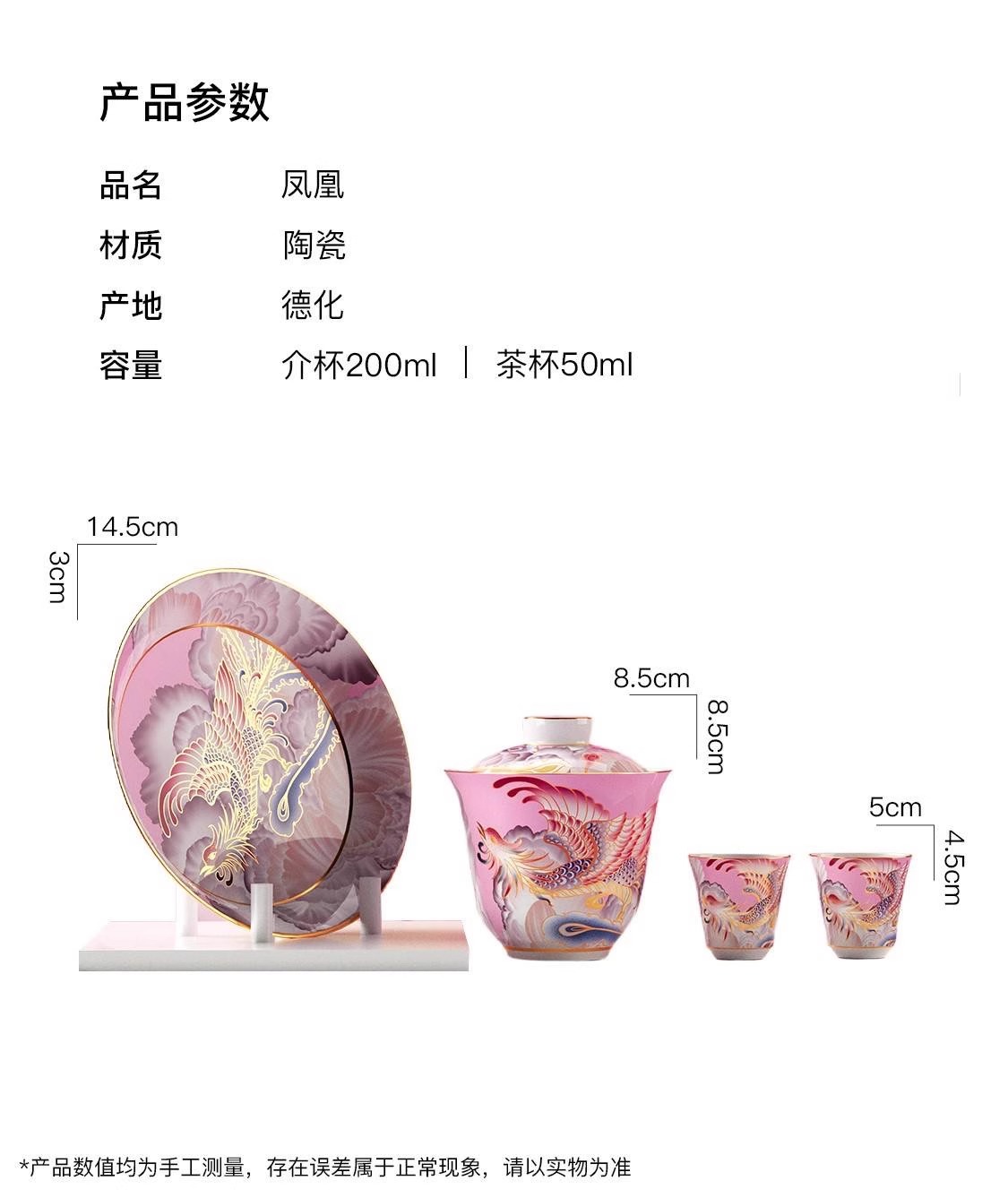 成艺-凤凰迷你1号三才盖碗200ML战马马蹄介杯千佛元宝小介杯三才盖碗