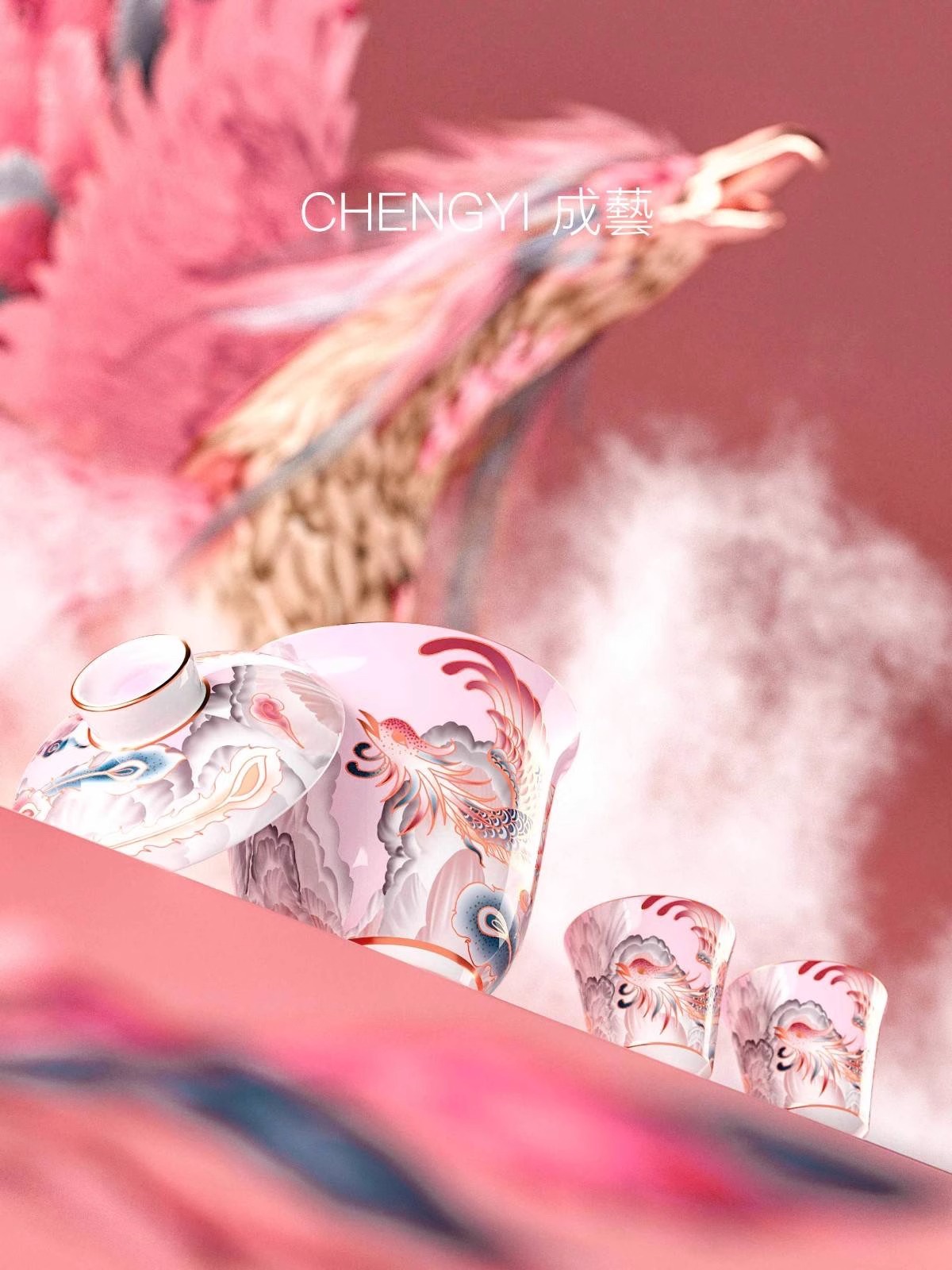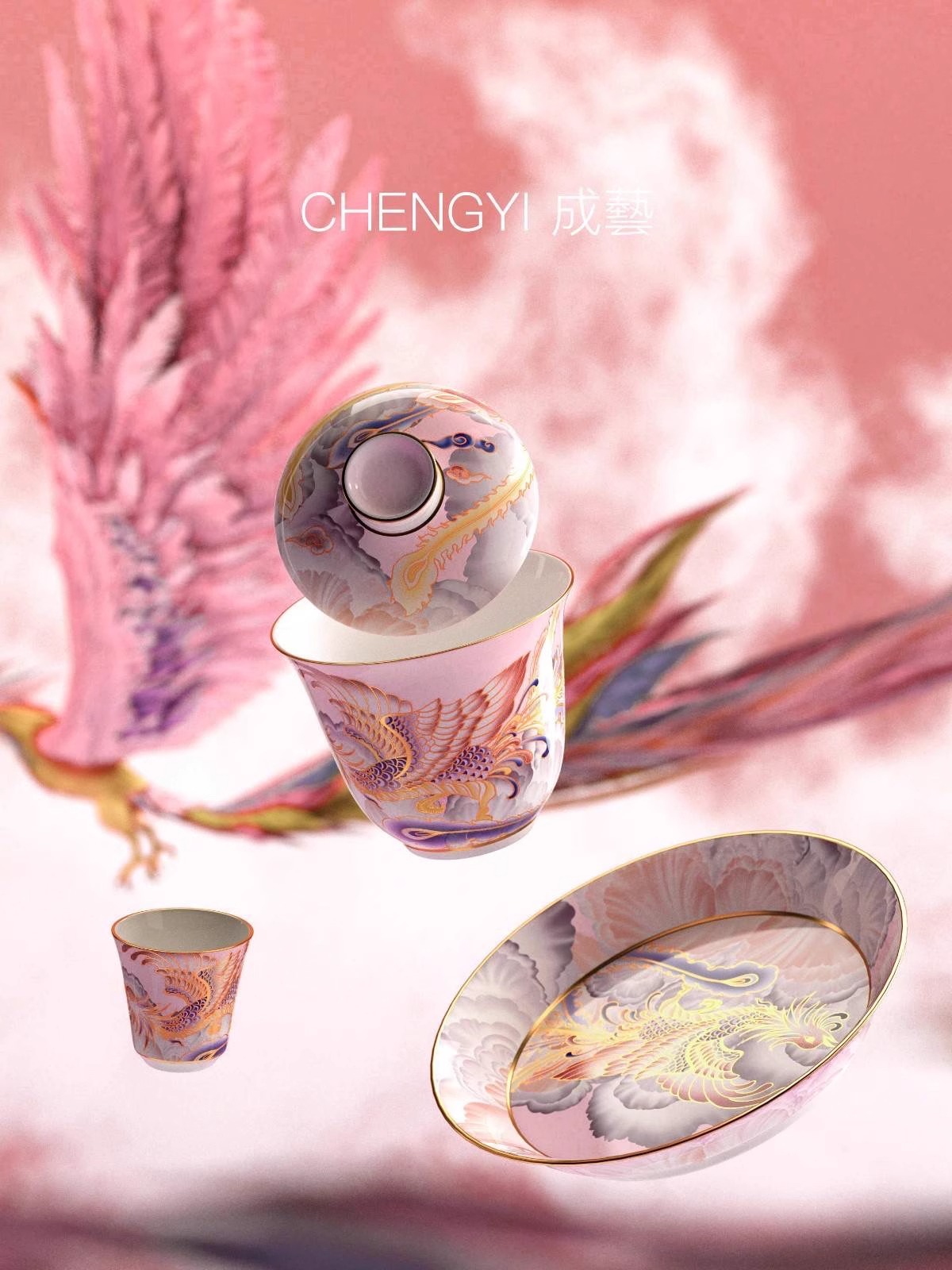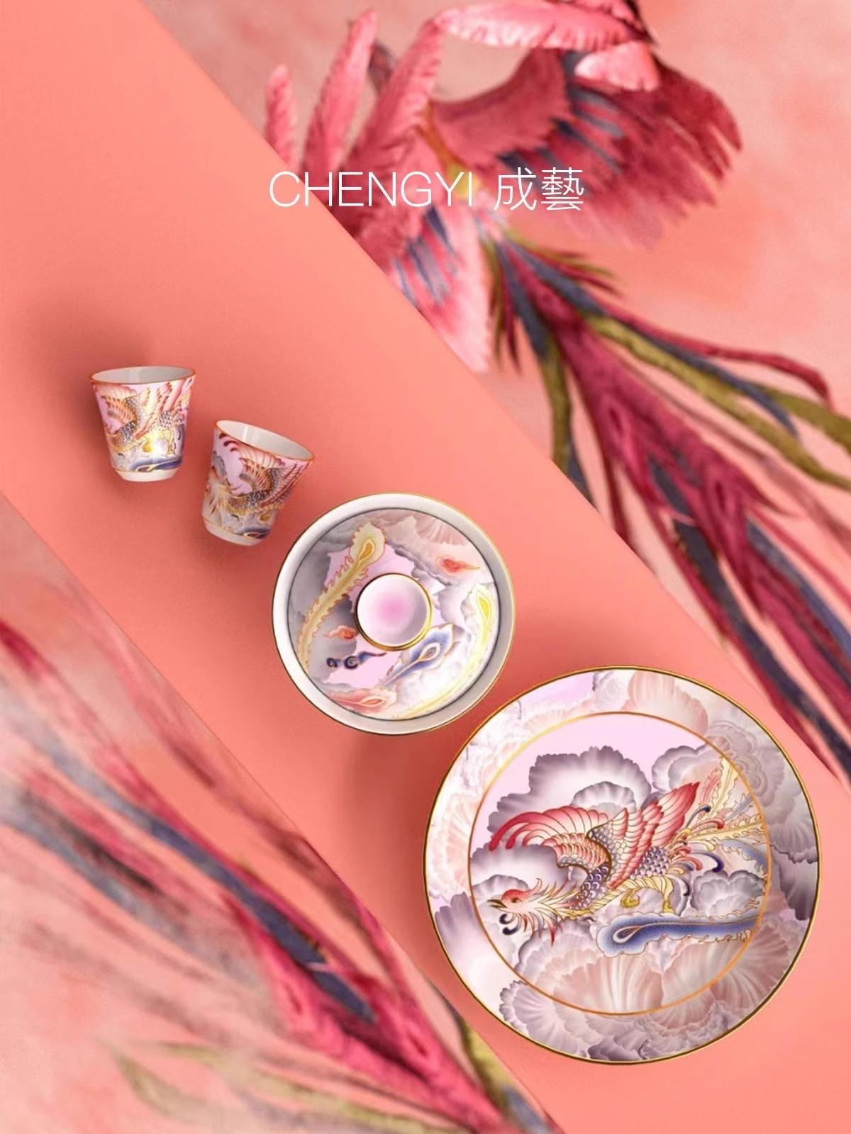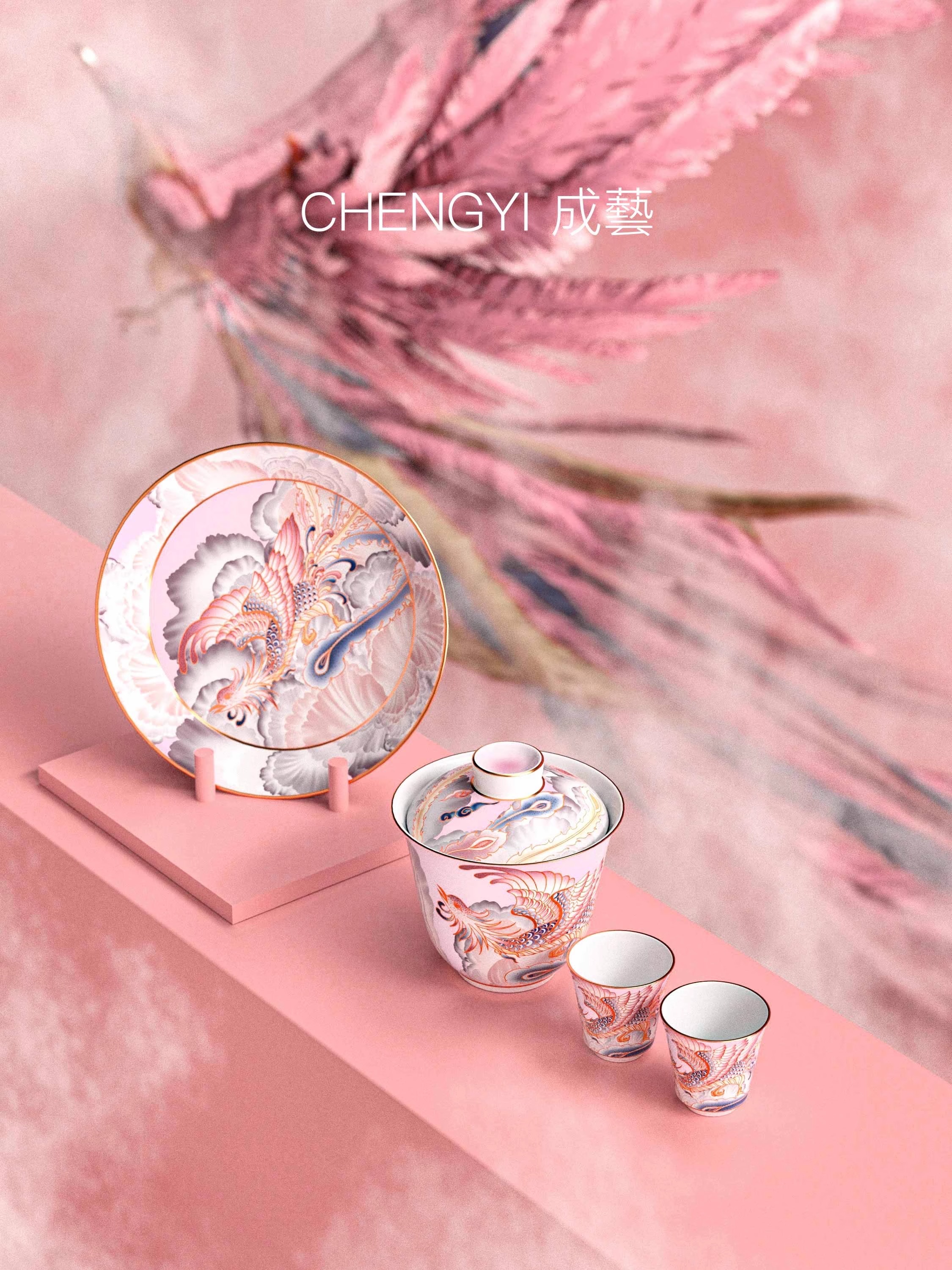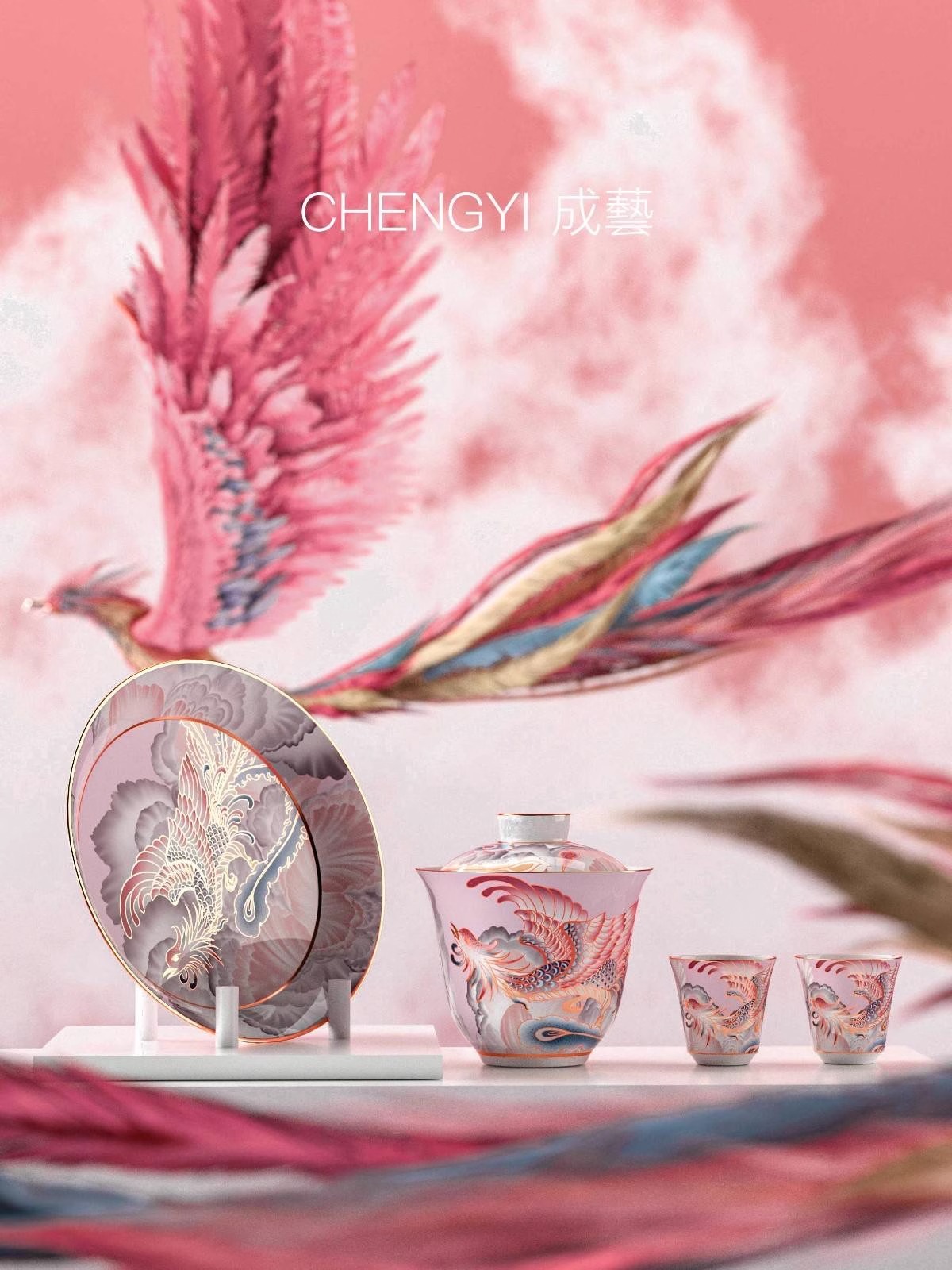成艺-凤凰迷你1号三才盖碗200ML战马马蹄介杯千佛元宝小介杯三才盖碗