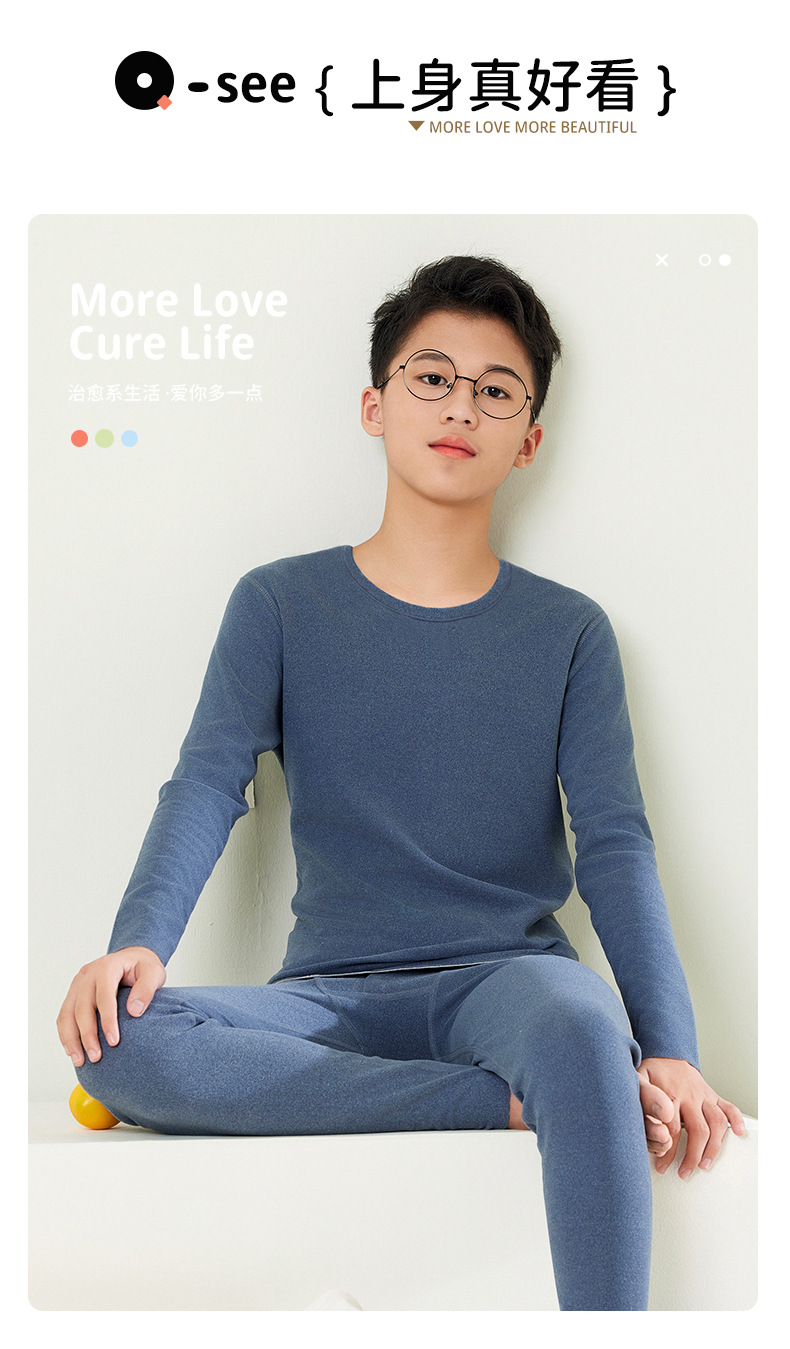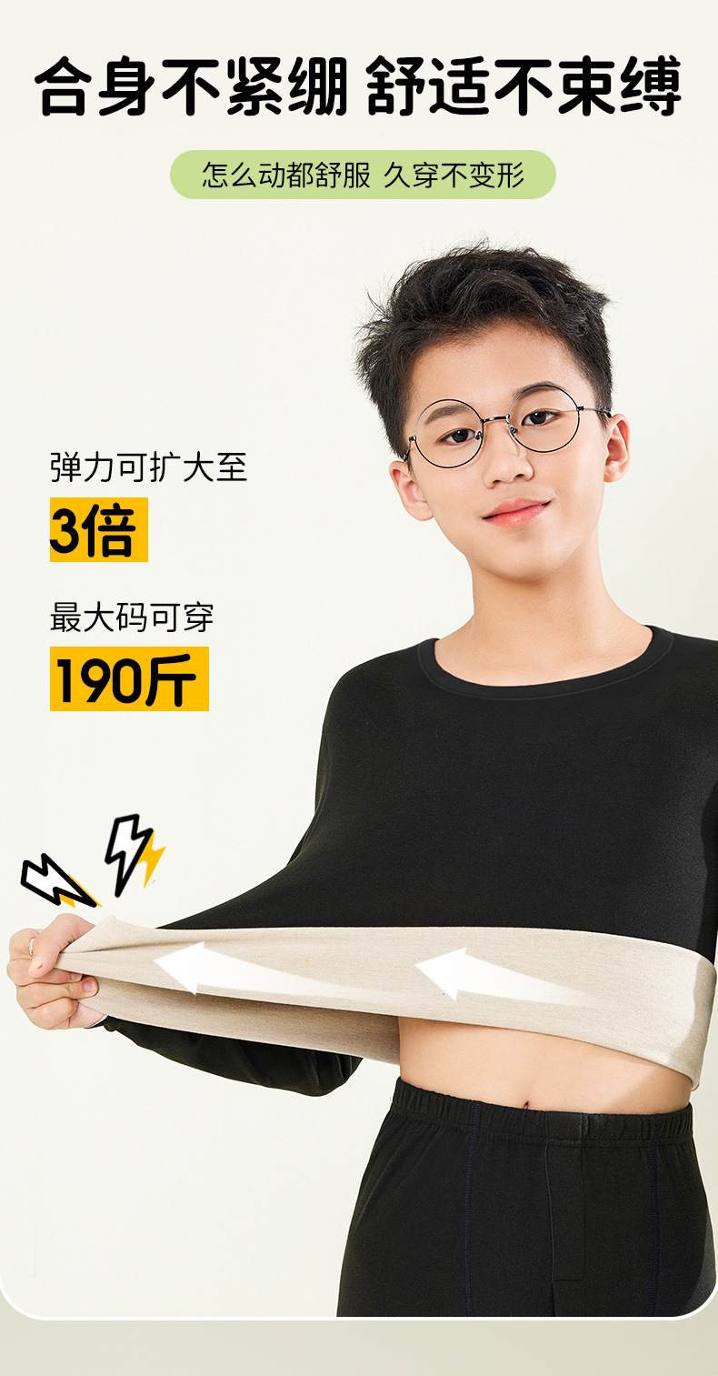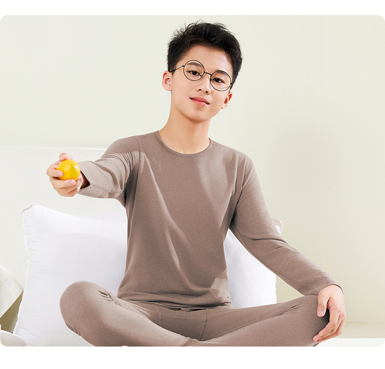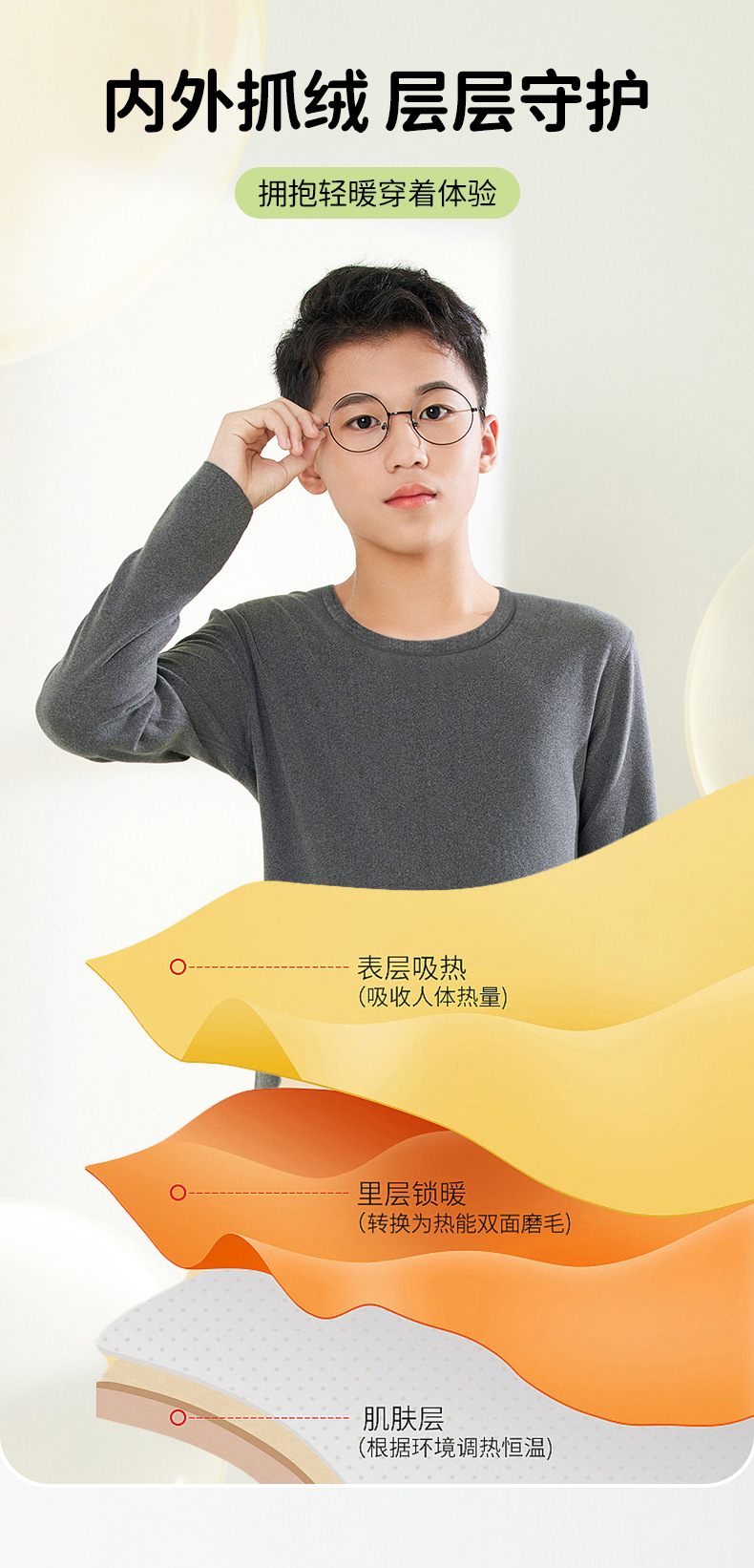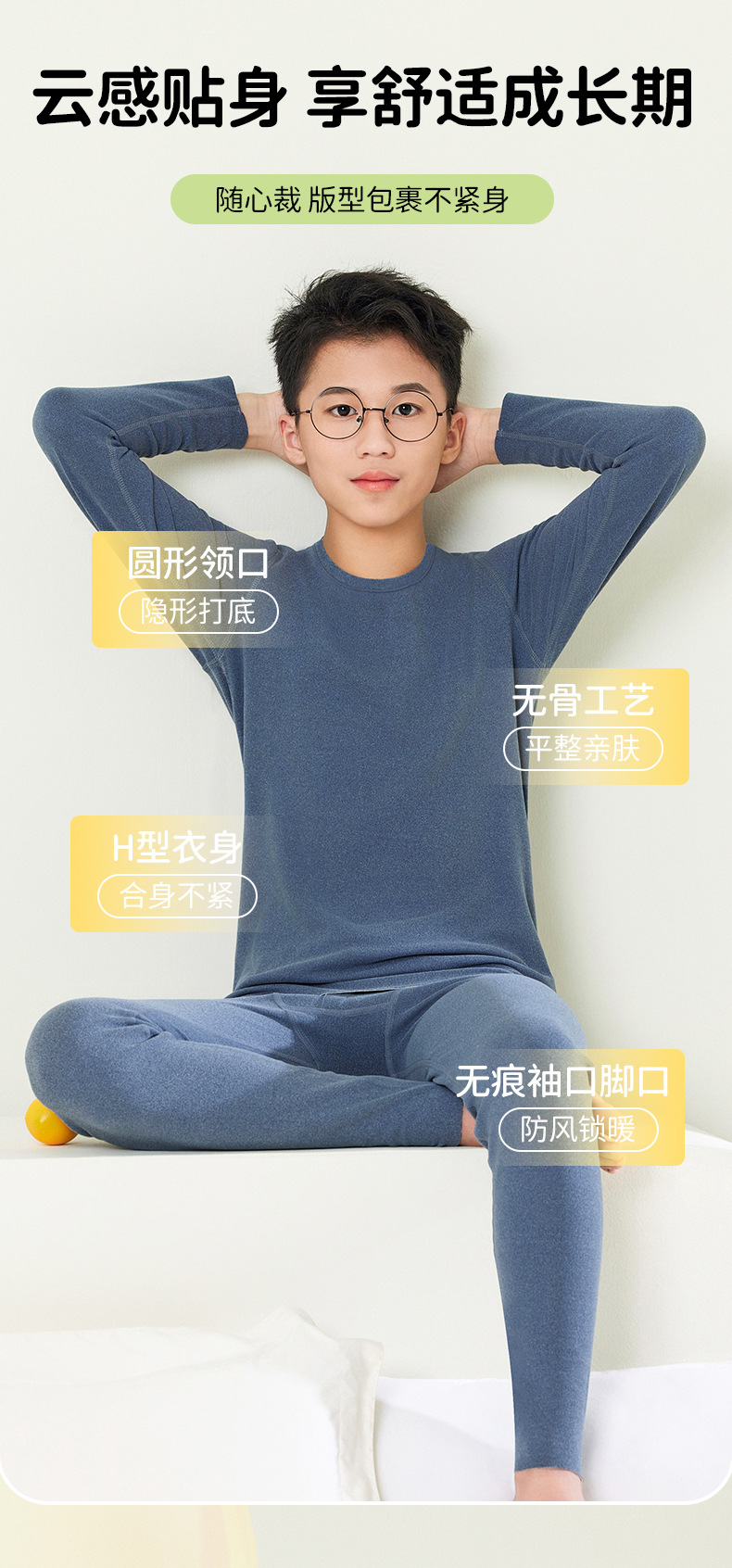 羊毛蚕丝保暖青少年羊毛蚕丝德绒秋衣秋裤套装男大童初中高中学生保暖内衣冬季
