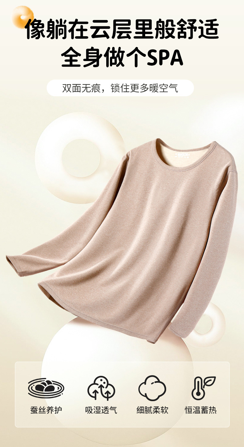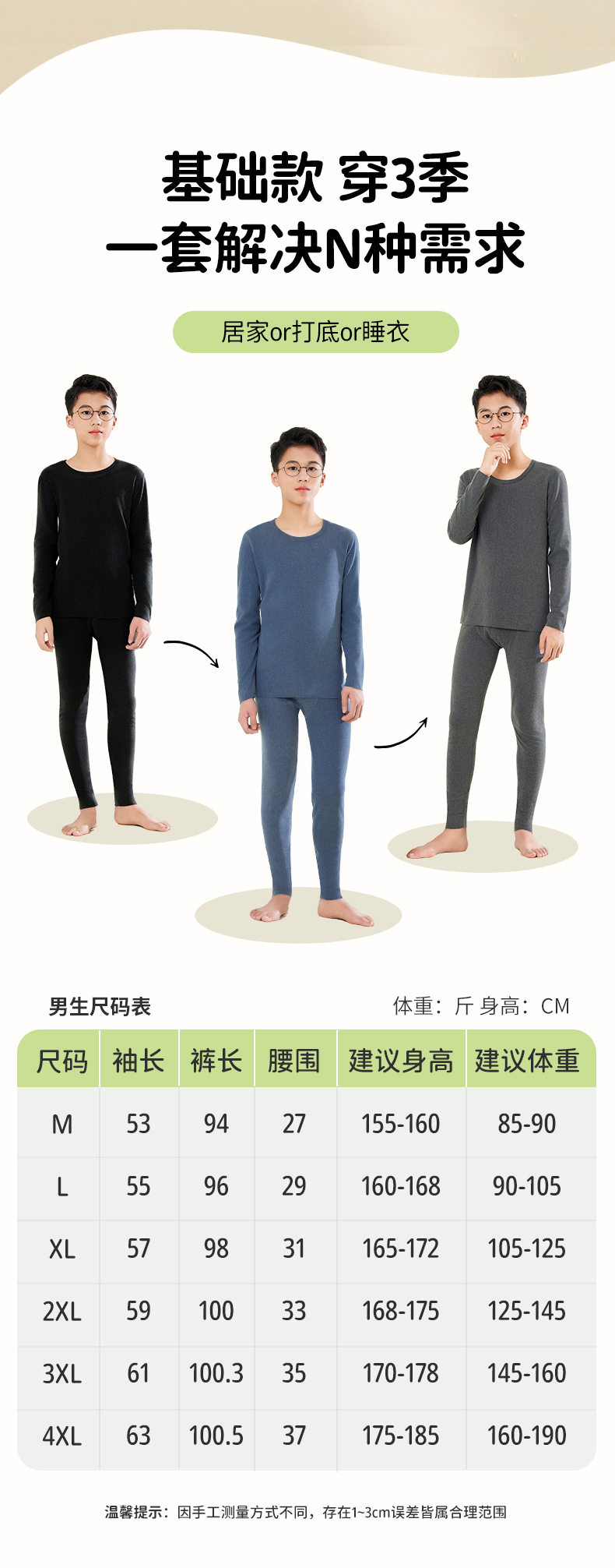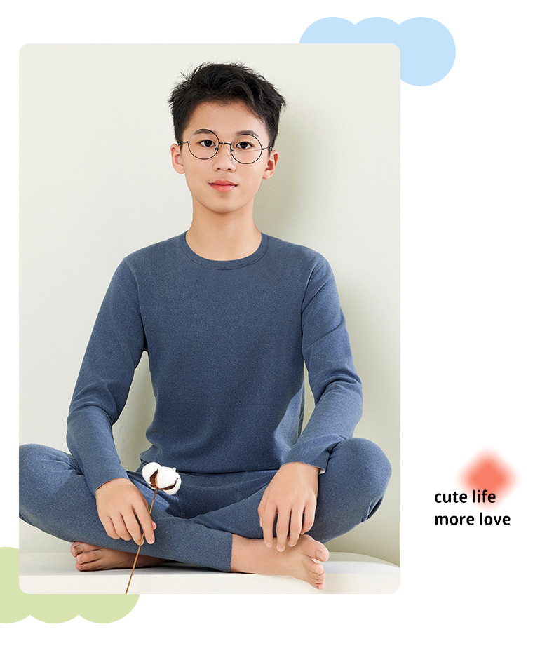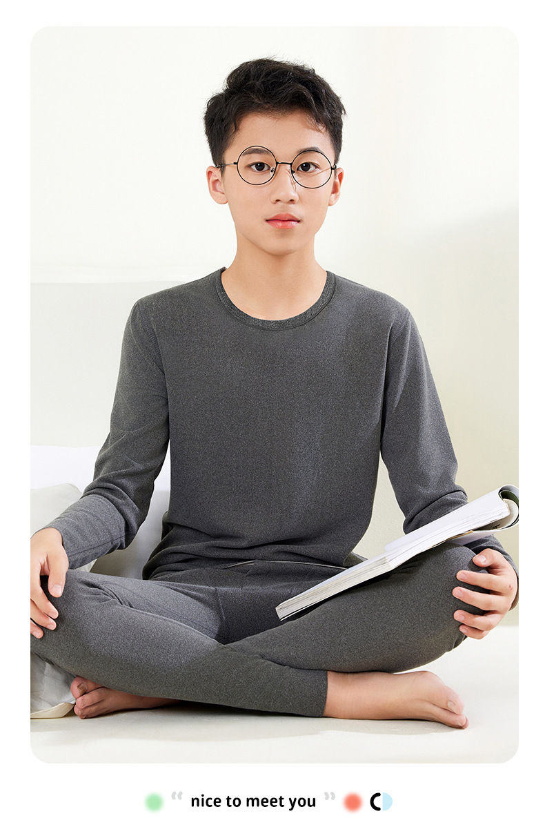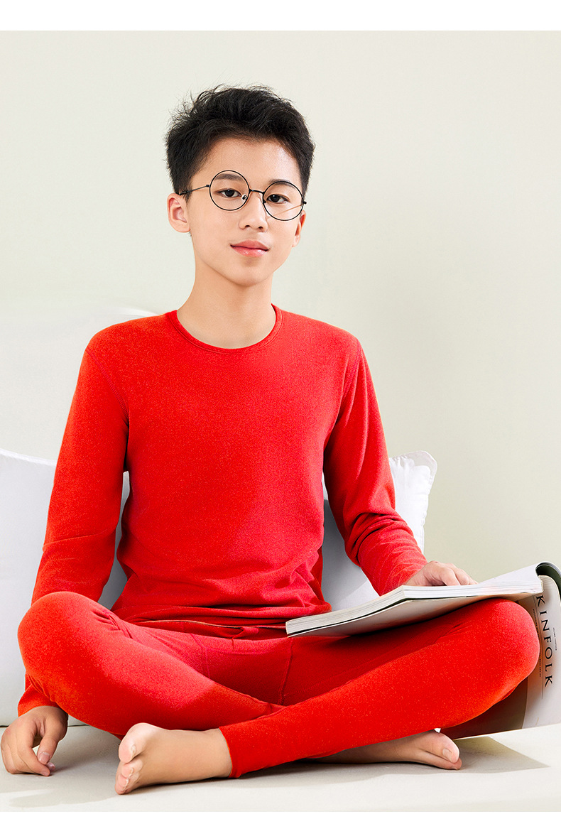 羊毛蚕丝保暖青少年羊毛蚕丝德绒秋衣秋裤套装男大童初中高中学生保暖内衣冬季