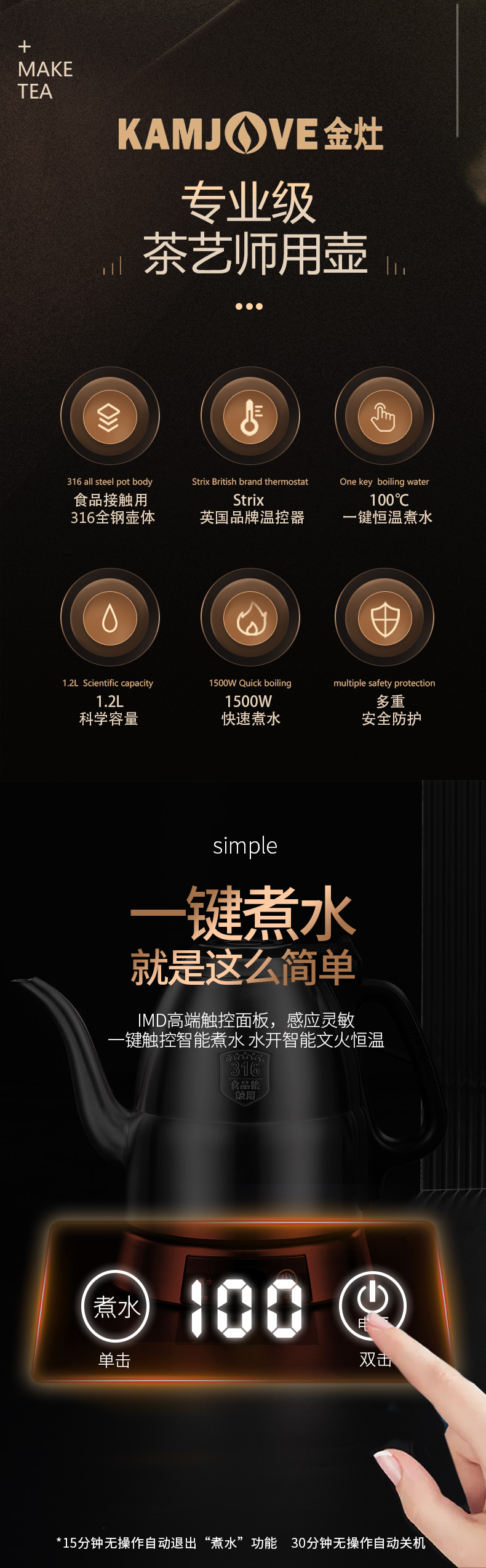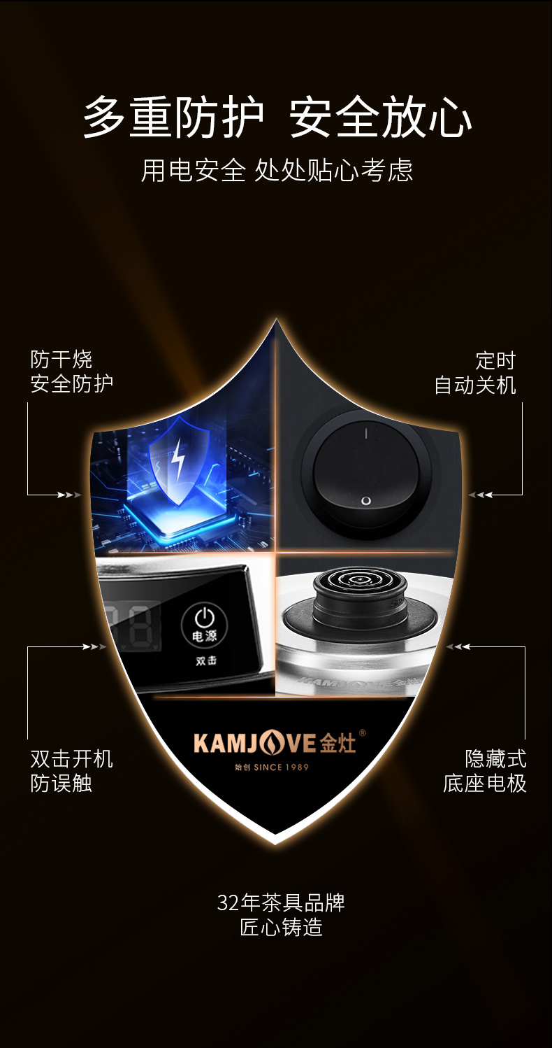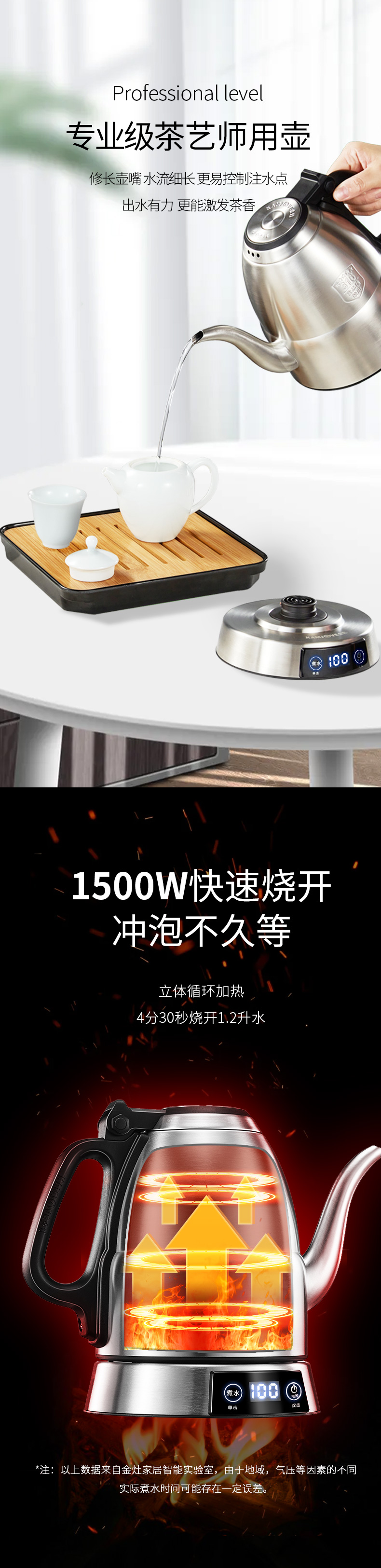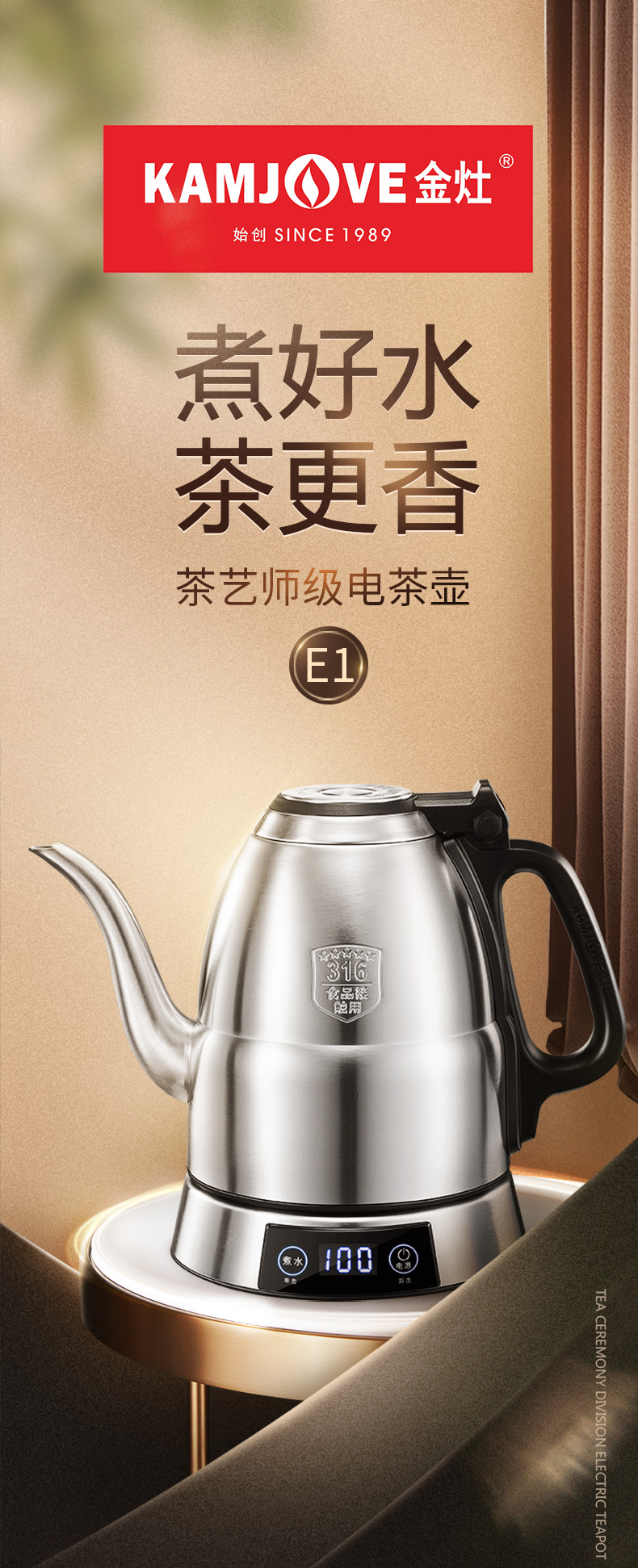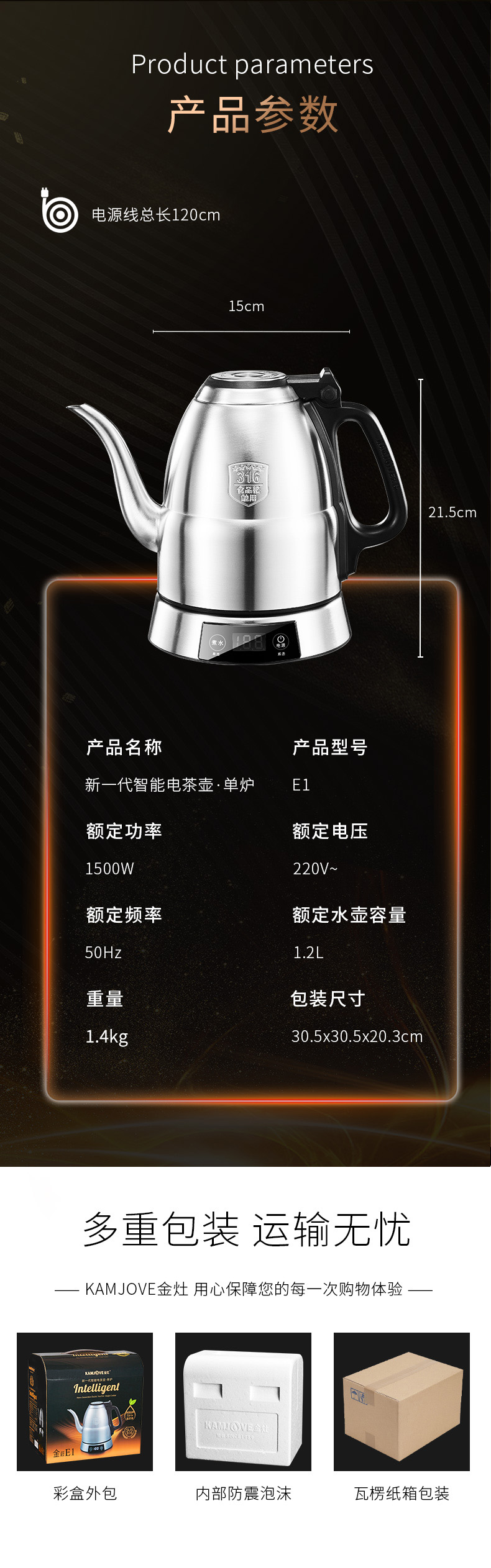 金灶 专业茶艺师壶316不锈钢电水烧水壶智能电茶壶E1(1.2L容量)