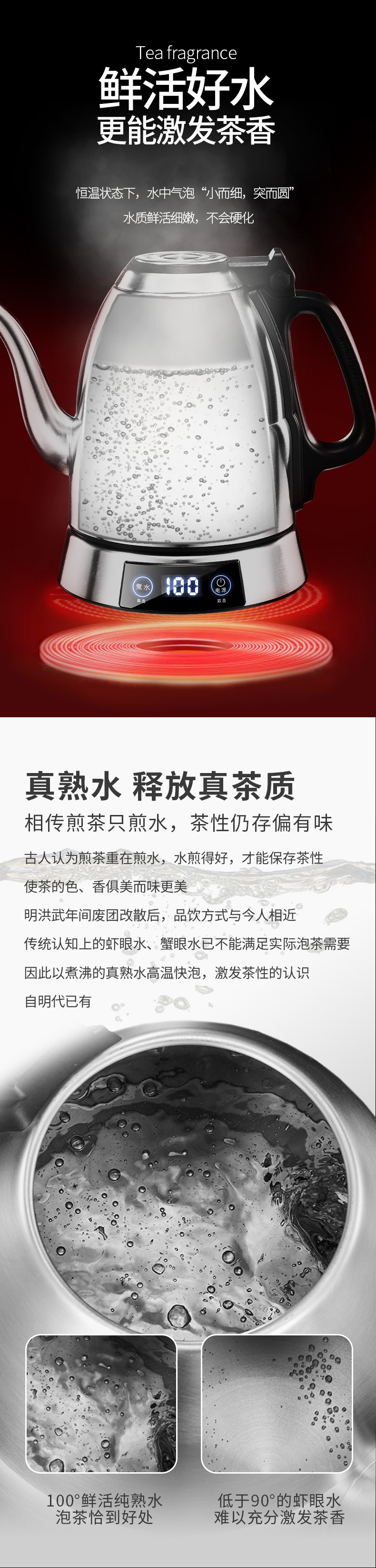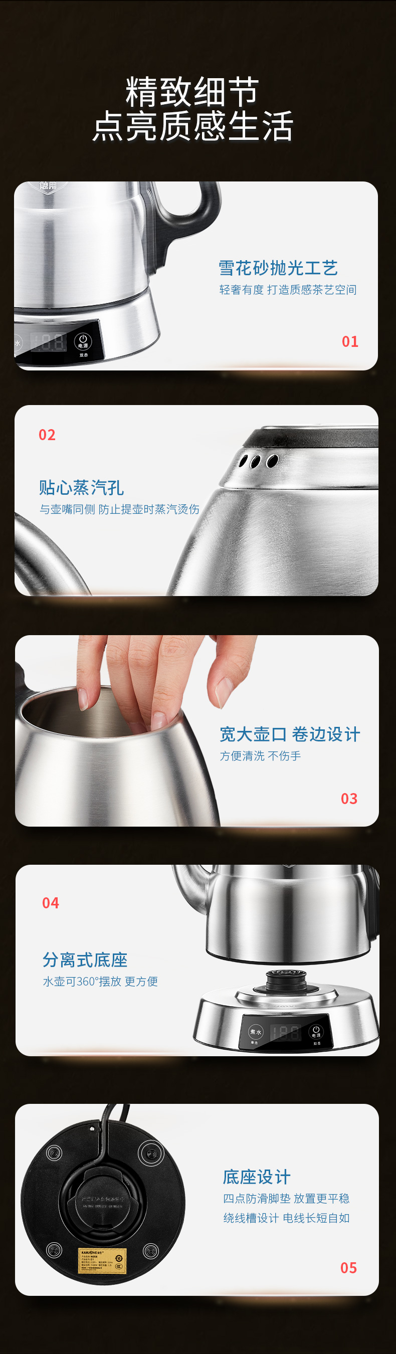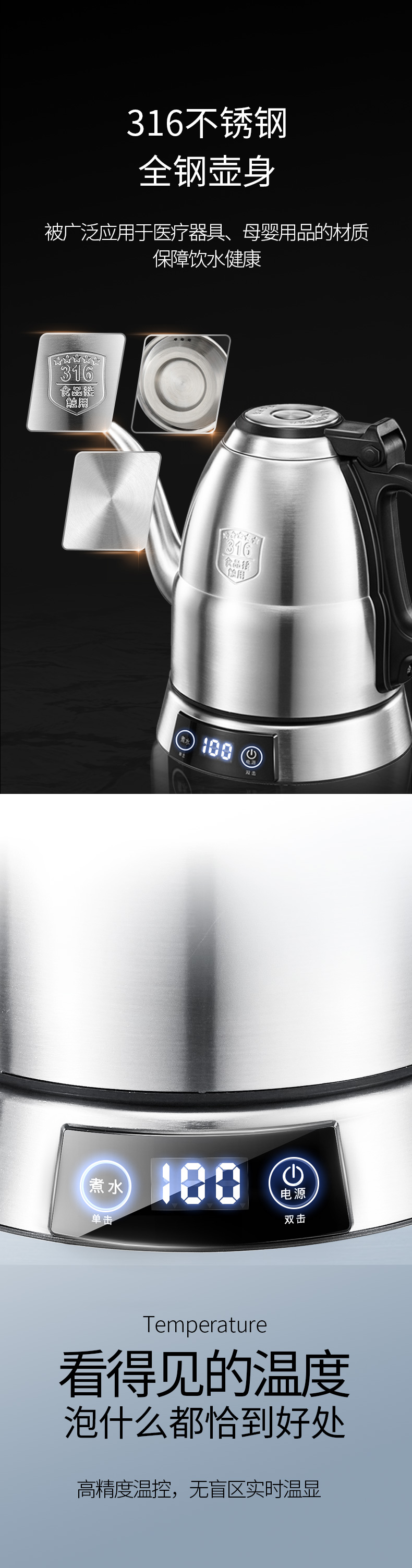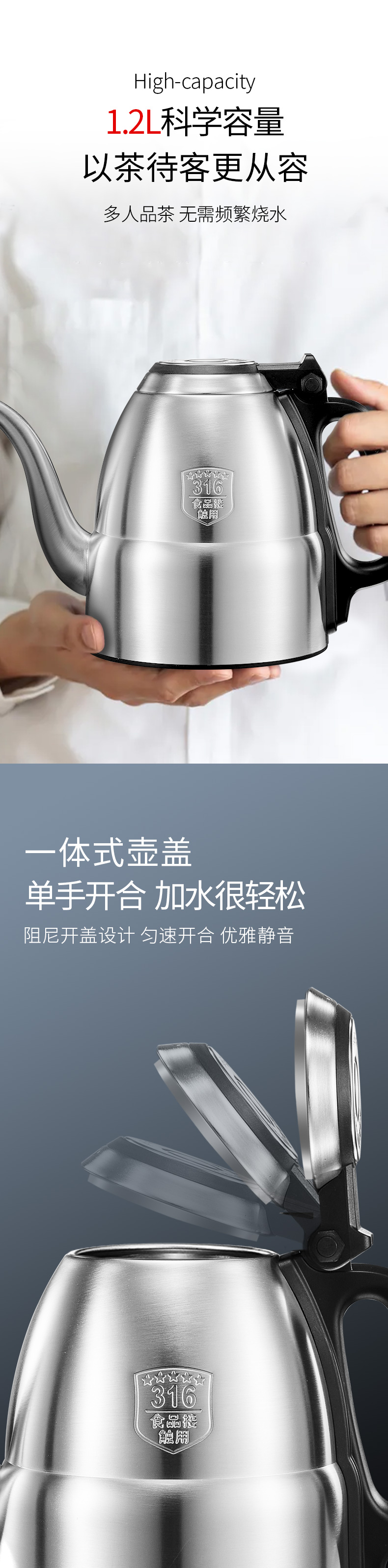 金灶 专业茶艺师壶316不锈钢电水烧水壶智能电茶壶E1(1.2L容量)