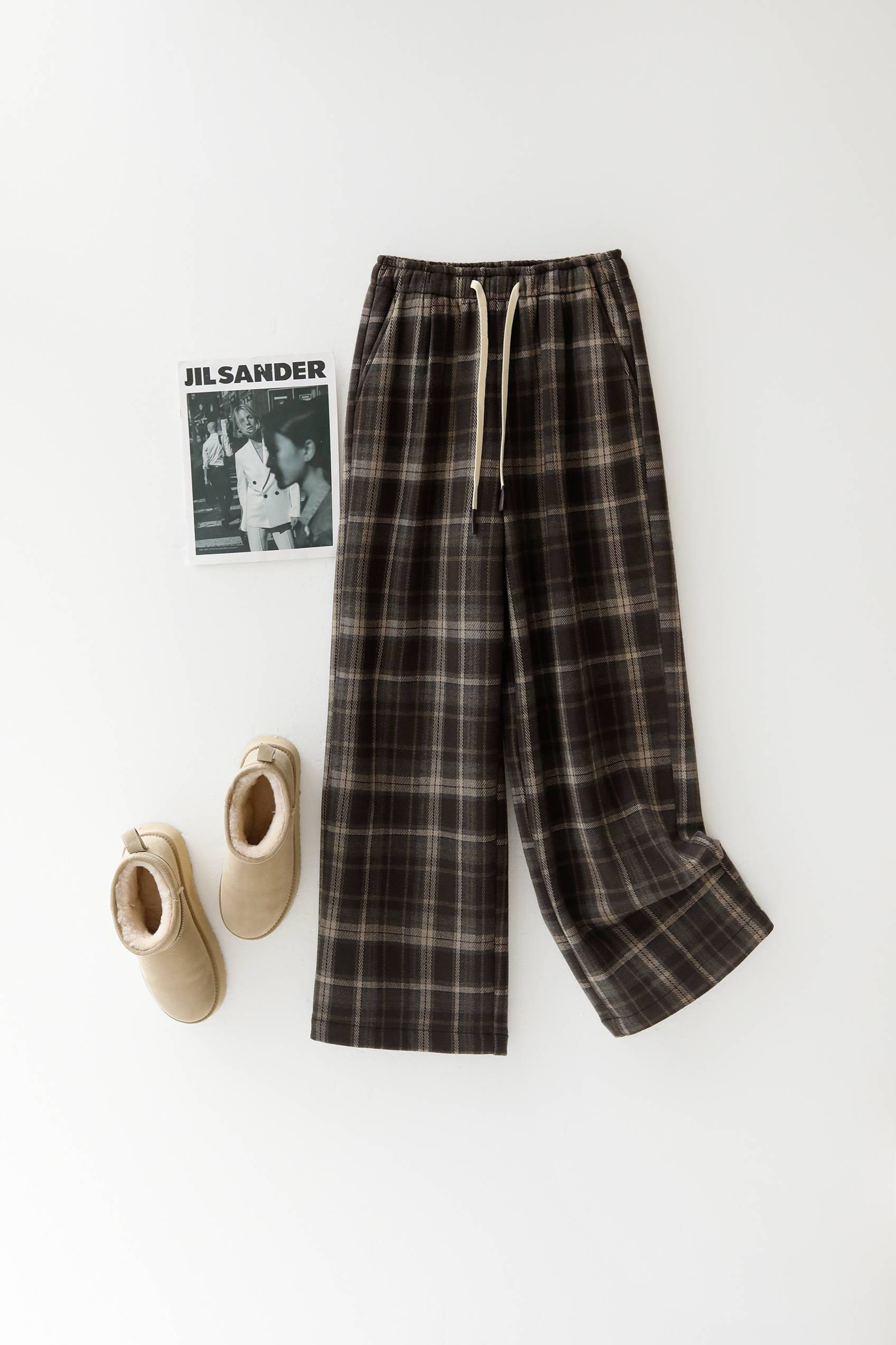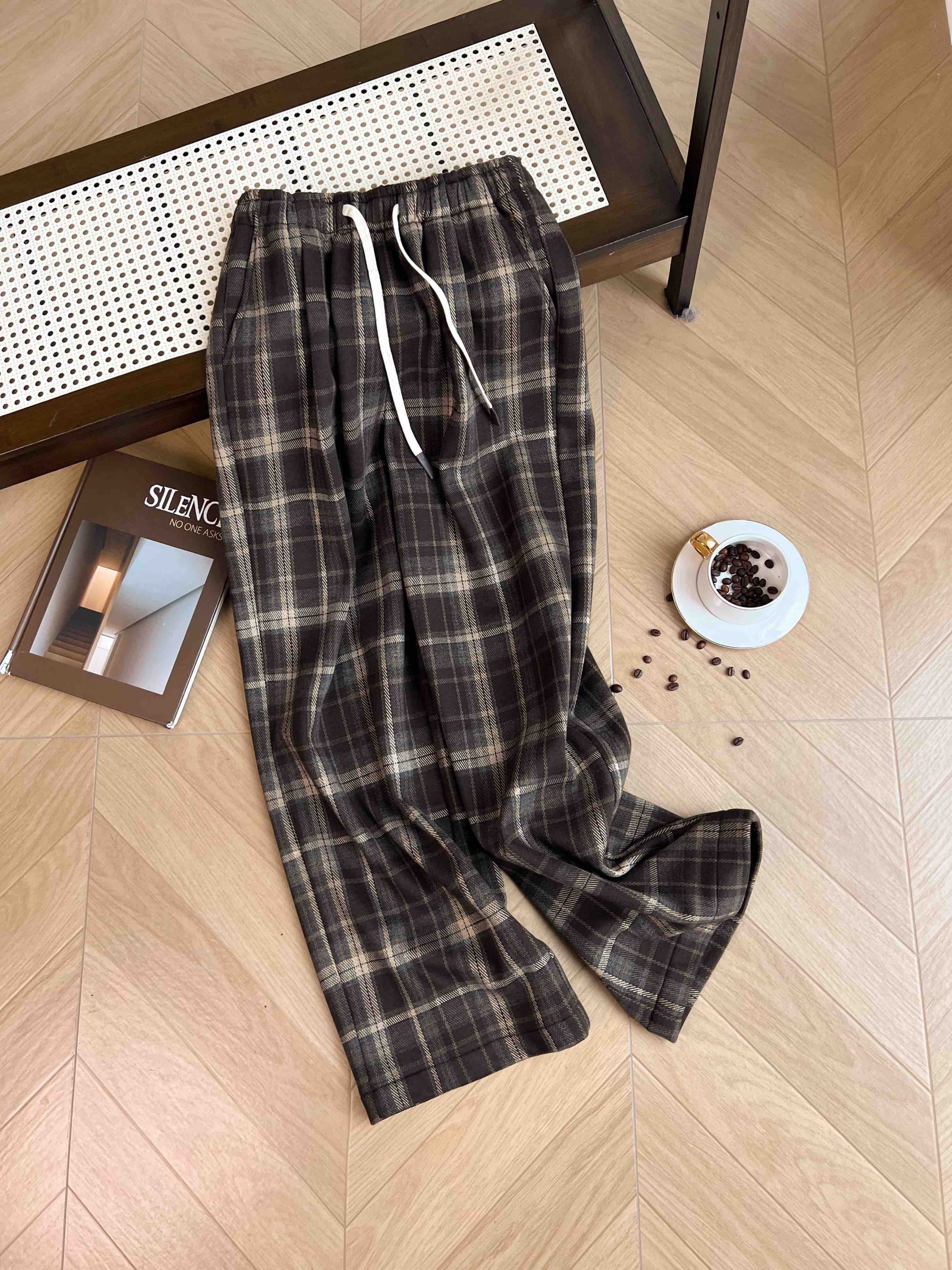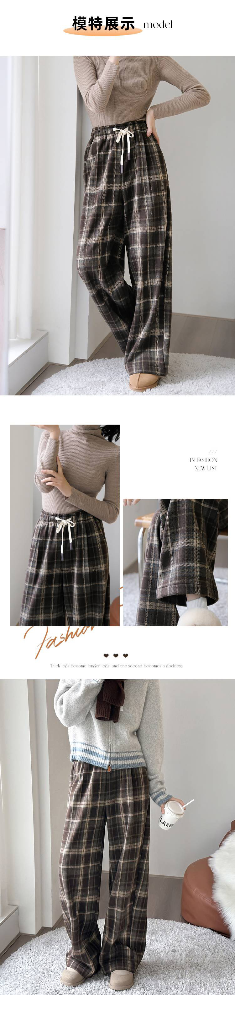 【限时抢购】【全量检品】国内一线代工 女士韩版休闲格子加绒保暖休闲裤 002A016291