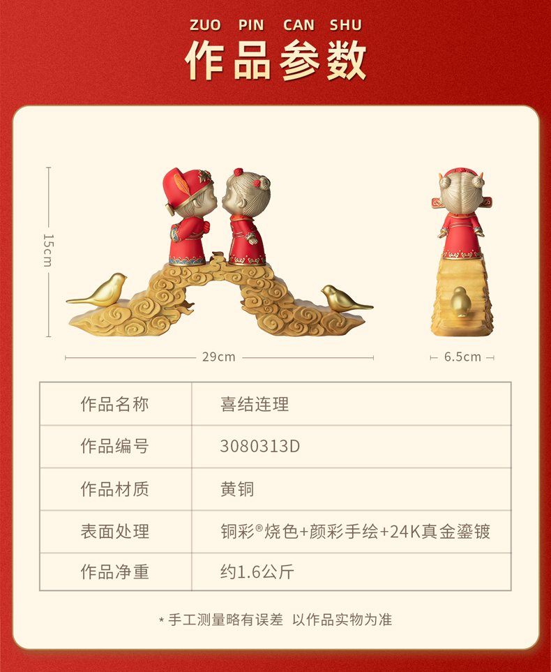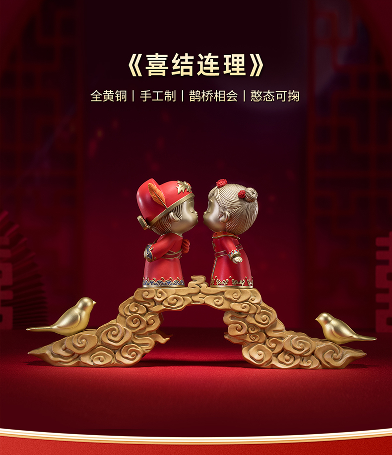 铜师傅《喜结连理》客厅桌面铜摆件 家居装饰品 结婚礼物