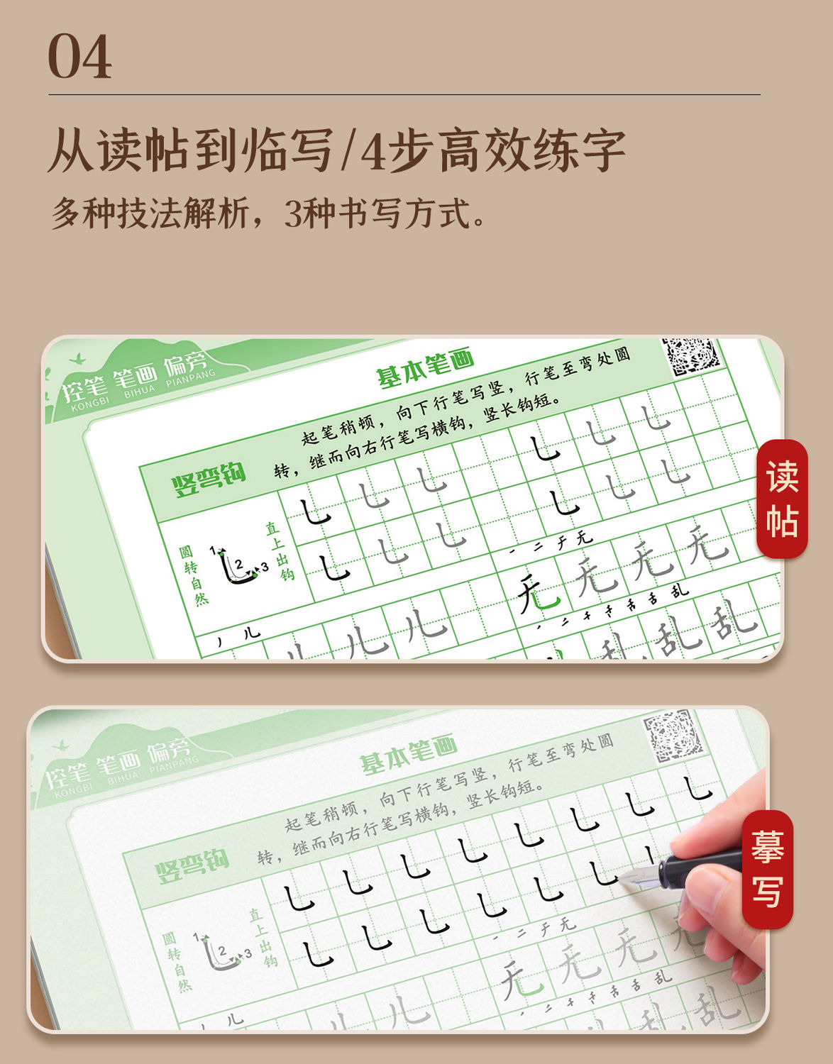 楷书临摹练字帖正楷学生成人通用全套初学者控笔笔画偏旁基础训练