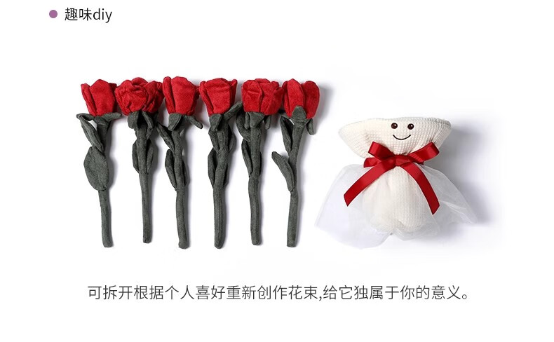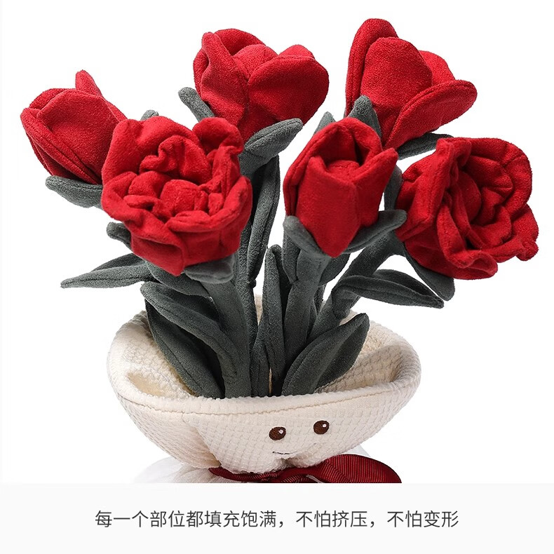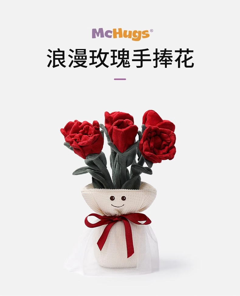 MCHUGS玫瑰花手捧花植物玩偶娃娃毛绒玩具生日礼物情侣礼物 浪漫玫瑰手捧花 30CM