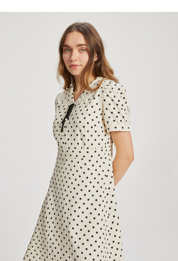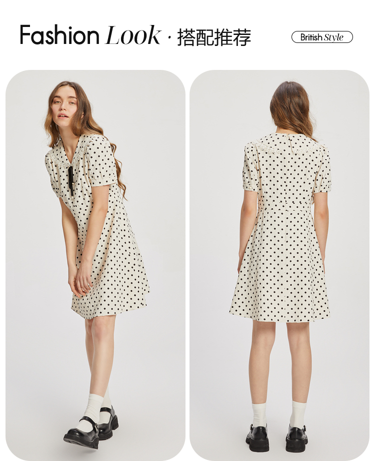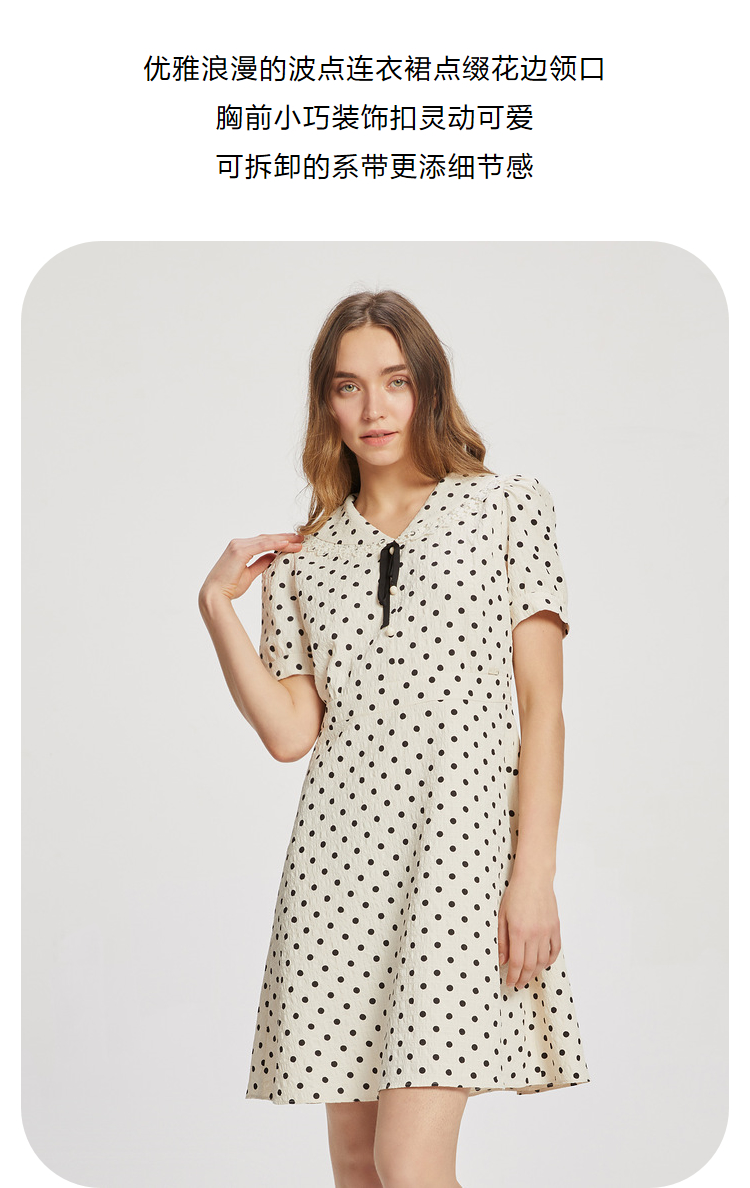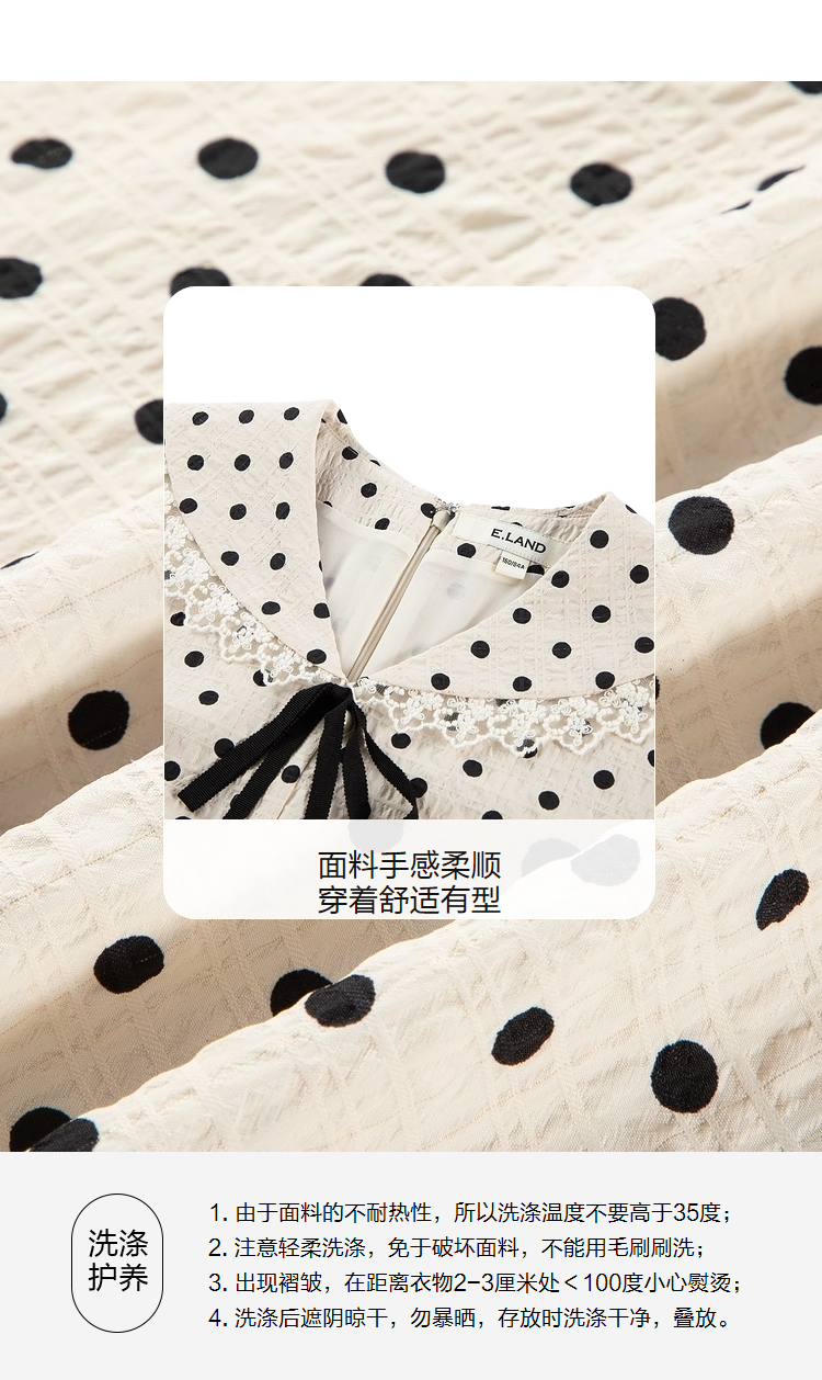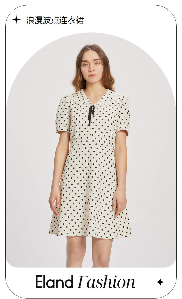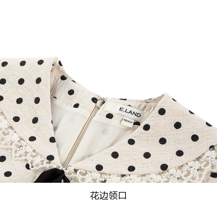 ELAND衣恋2浪漫淑女娃娃领优雅复古波点连衣裙女EEOWC24H6M