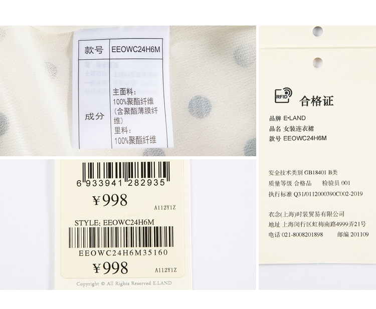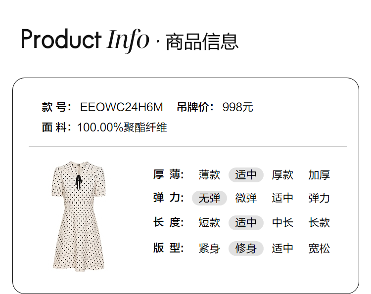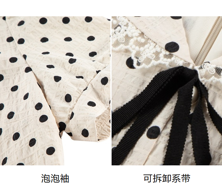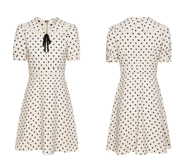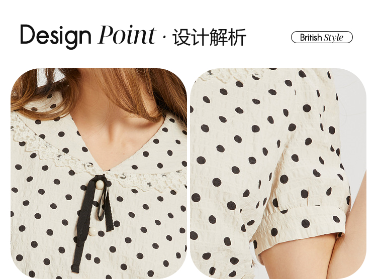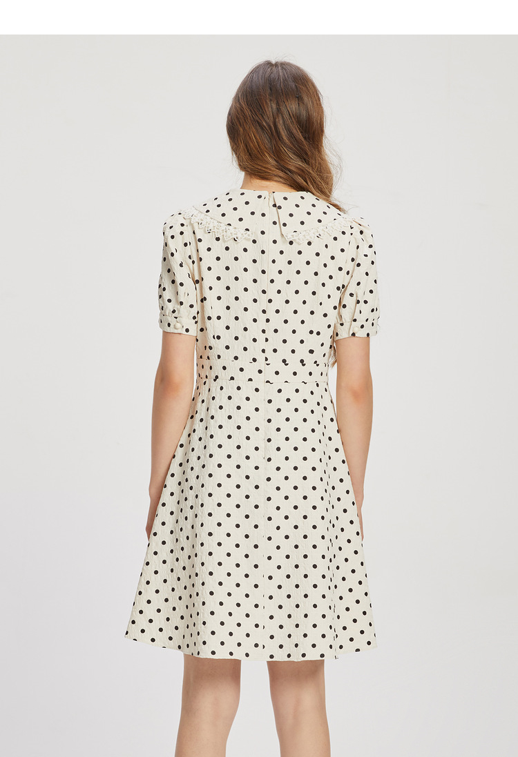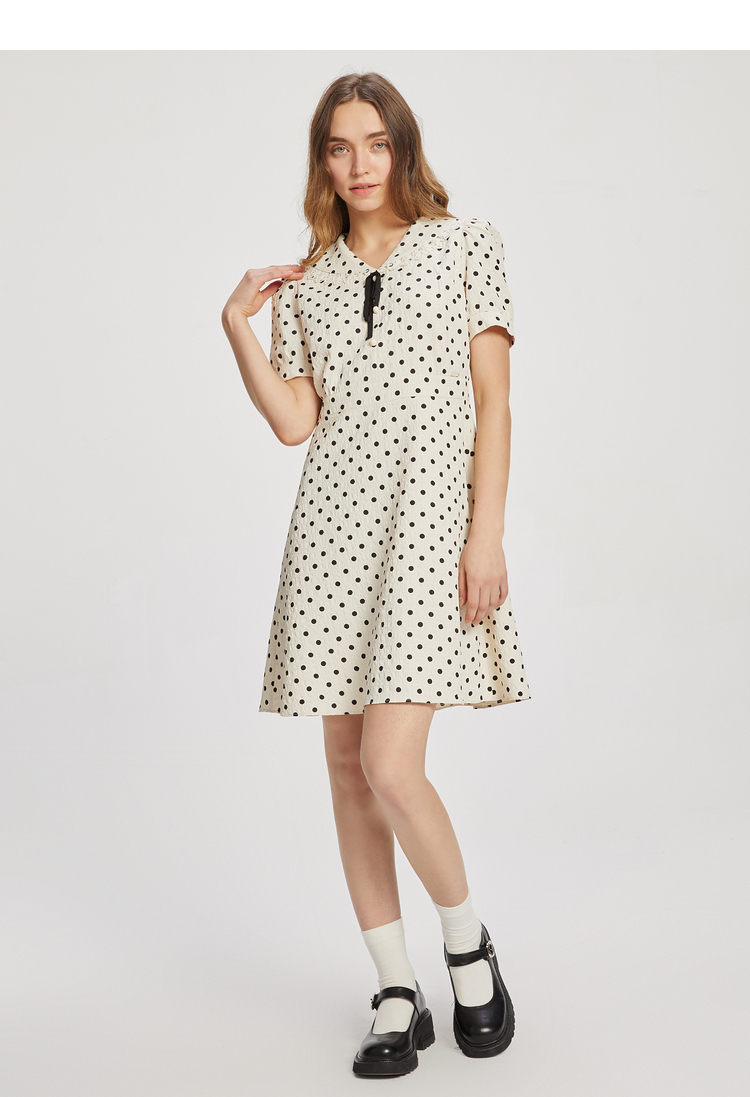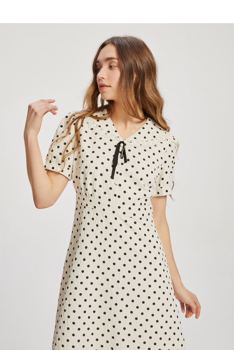 ELAND衣恋2浪漫淑女娃娃领优雅复古波点连衣裙女EEOWC24H6M