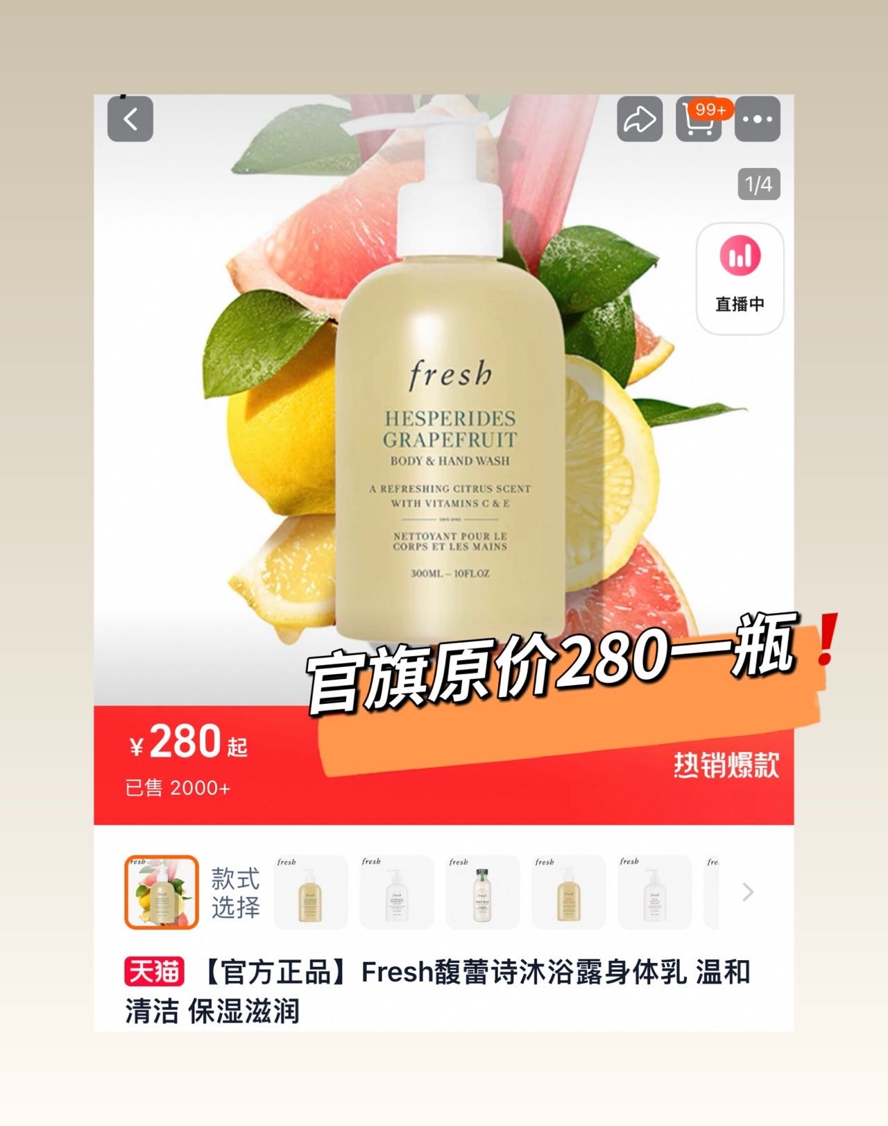 【Fresh馥蕾诗沐浴露 300ml】来一场西柚味的热水澡💦褪去一天的疲惫~轻松打造伪体香👋