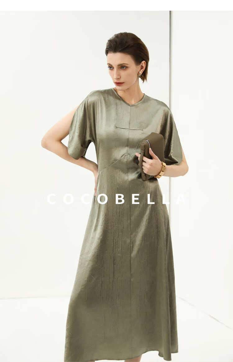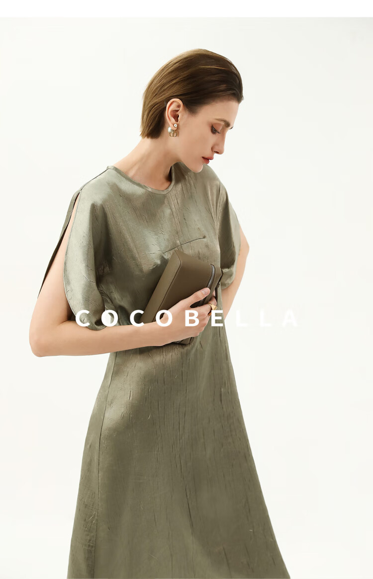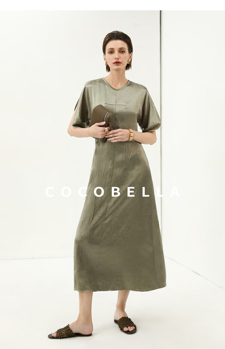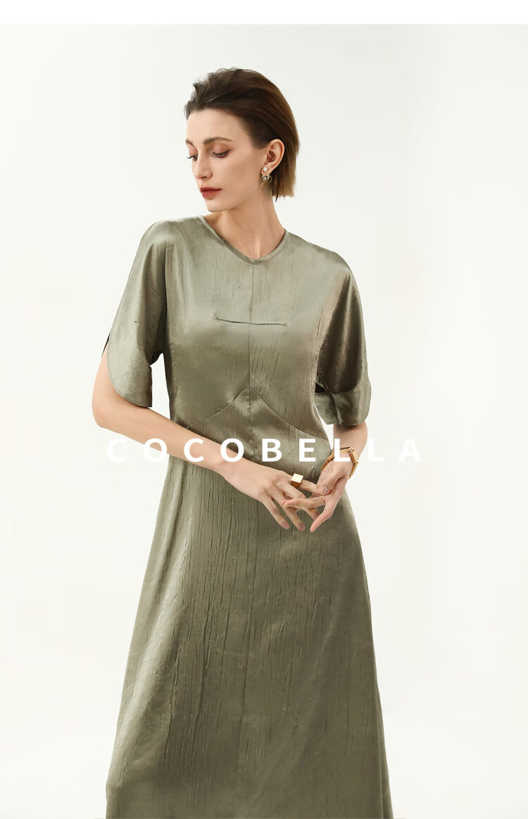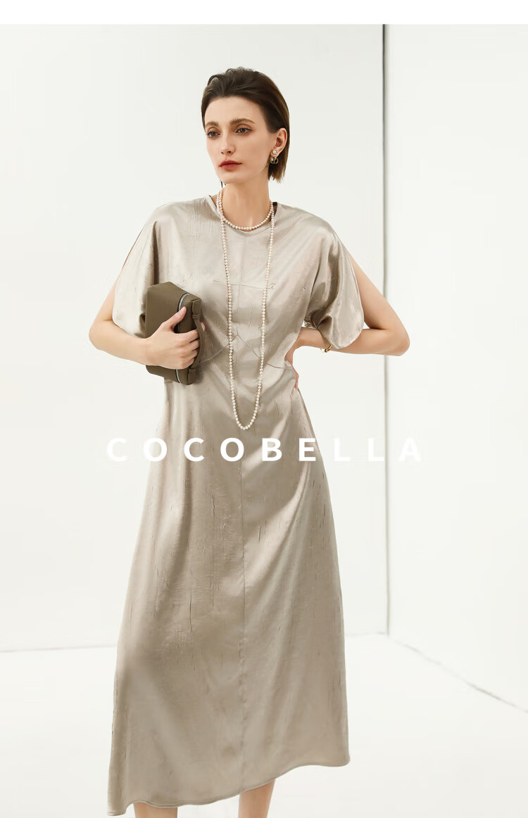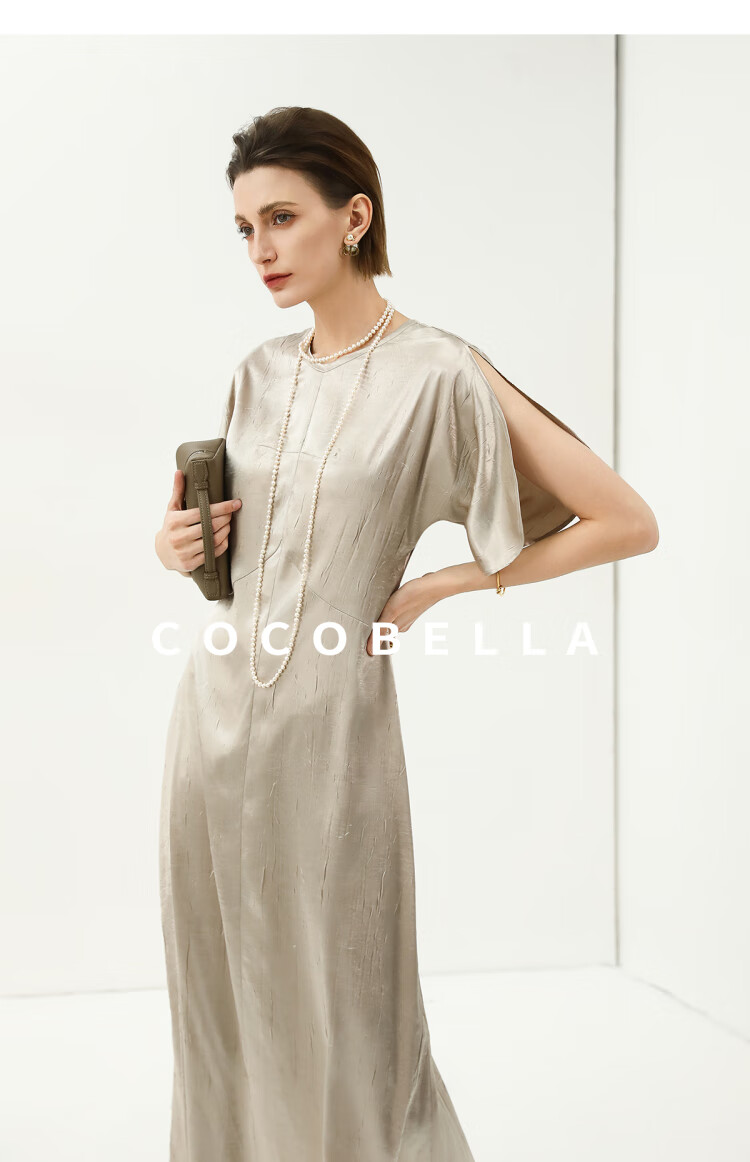 COCOBELLA灵动蝴蝶袖肌理光泽感连衣裙优雅捏褶茶歇裙FR3080