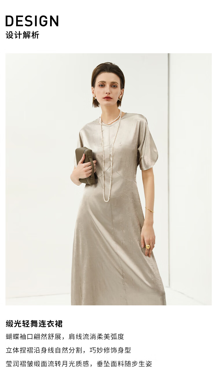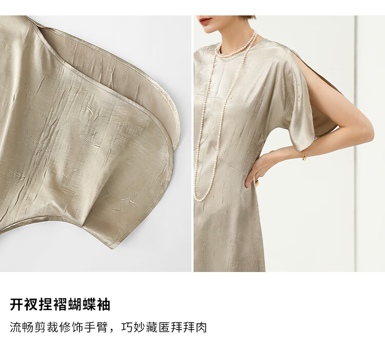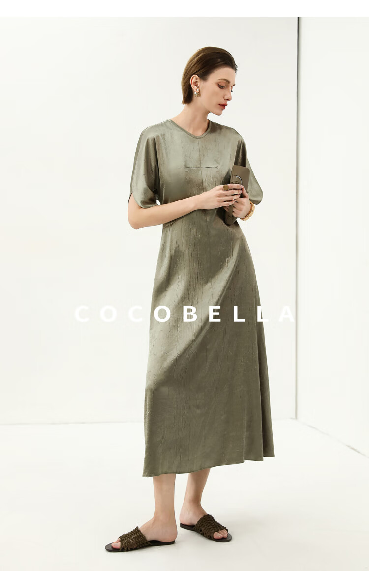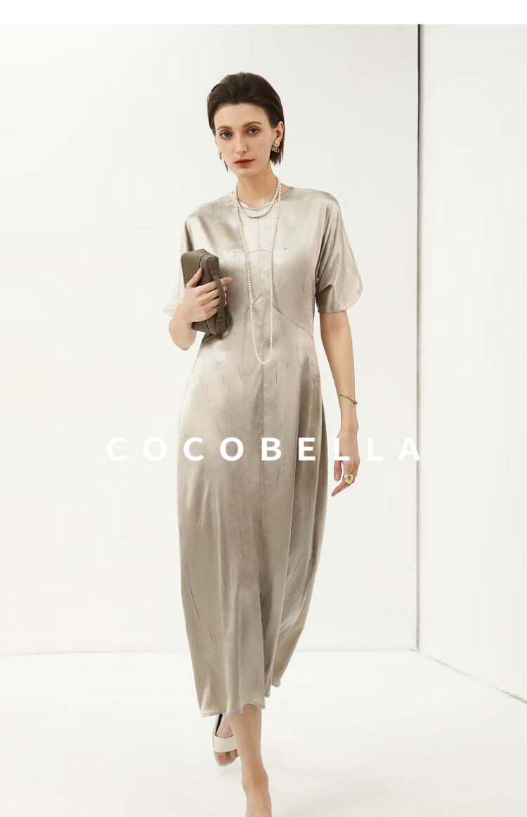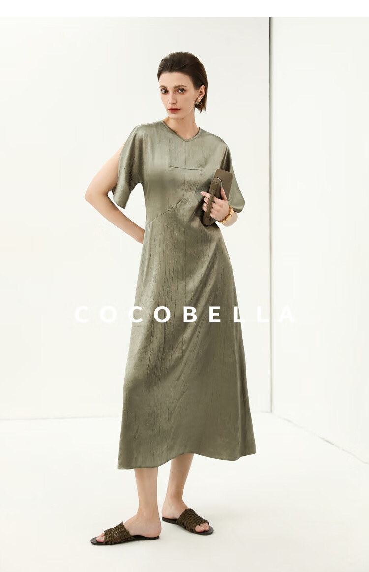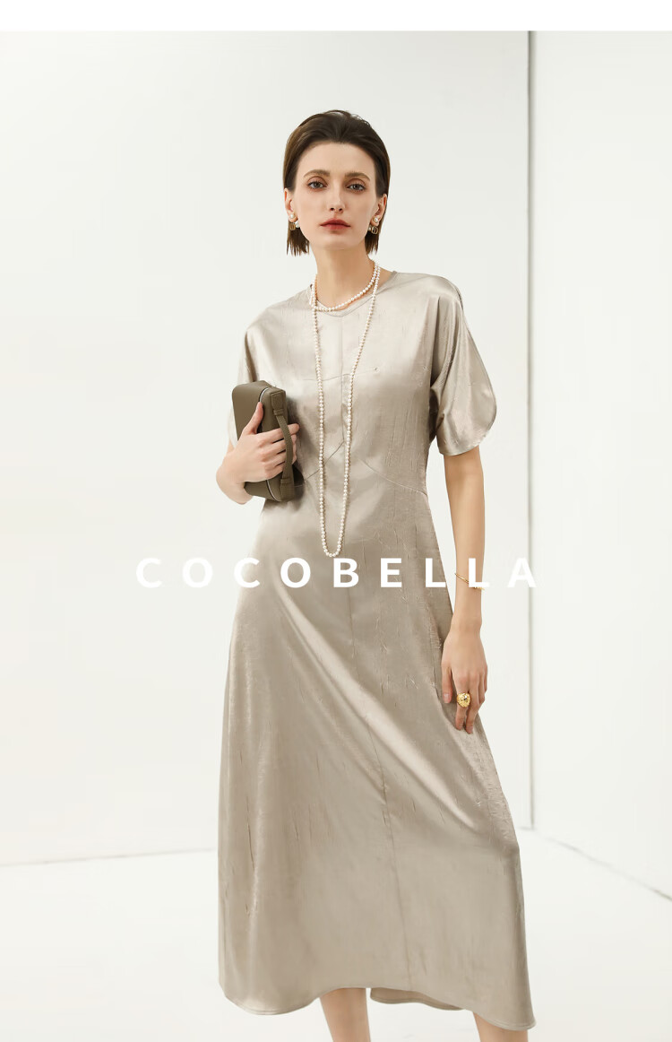 COCOBELLA灵动蝴蝶袖肌理光泽感连衣裙优雅捏褶茶歇裙FR3080