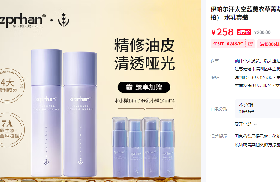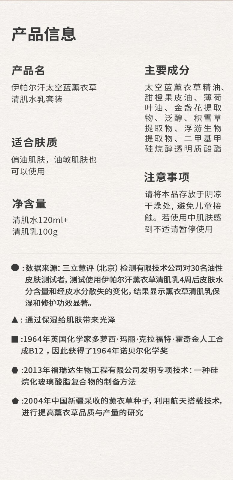 【品名】伊帕尔汗薰衣草菁萃清肌水120ml+乳100g 正装