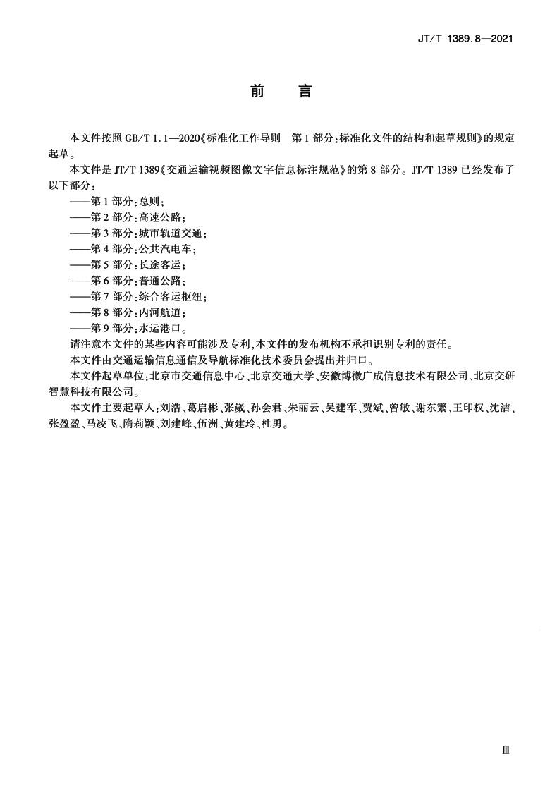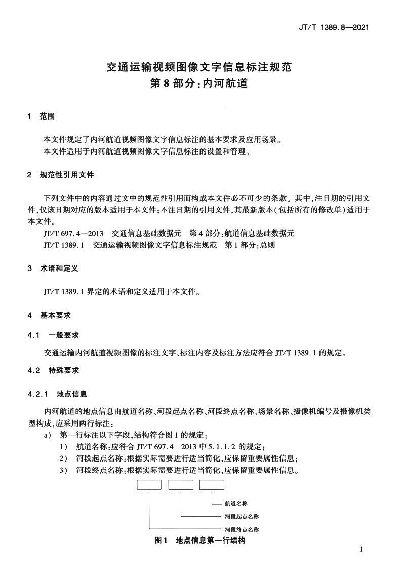 书名:交通运输视频图像文字信息标注规范 第8部分:内河航道(JT/T 1389.8—2021)