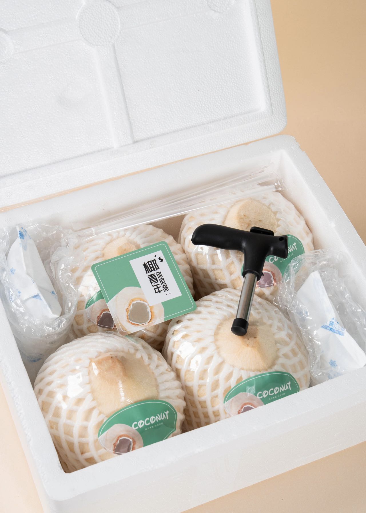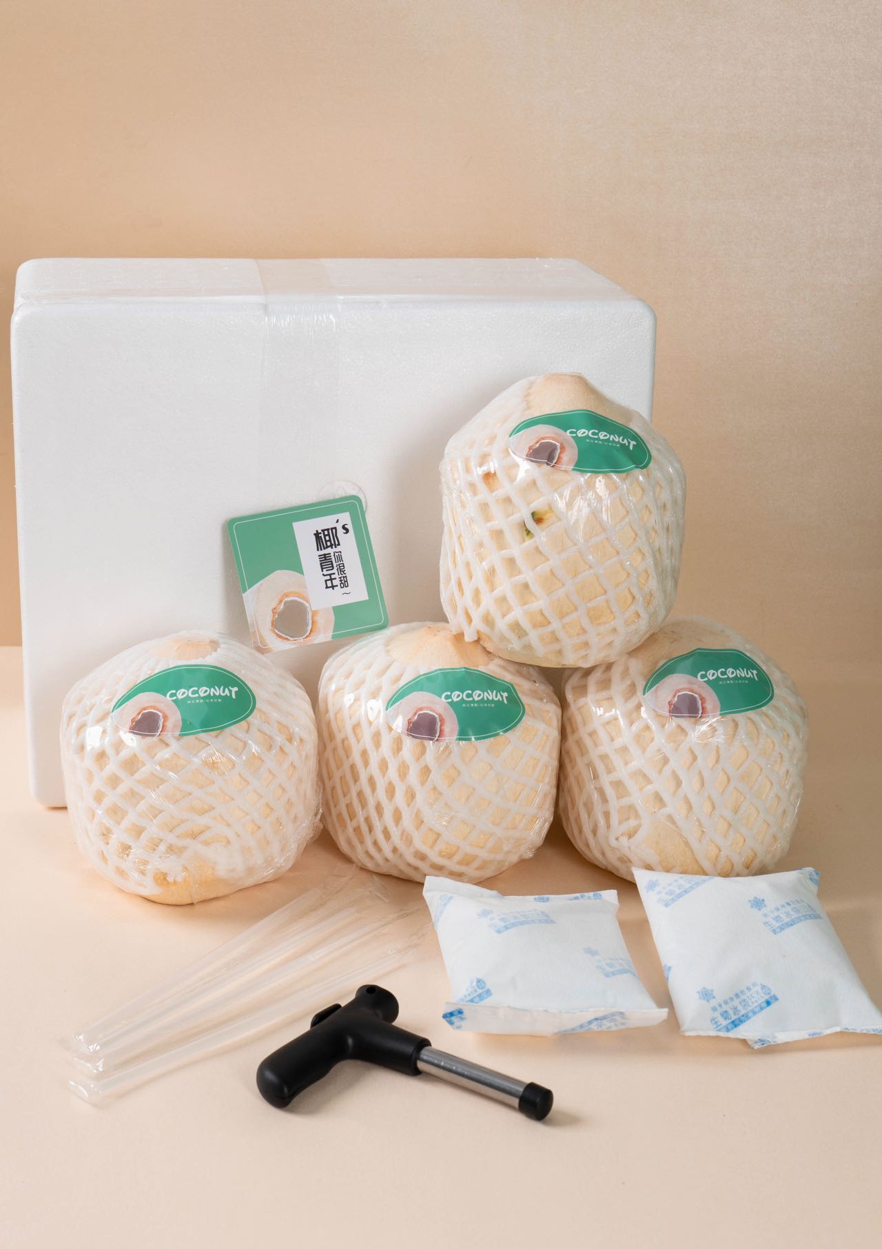 【关于包装】泡沫箱+冰袋+开椰器+吸管
