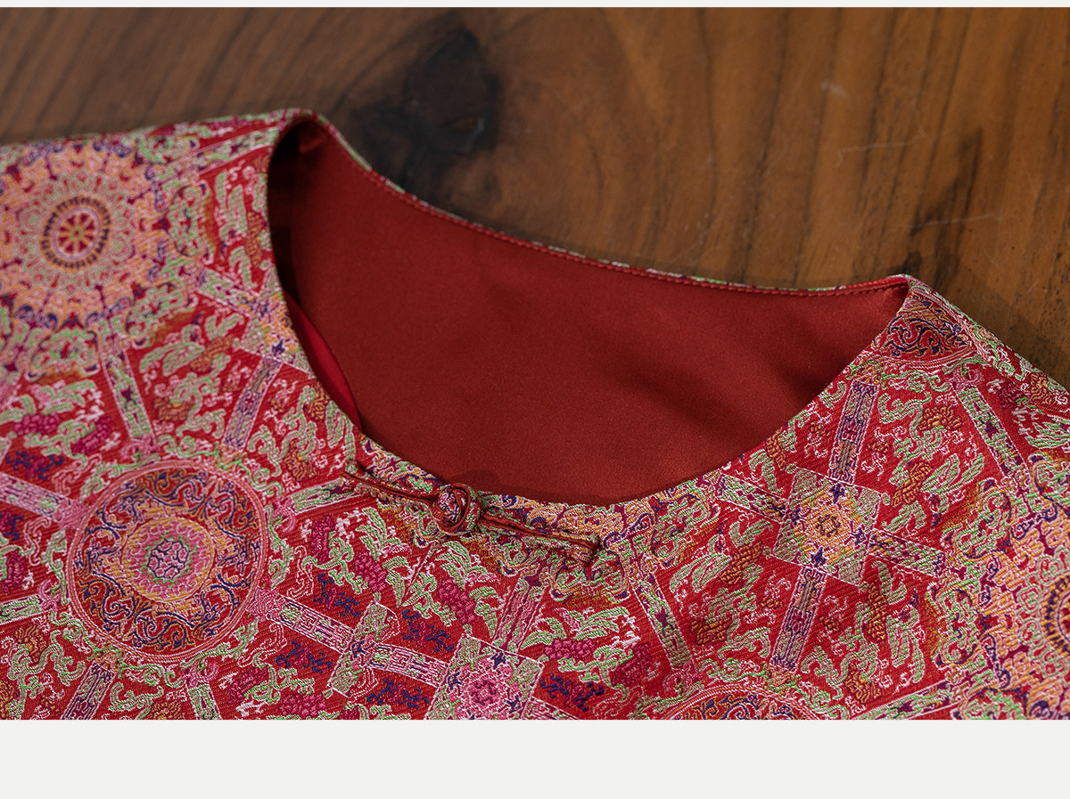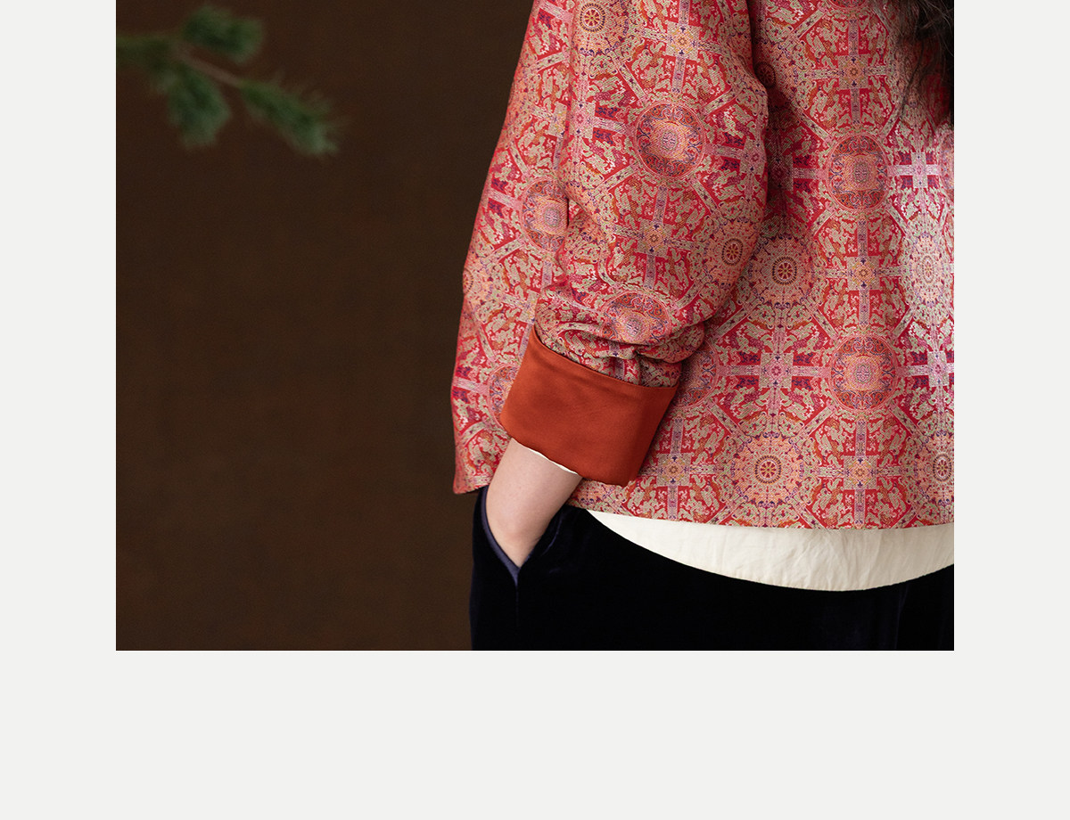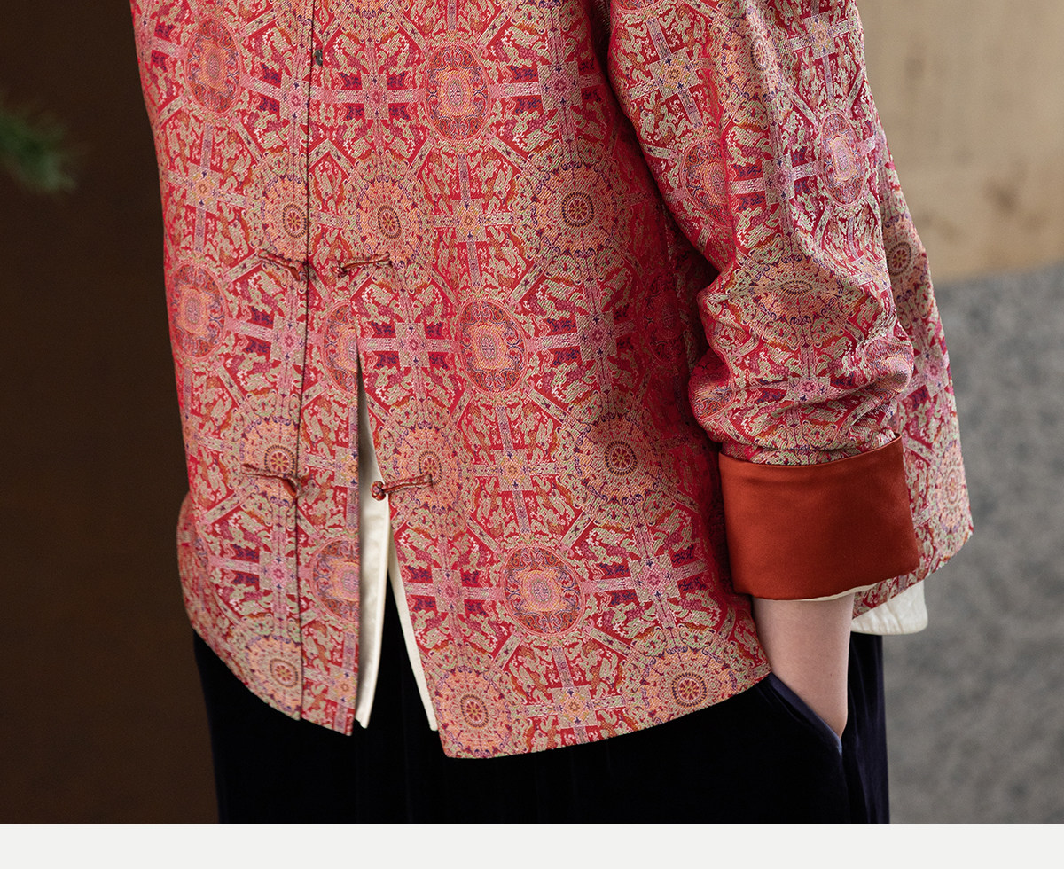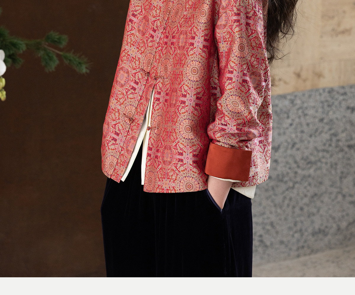 牧衣游原创 48姆米重磅织锦八达晕桑蚕丝外套红色复古东方 墨香